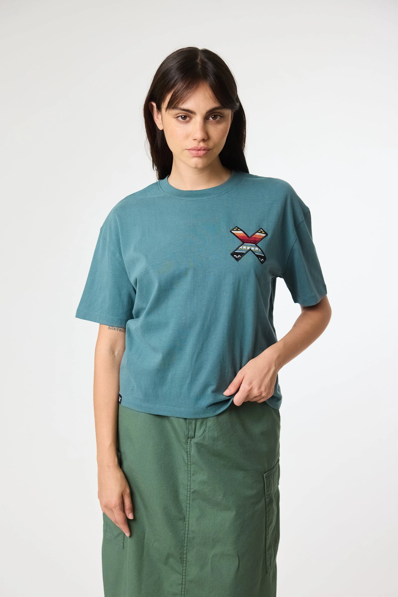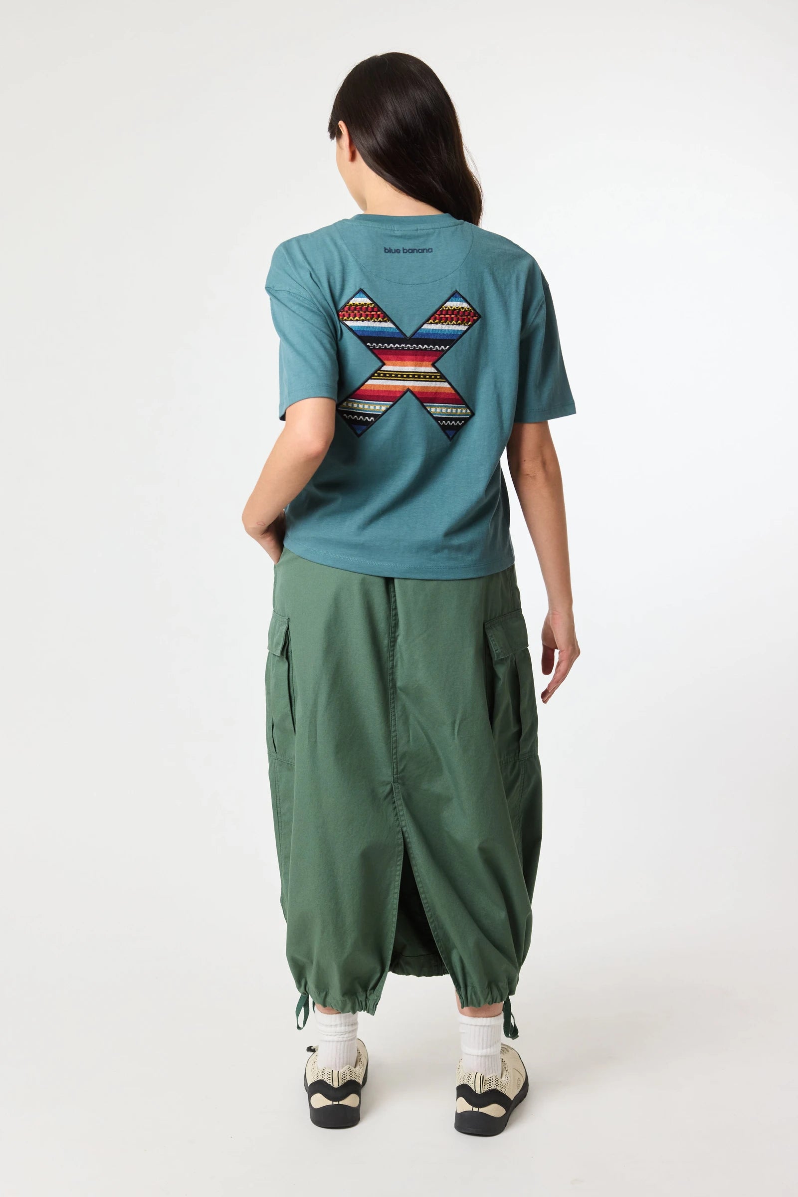 T-shirt with our classic X embroidered: front on the chest and back. Made of 100% organic cotton and crop fit.