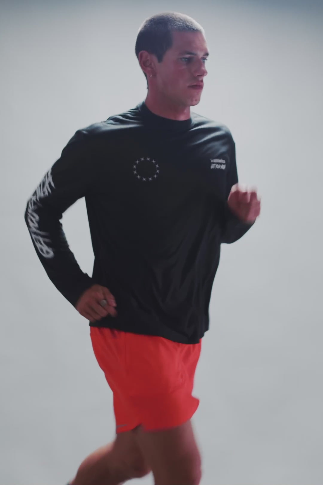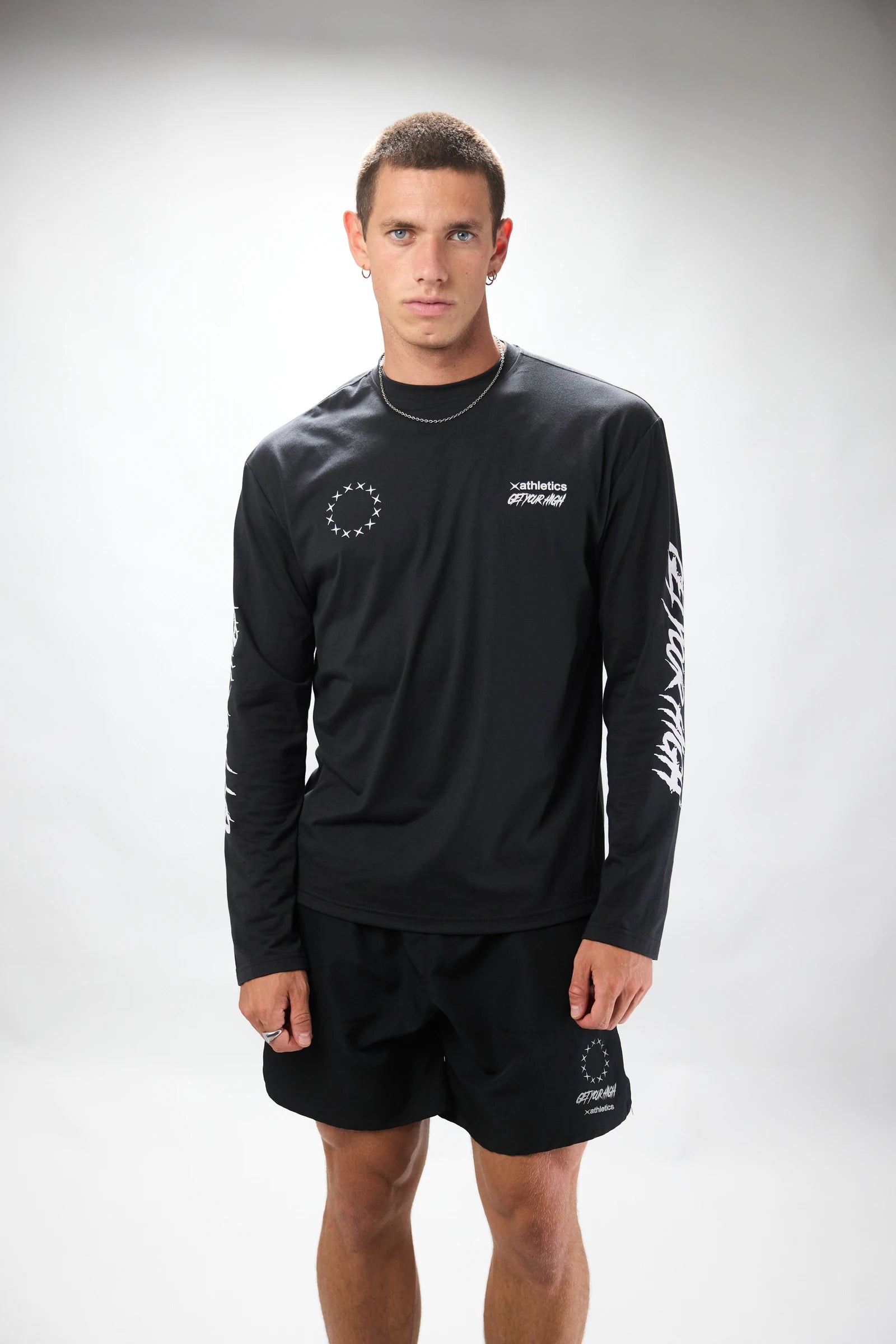Long-sleeve sports T-shirt made of cotton and polyester. Central front and back print.