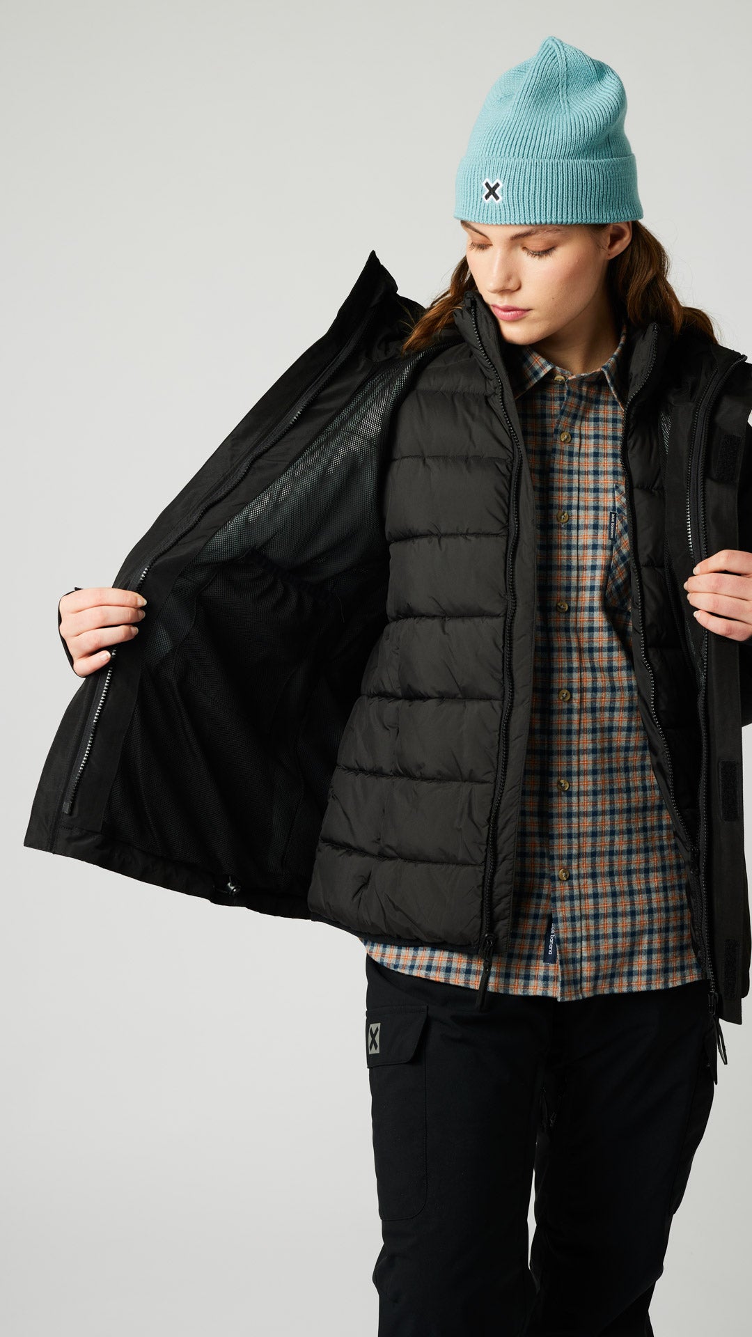 3-in-1 coat. Made from eco-friendly, breathable, and ultra-light materials. Featuring pockets, a hood, and sleeves with thumb holes. And that's not all—it has a detachable inner lining. Because we know you love winter adventures where layers are your best ally.