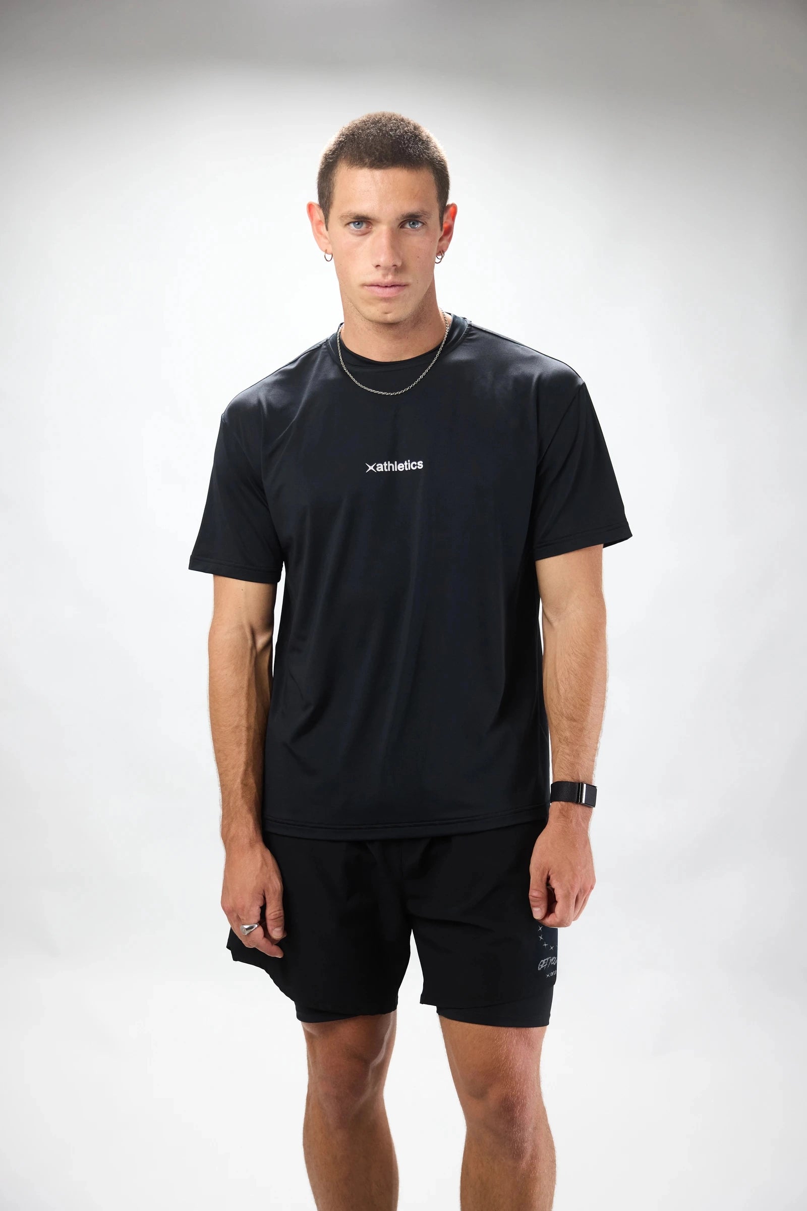 Sports T-shirt made from recycled polyester, quick-dry, UV50, and water-repellent. Reflective logo on the front center and back center.