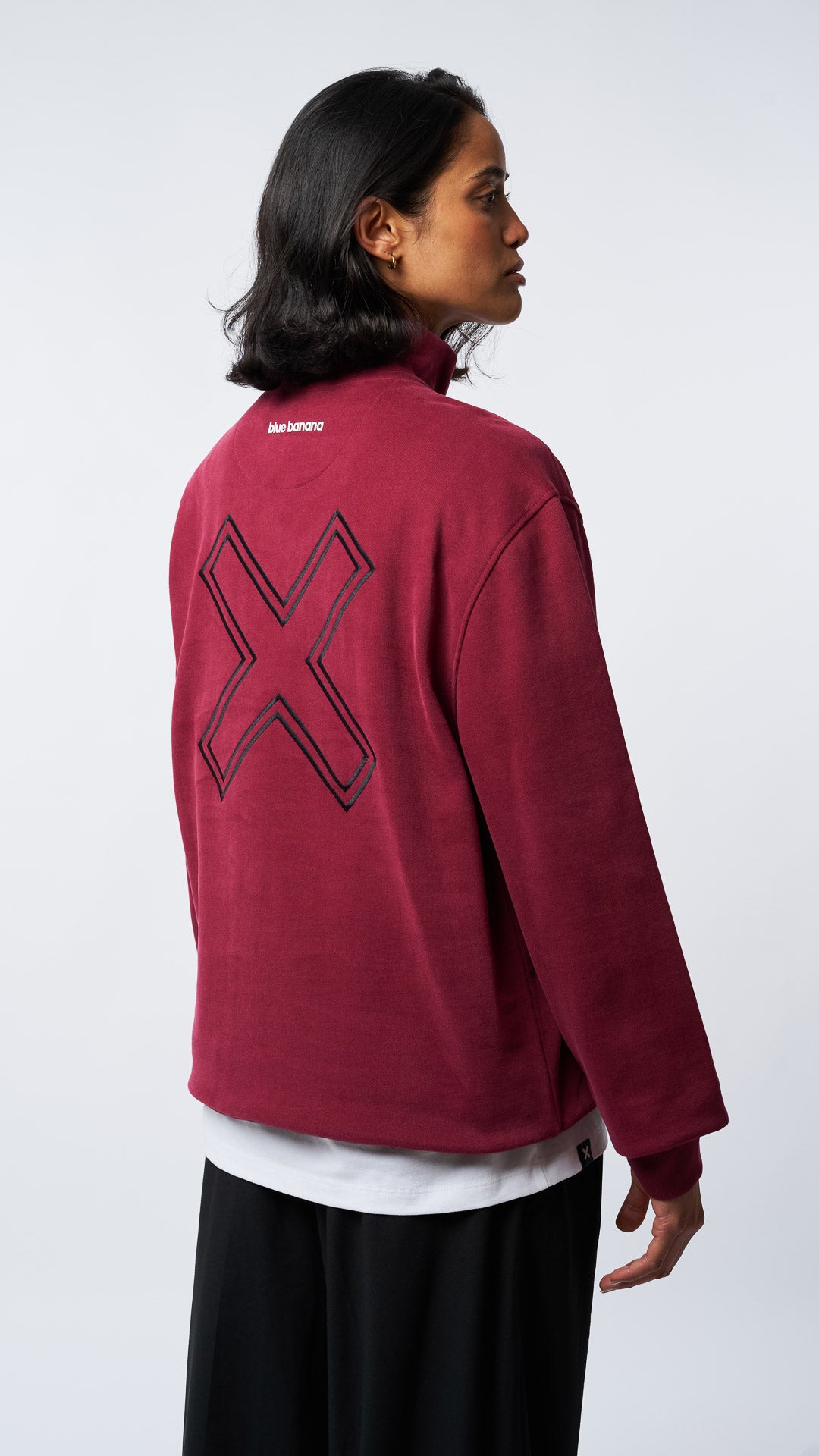 Sweatshirt with front and back print. Zipper on the neck part. Made with 100% organic cotton and regular fit cut.