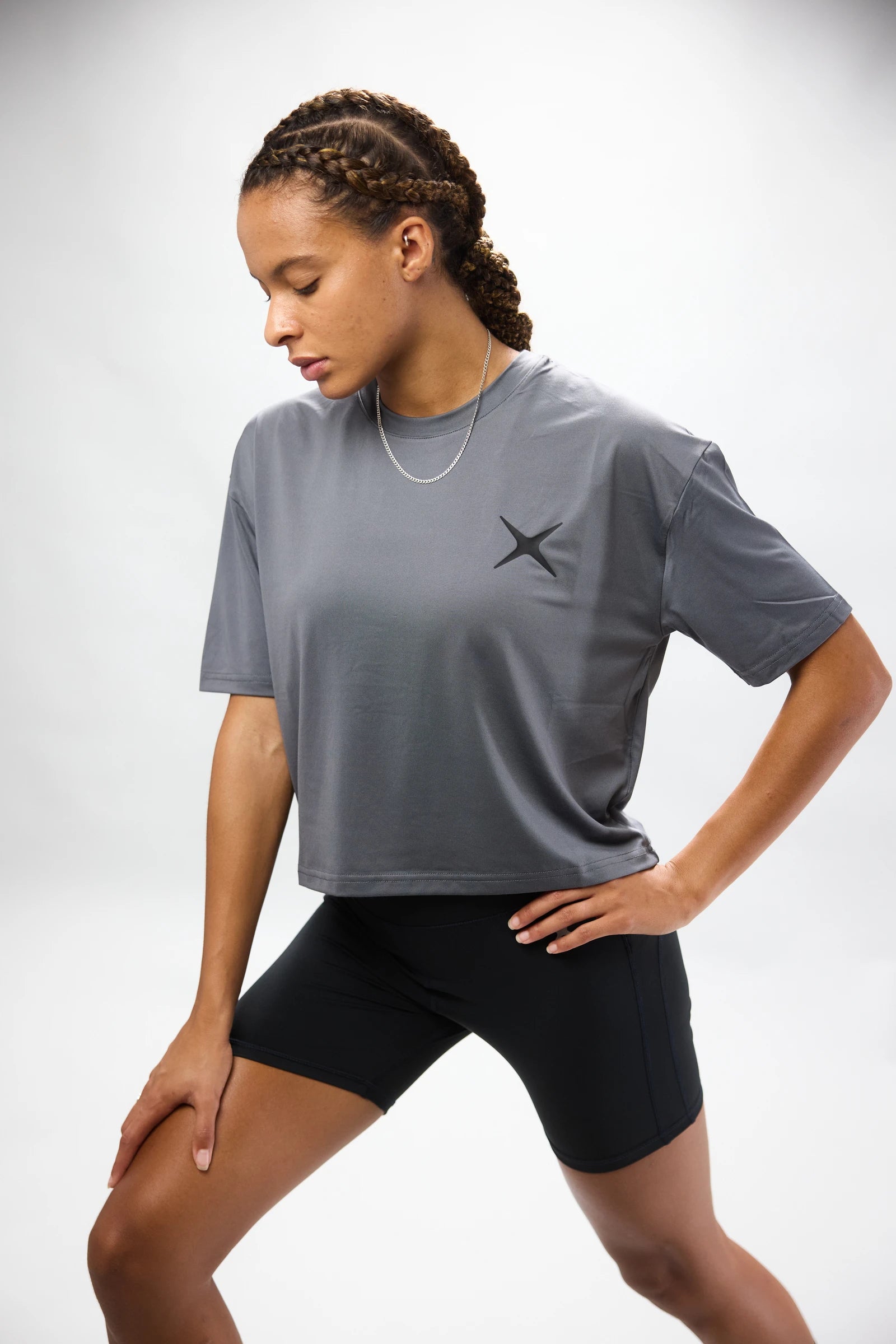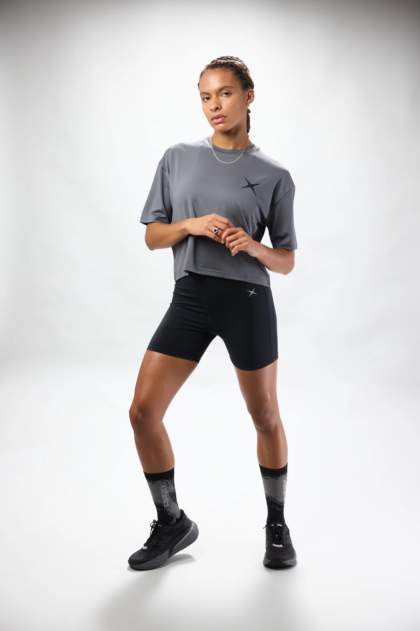 Sports T-shirt made from recycled polyester, quick-dry, UV50, and water-repellent. Reflective logo on the front center and back center.