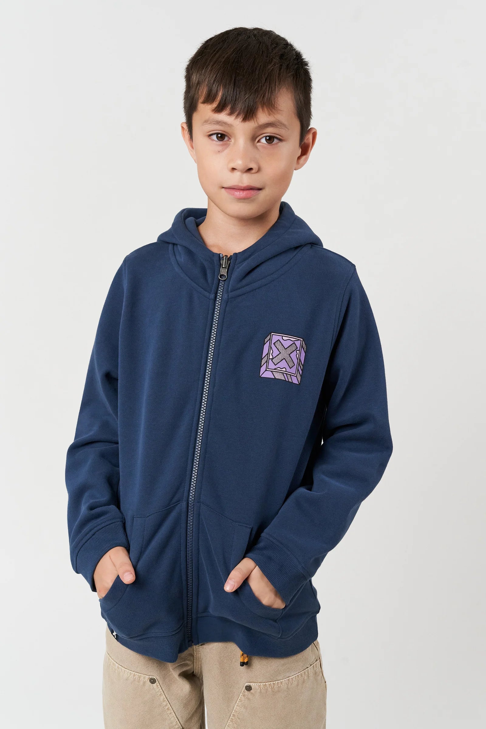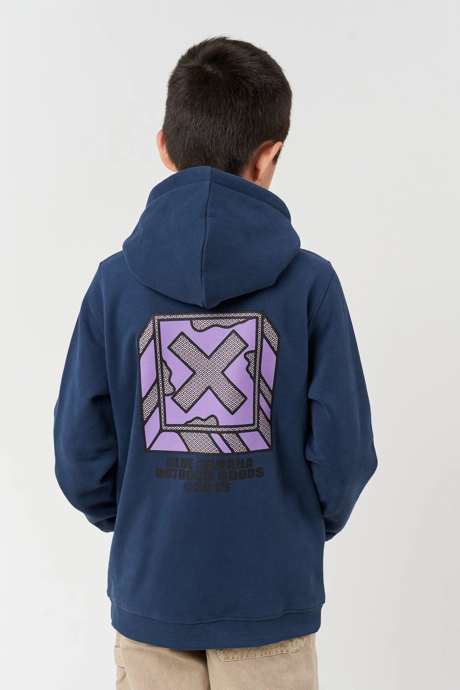 Hoodie with central zipper and centered back print. Made of 100% organic cotton and regular fit.