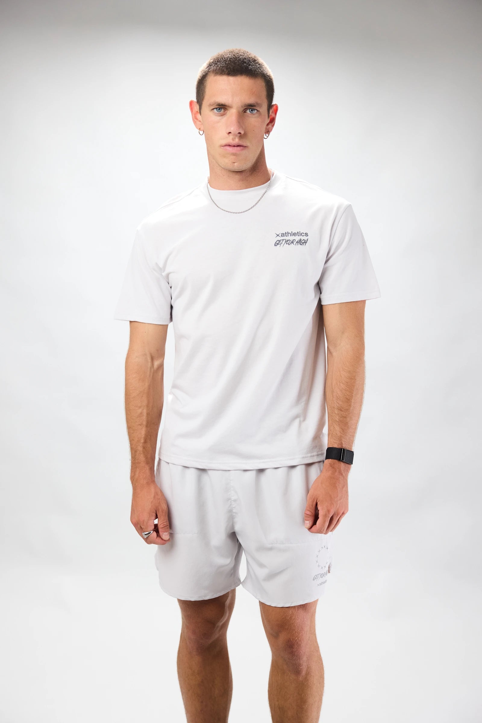 Sports T-shirt made of cotton and polyester. Central front and back print.