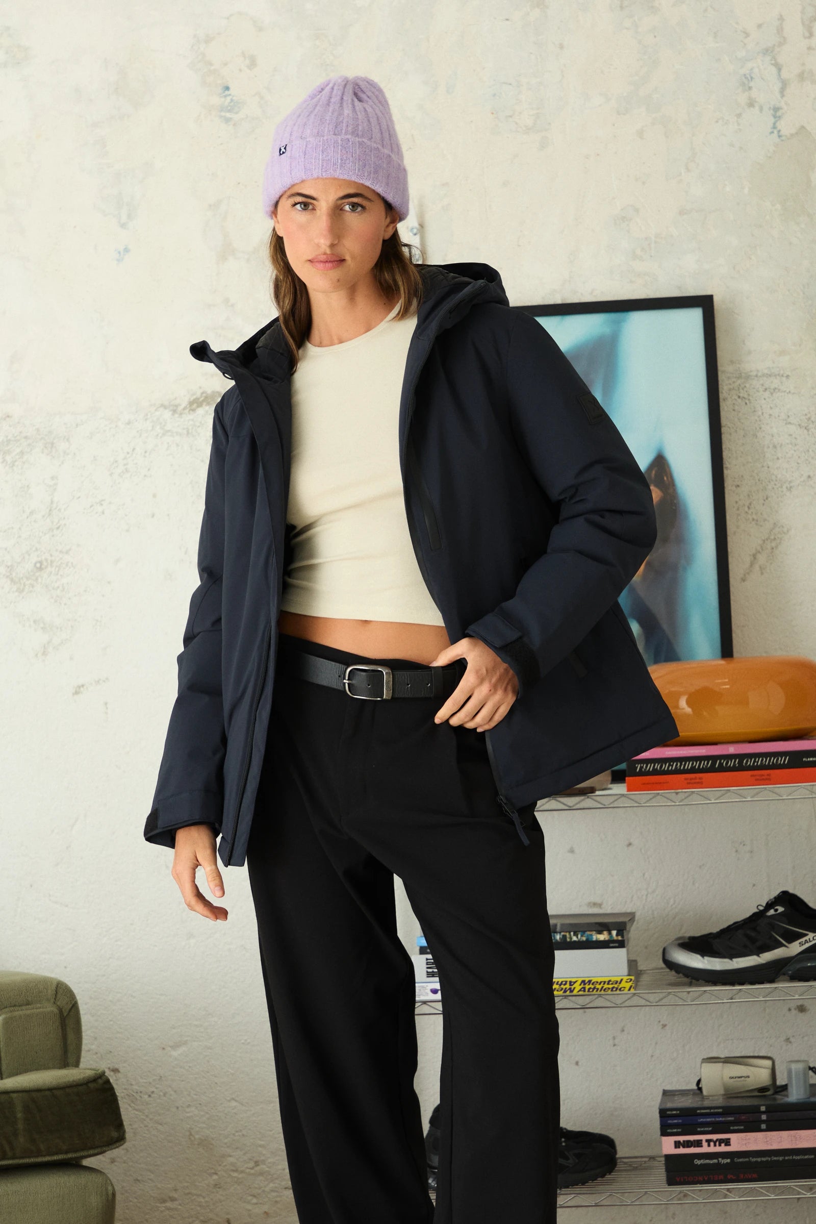 Coat made of water-resistant nylon with a padded interior for greater thermal comfort.
