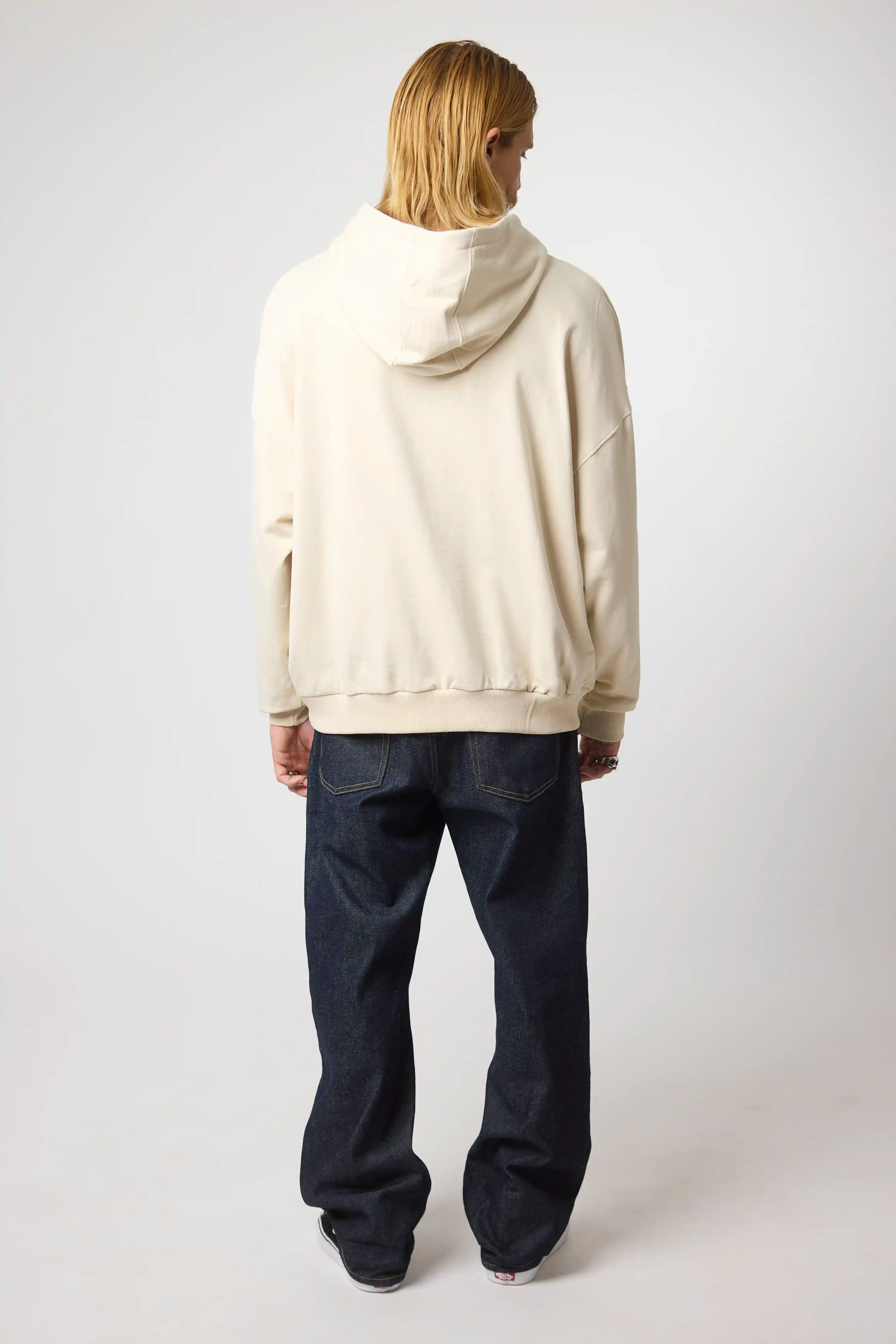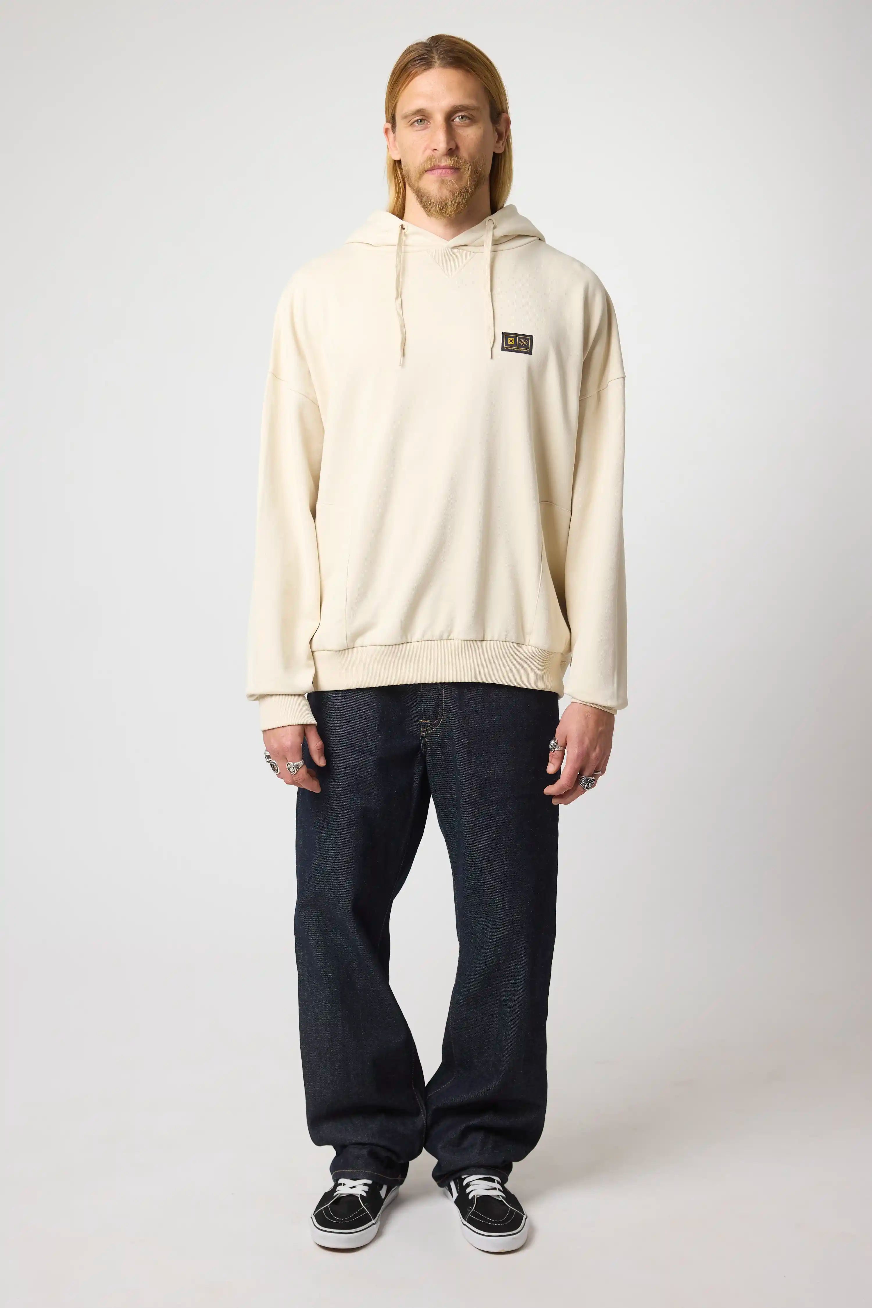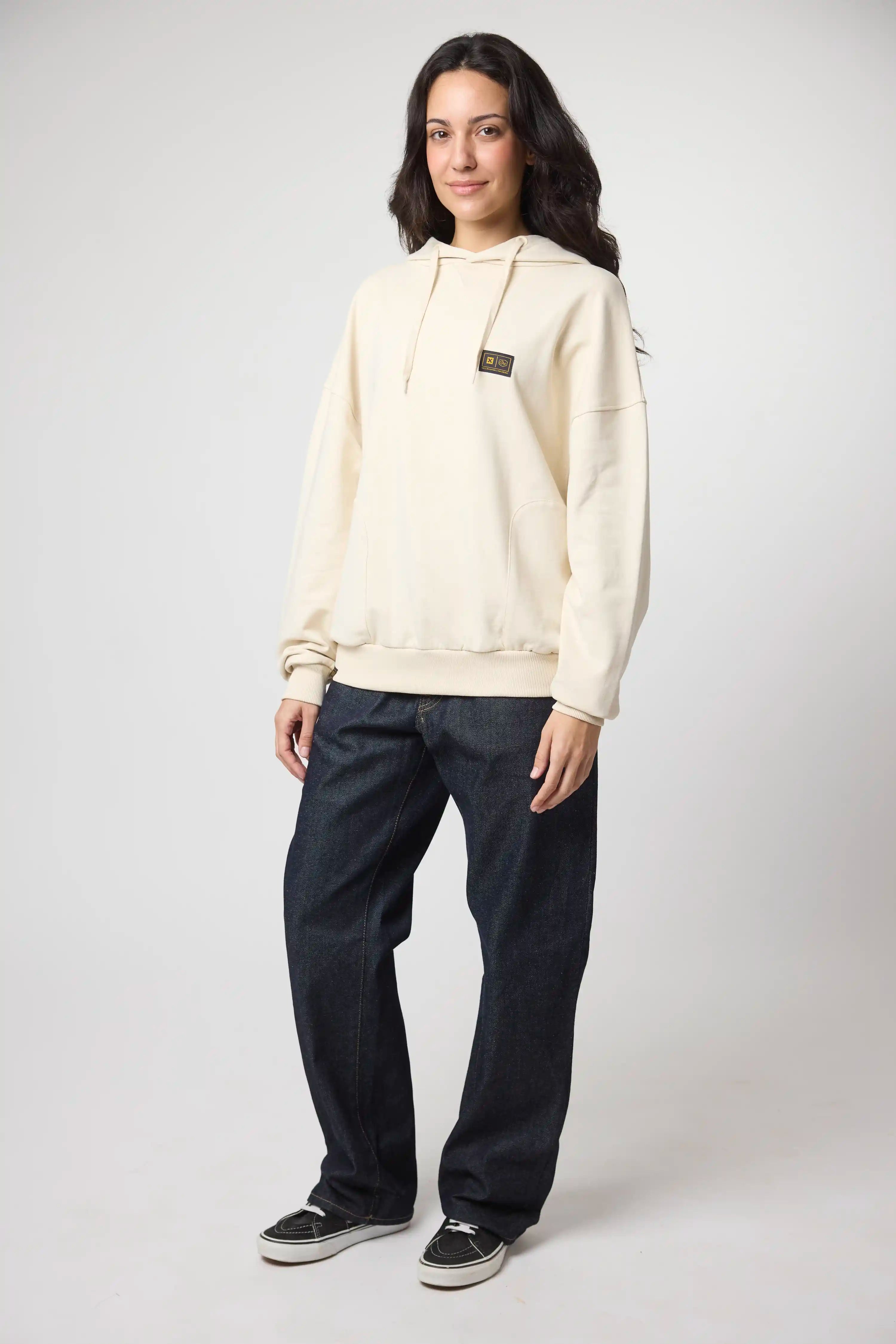 Hoodie with a decorative embroidered label on the upper left. Made from 100% organic cotton with side pockets. Boxy fit.