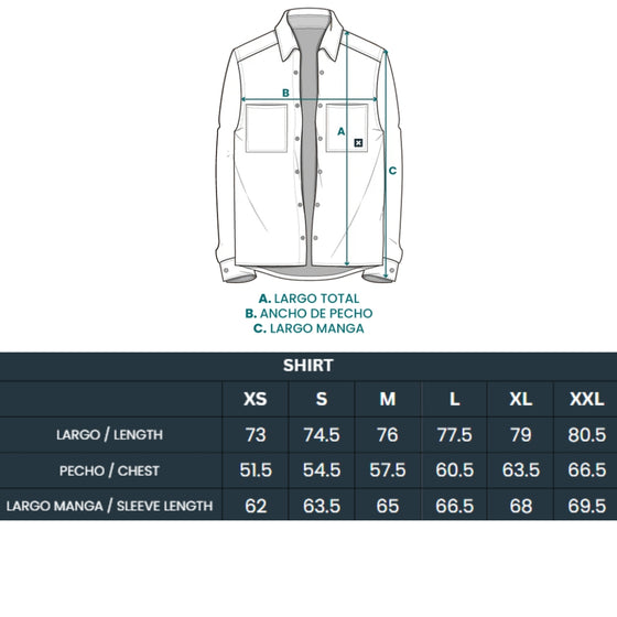 Long sleeve shirt, 100% cotton. With patch pockets on the chest. Personalized buttons.