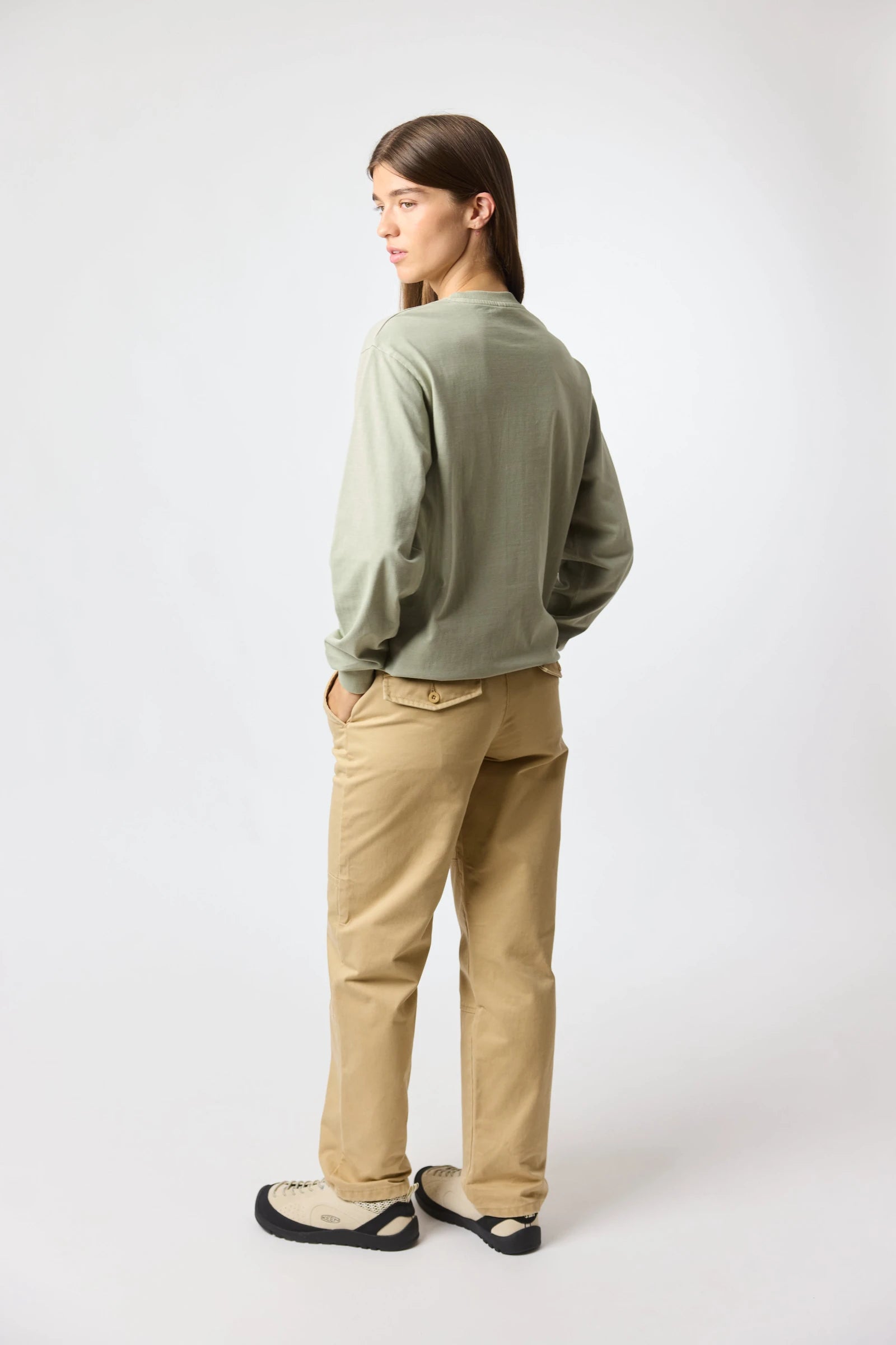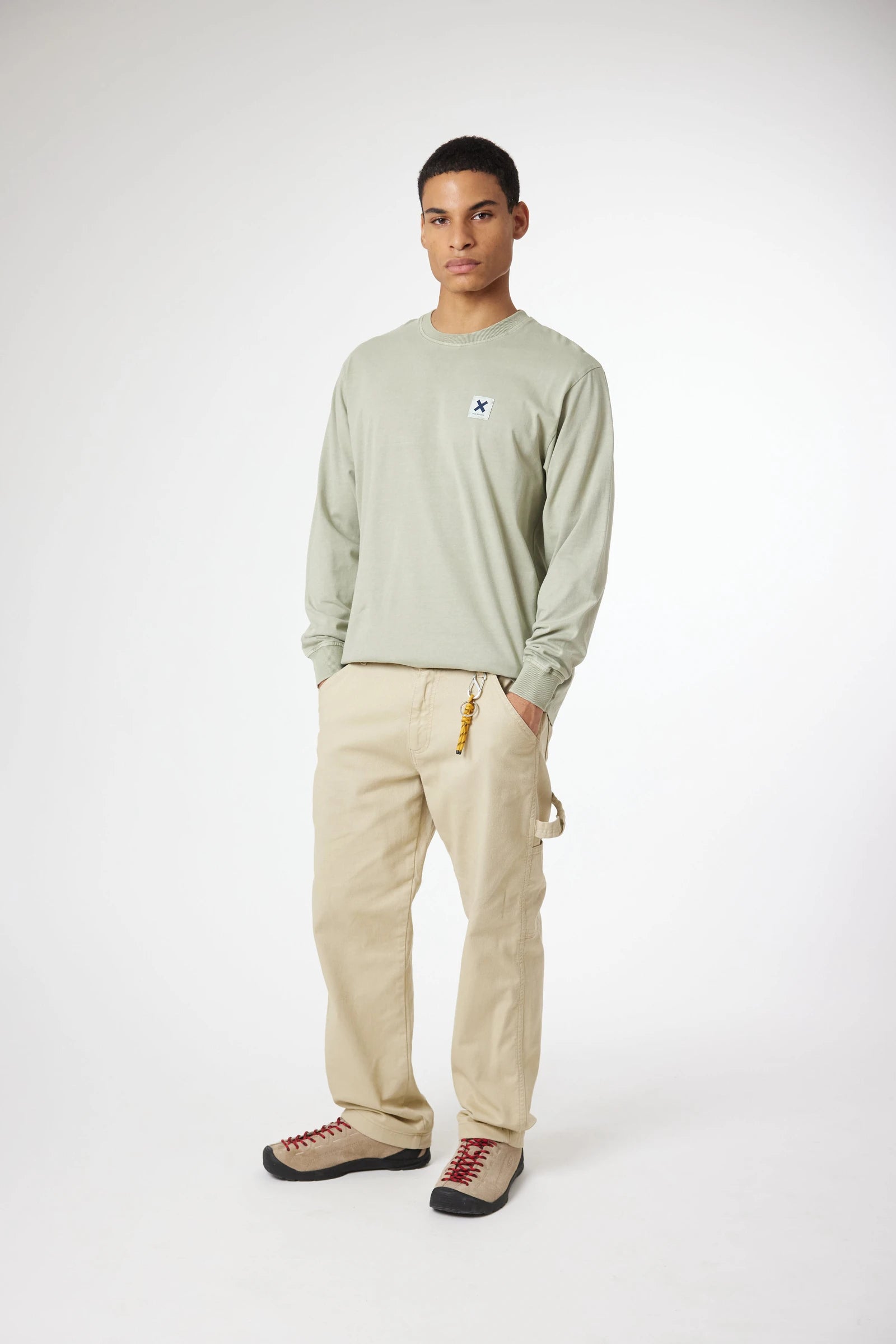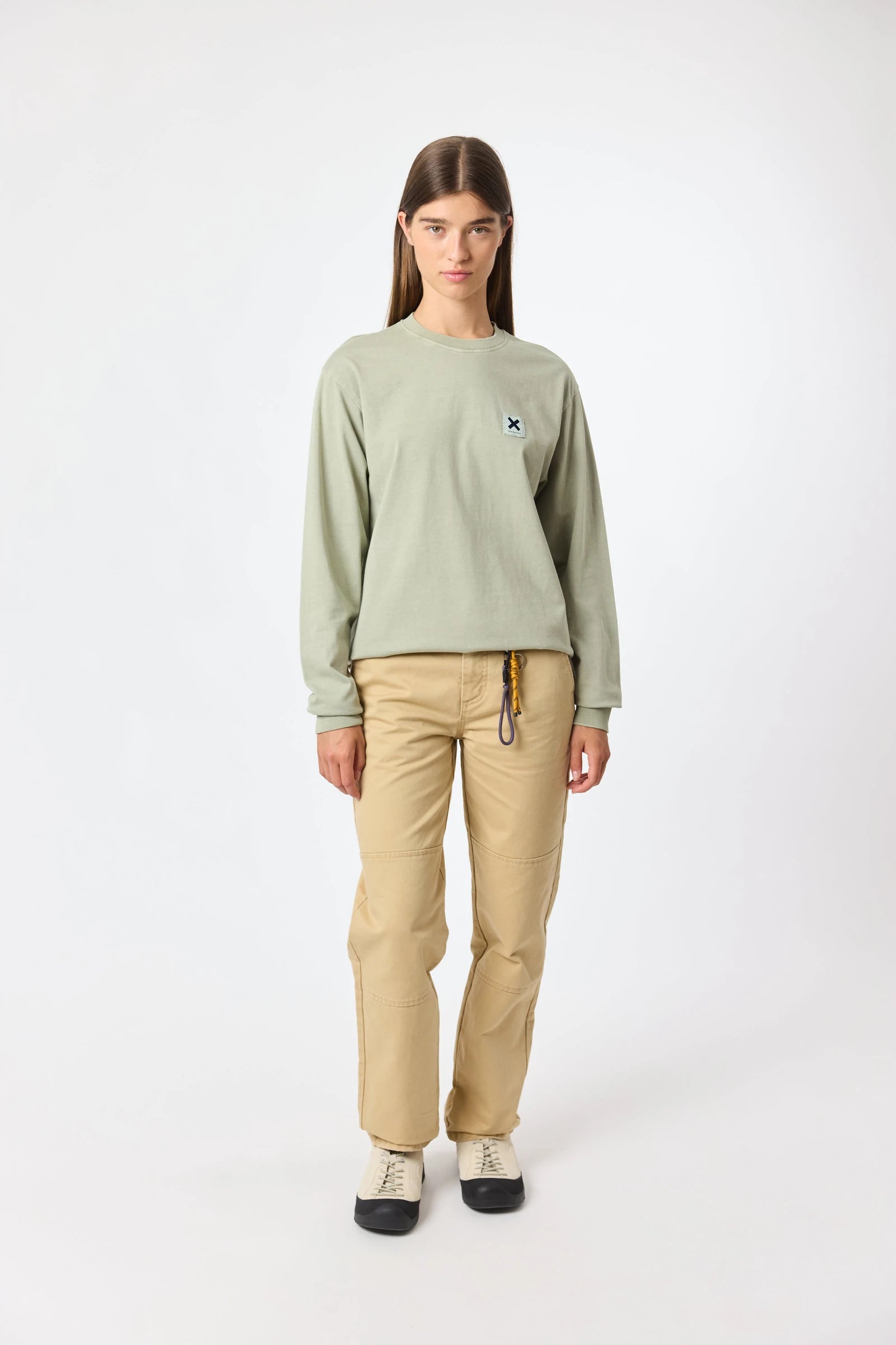 Long sleeve washed-effect t-shirt with a woven label logo on the chest.