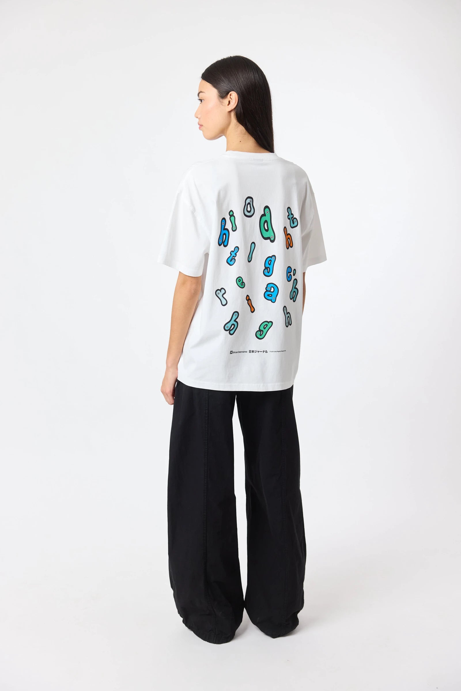 T-shirt with front print on the upper left side and centered back print. Made of 100% organic cotton and oversized fit.