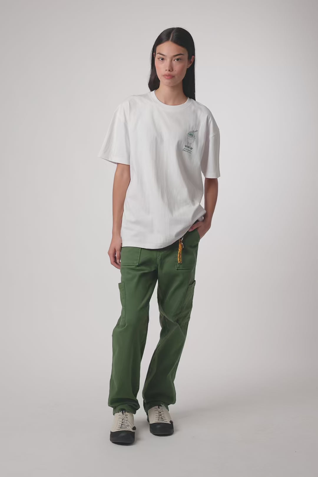 T-shirt with front print on the upper left side and centered back print. Made of 100% organic cotton and oversized fit.