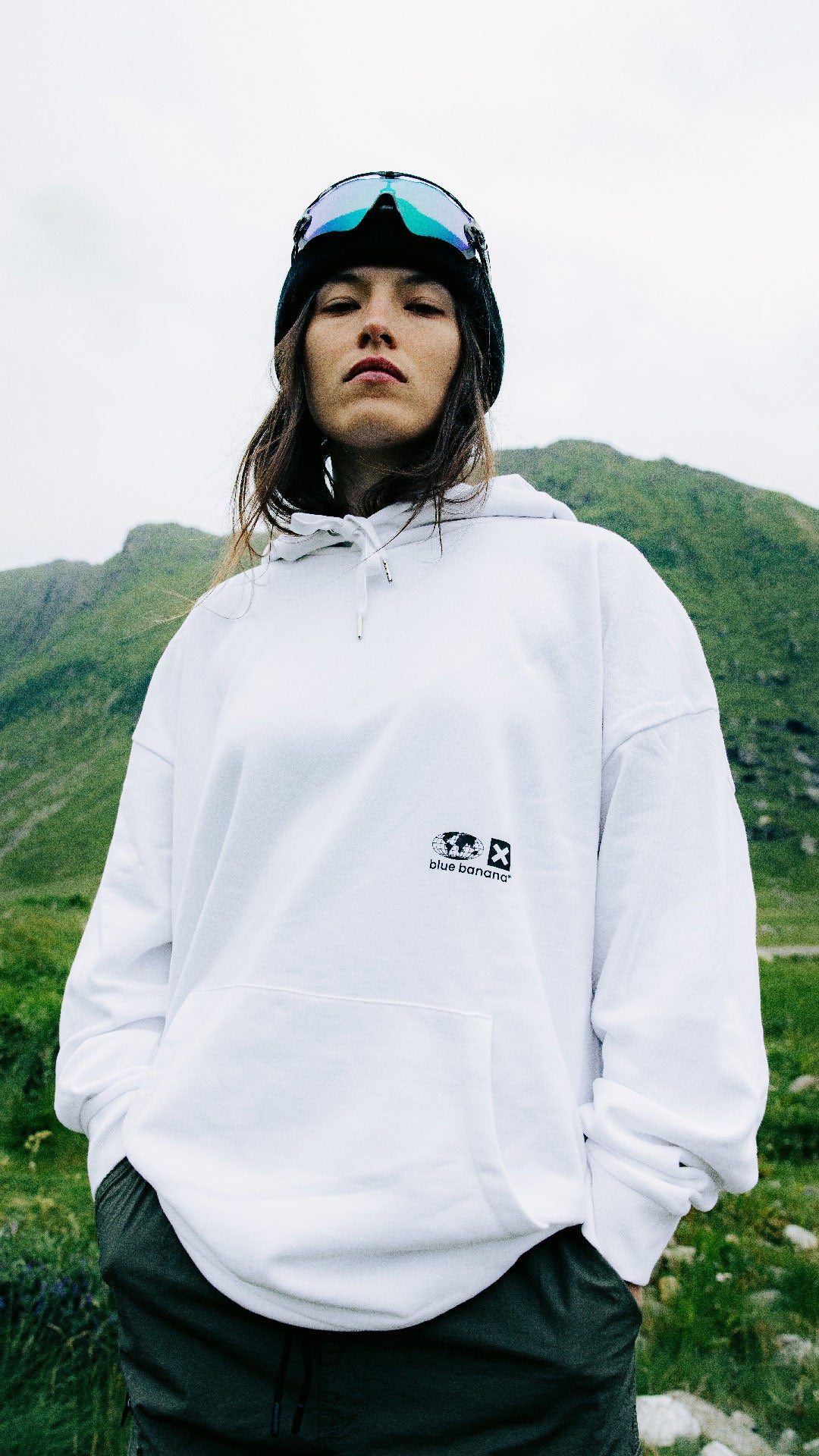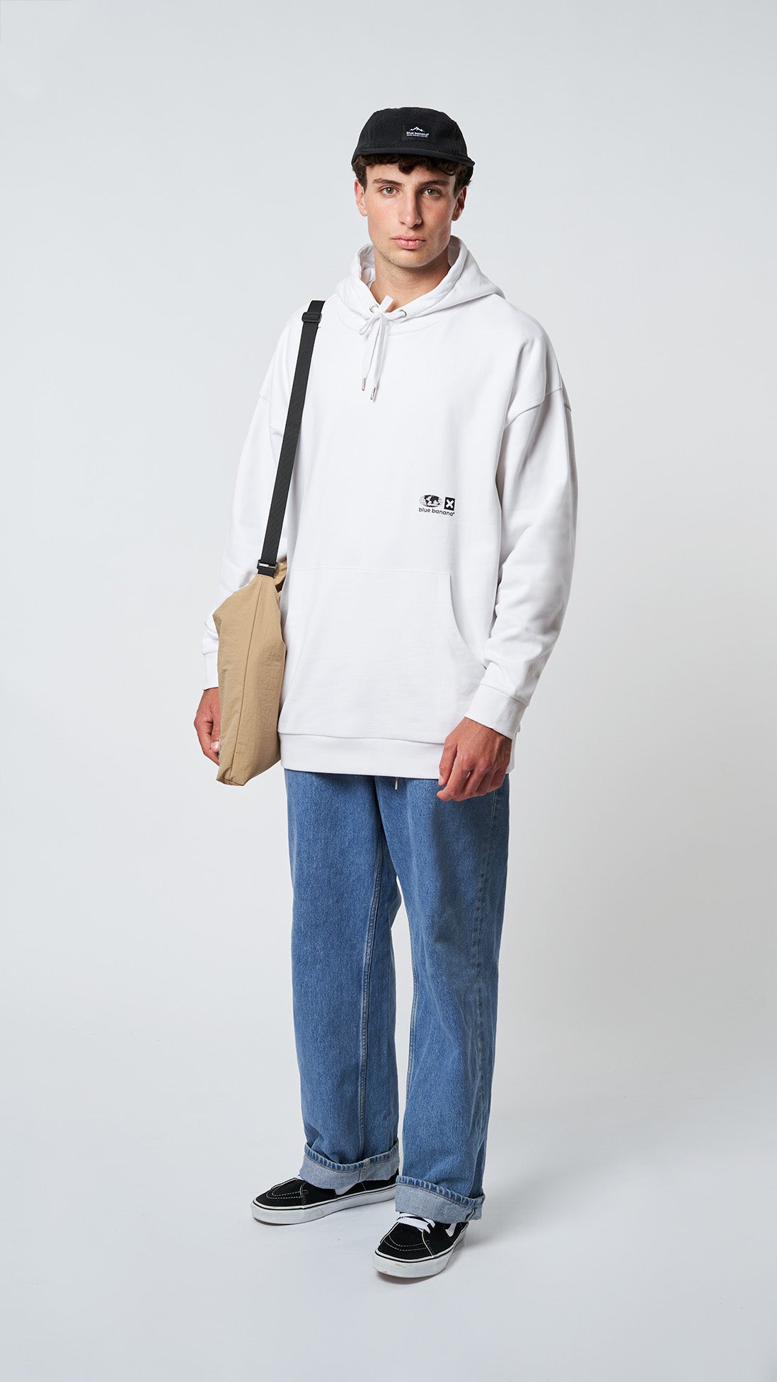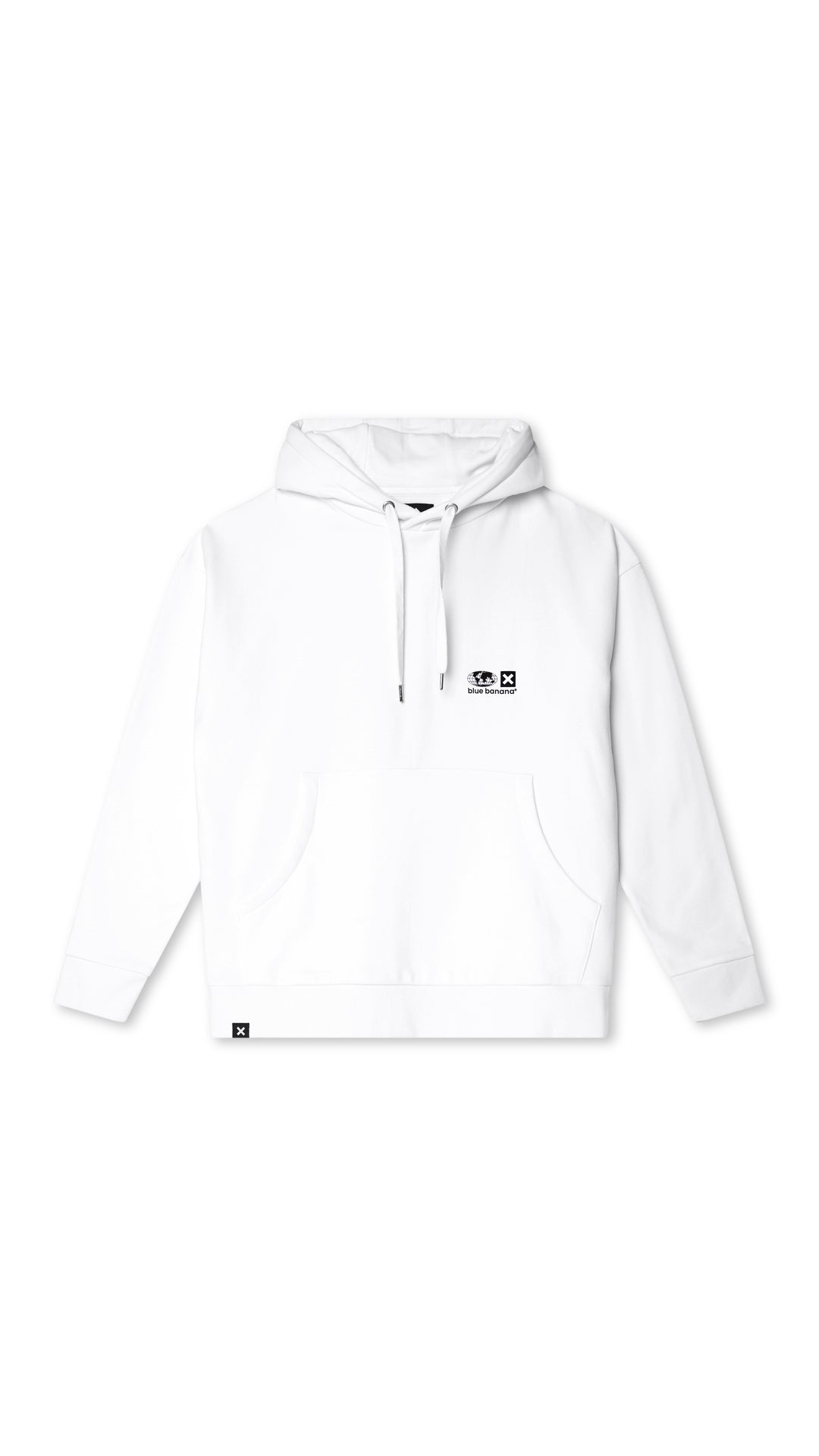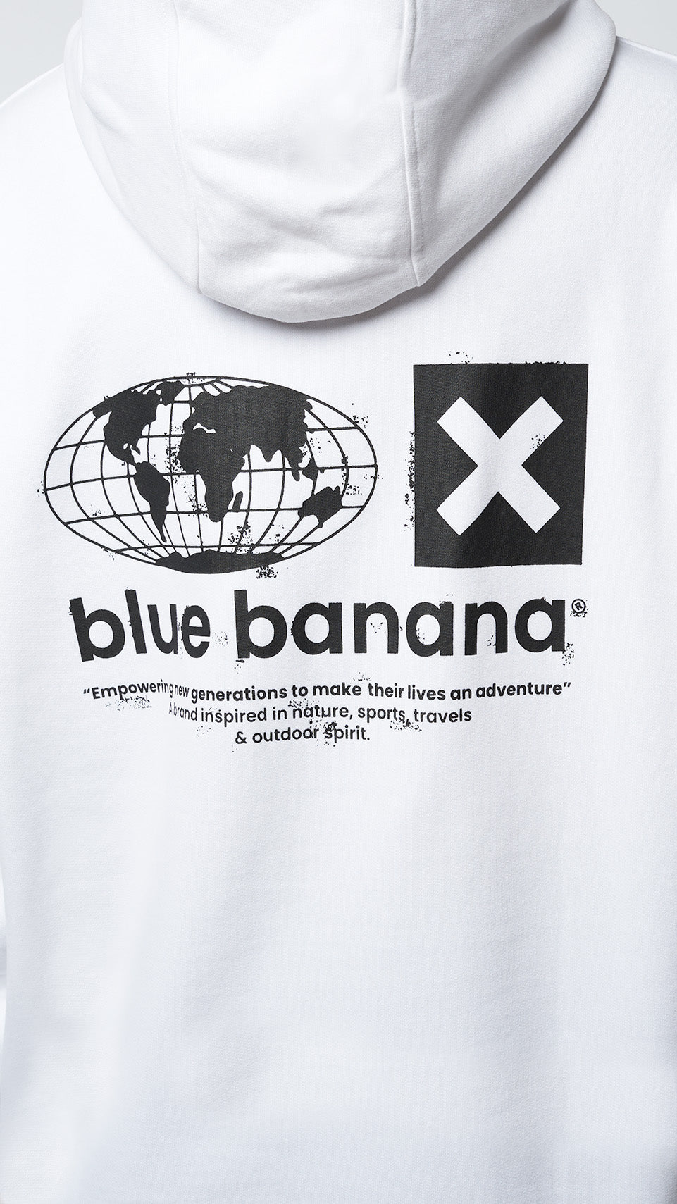 Hoodie with front print on the upper left side and central back print. Front central lower pocket with opening on both sides. Made of 100% organic cotton and oversized cut.