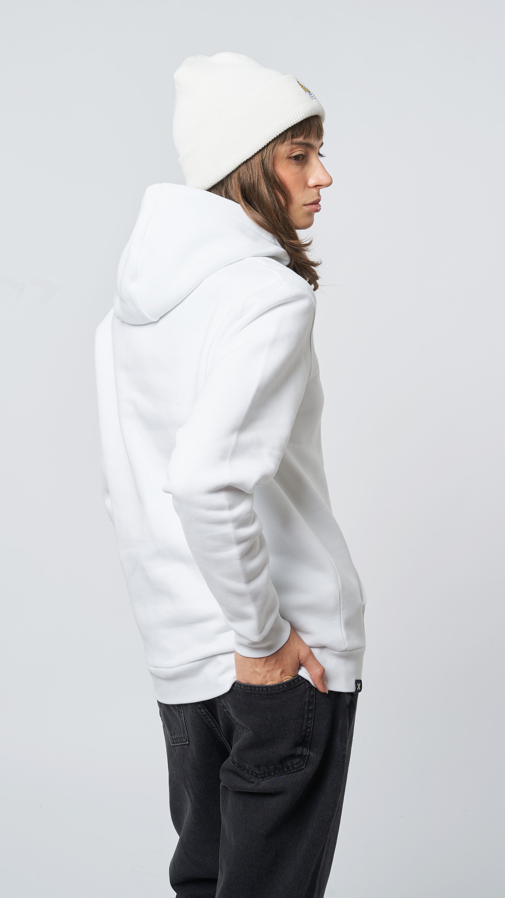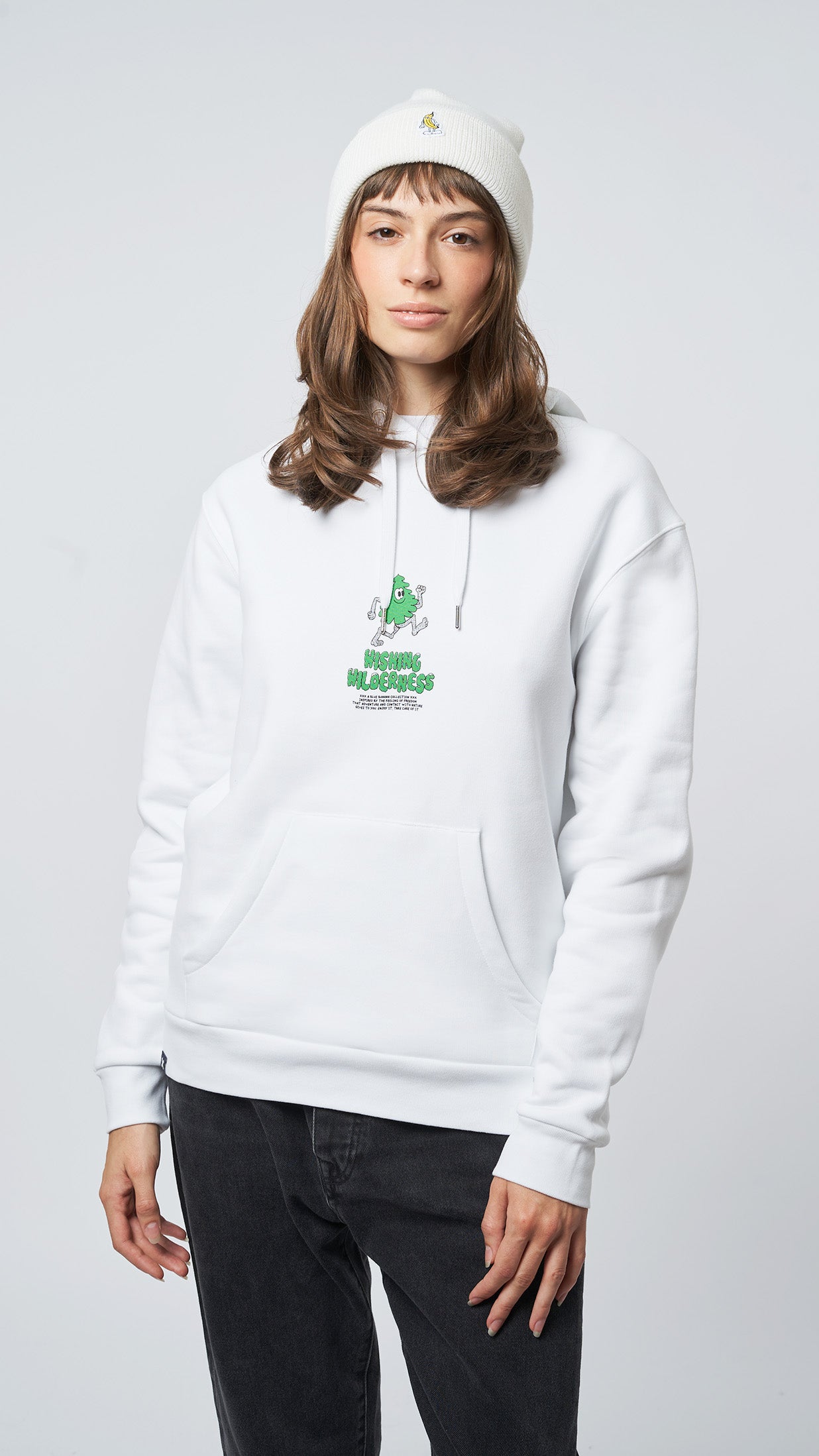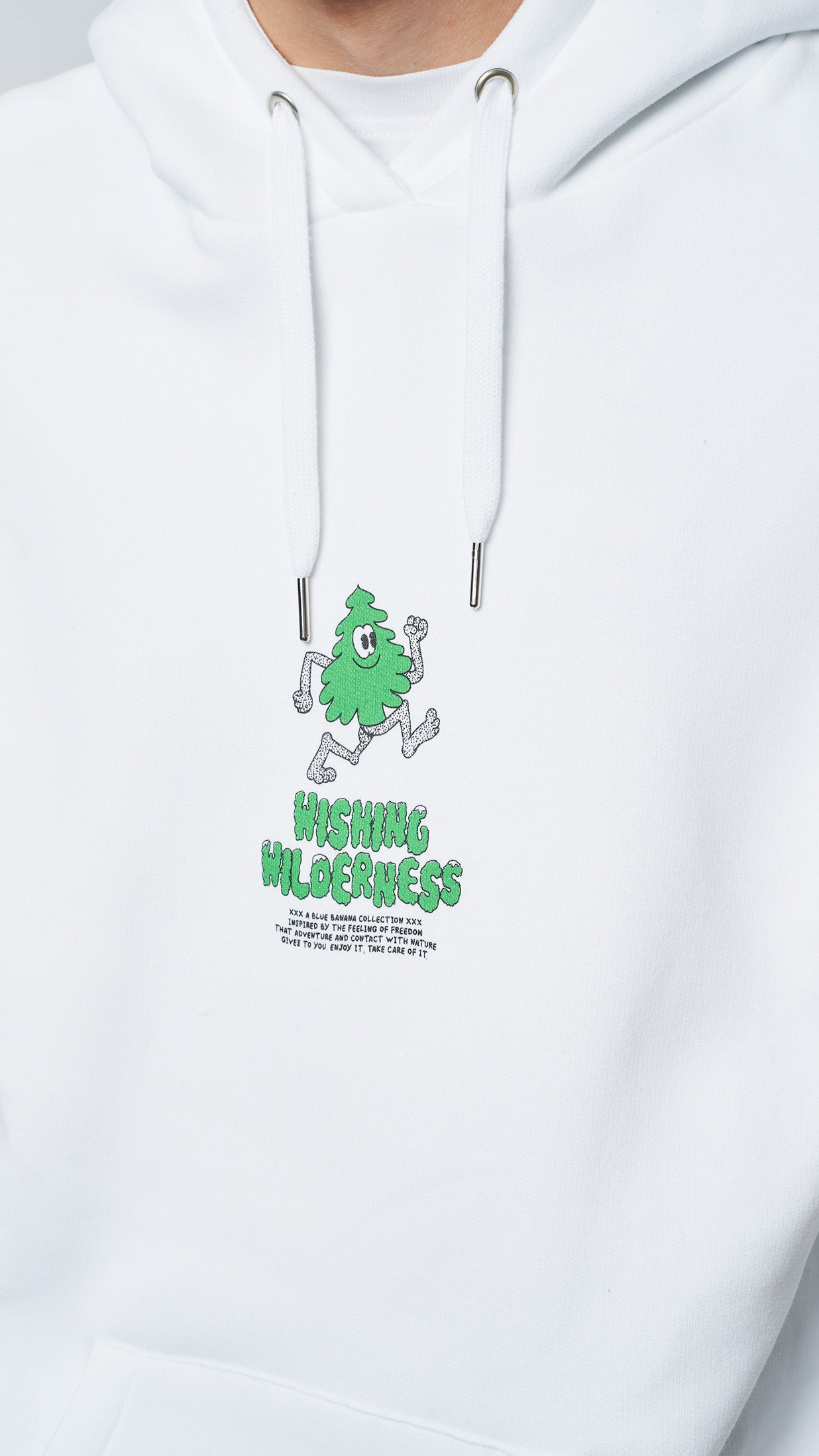 Hoodie with front print in the upper central part and logo on the right sleeve. Front central lower pocket with opening on both sides. Made with 100% organic cotton and regular fit cut.