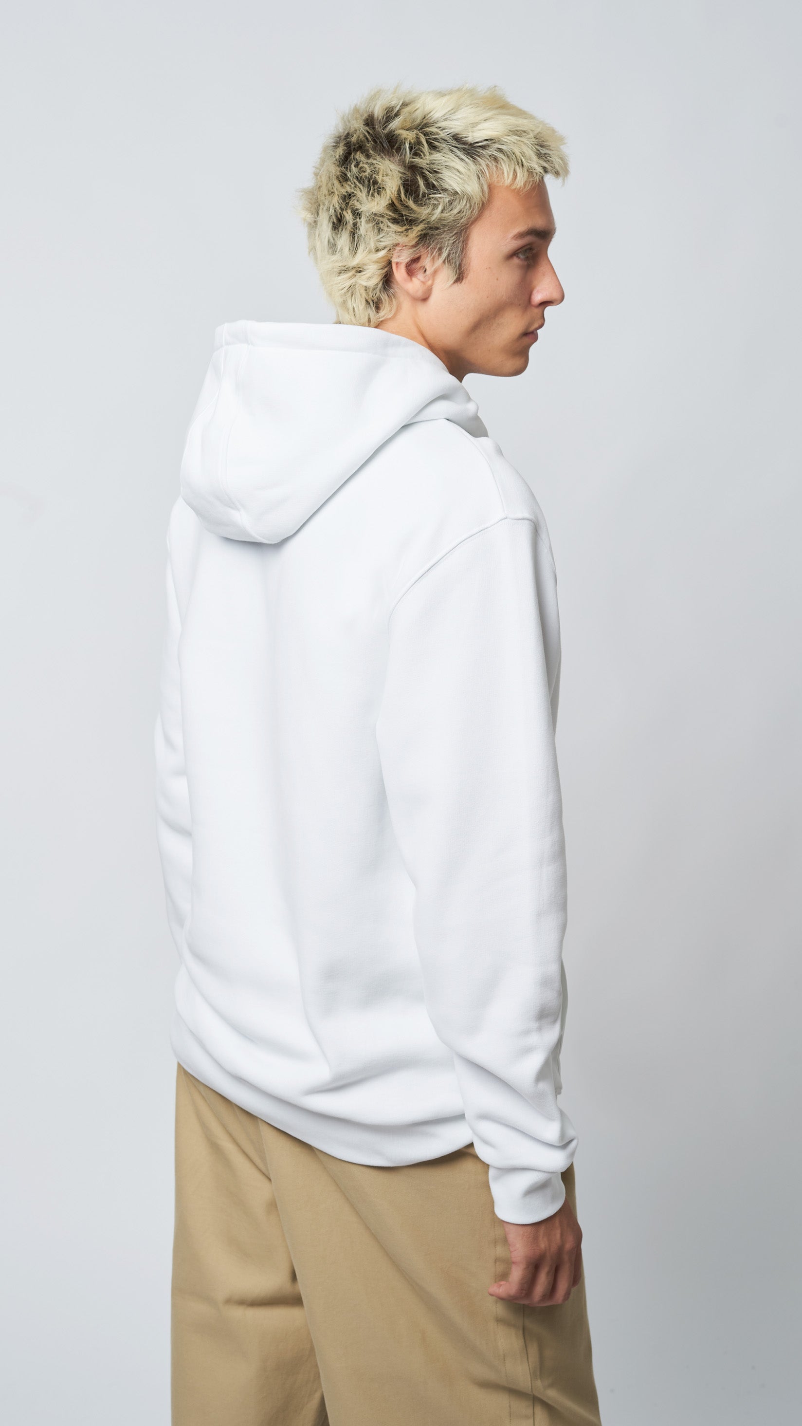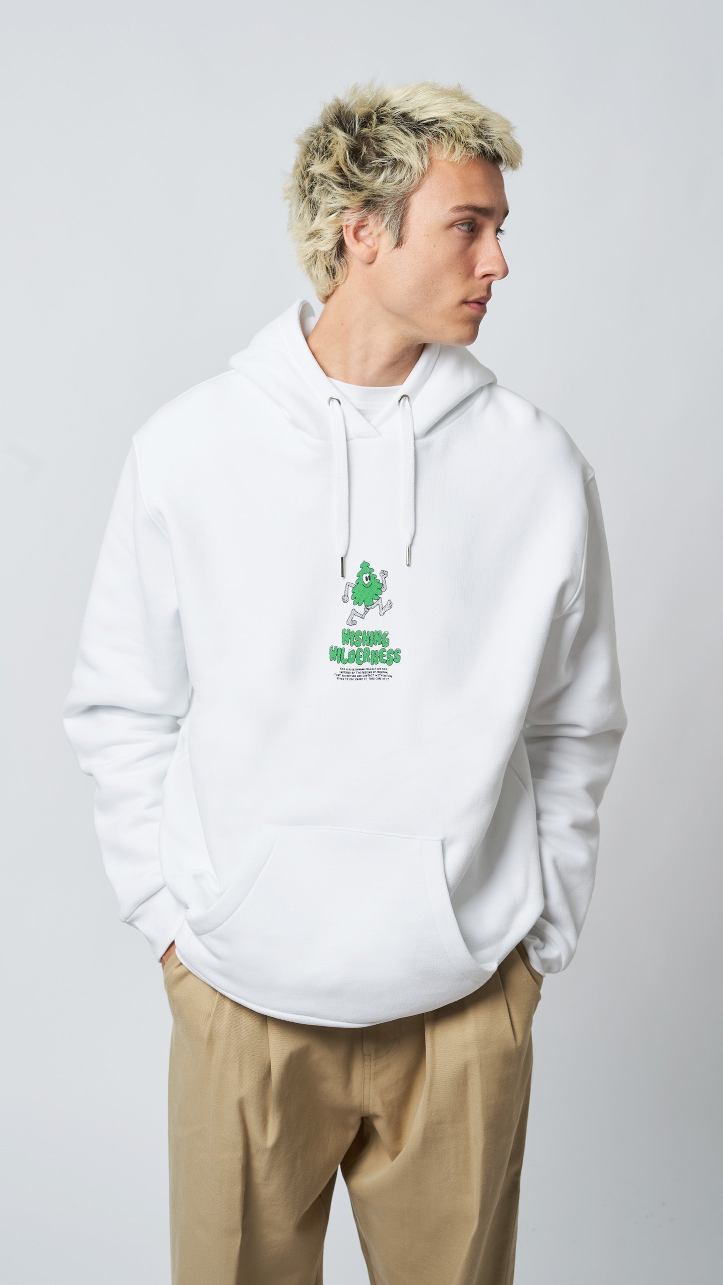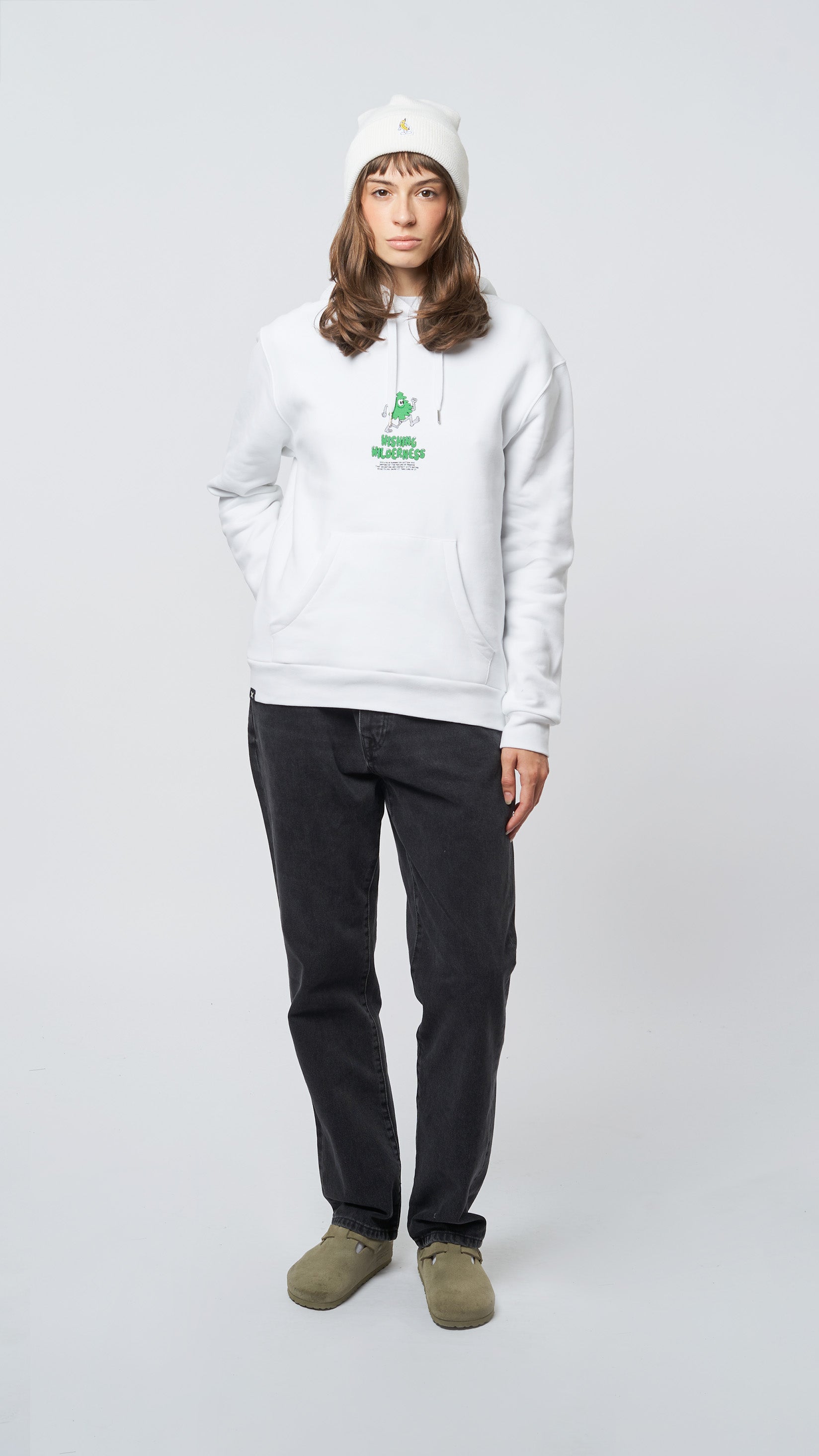 Hoodie with front print in the upper central part and logo on the right sleeve. Front central lower pocket with opening on both sides. Made with 100% organic cotton and regular fit cut.