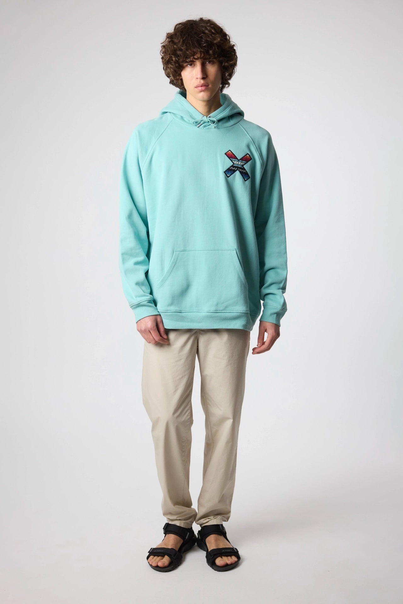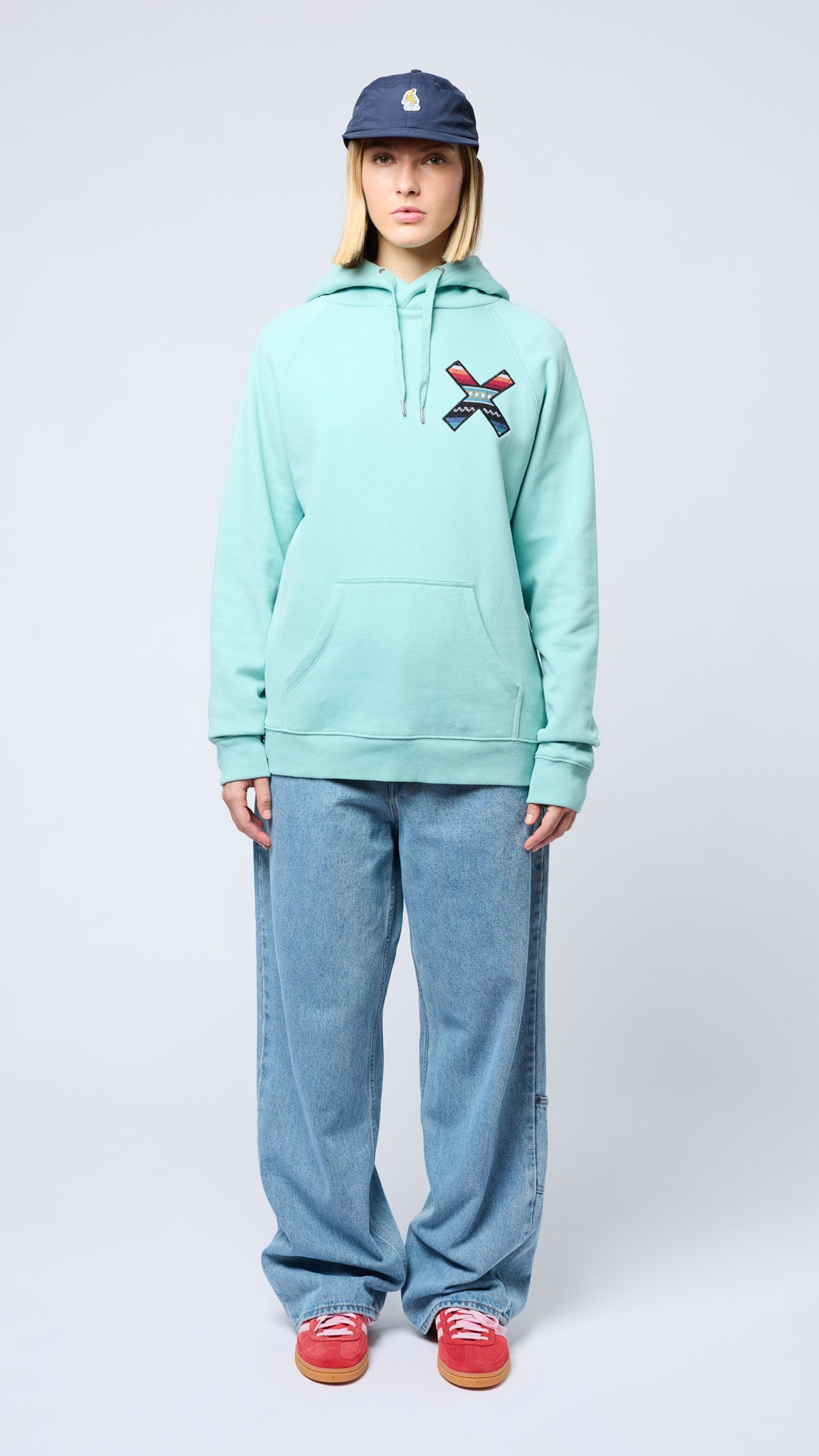 Hoodie com o nosso clássico X bordado: à frente no peito e atrás nas costas. Bolso frontal central inferior com abertura nos dois lados. Fabricada com algodão 100% orgânico e com um corte regular.