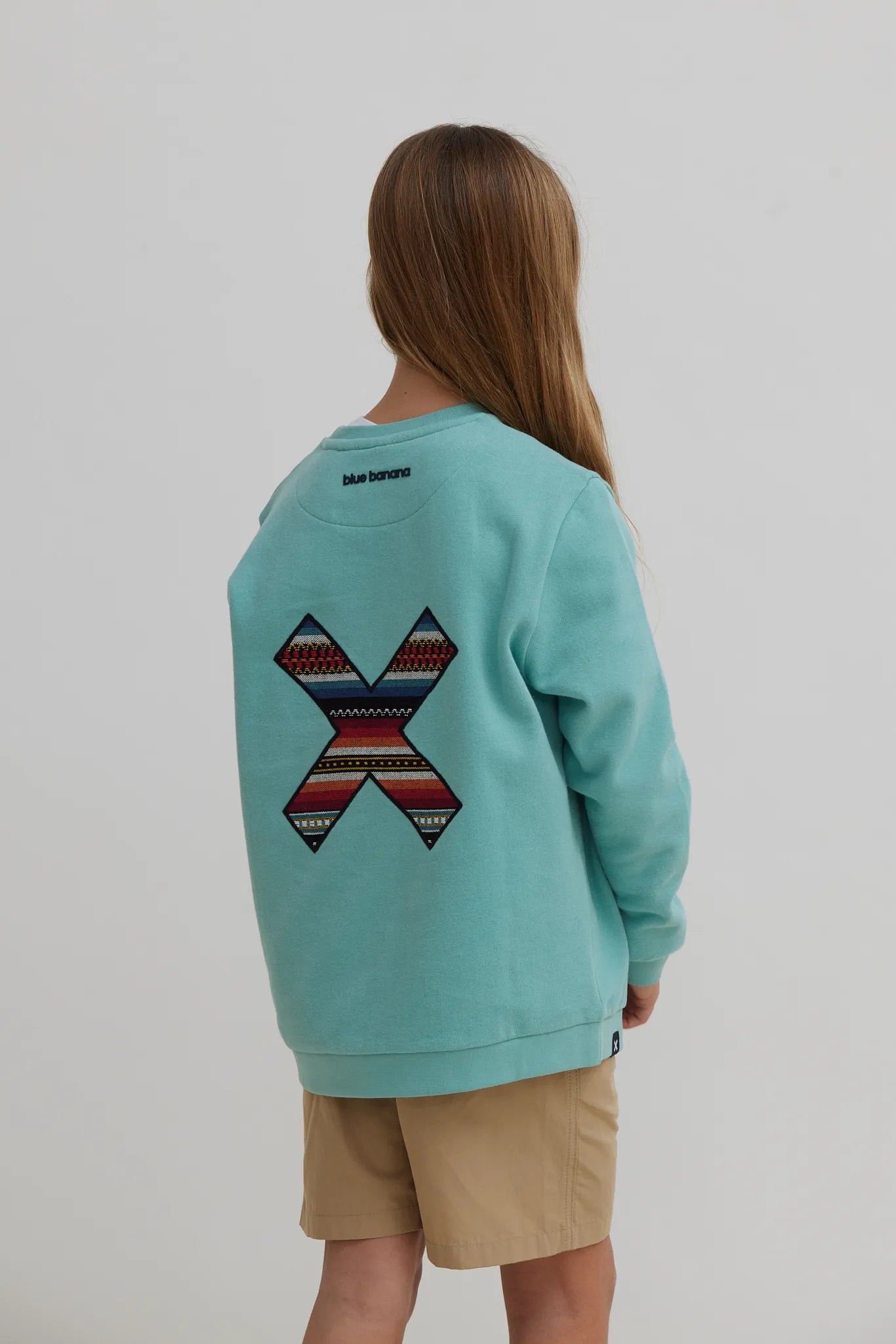 Sudadera con nuestra clásica X bordada: delantera en el pecho y trasera en la espalda. Confeccionada con 100% algodón orgánico.