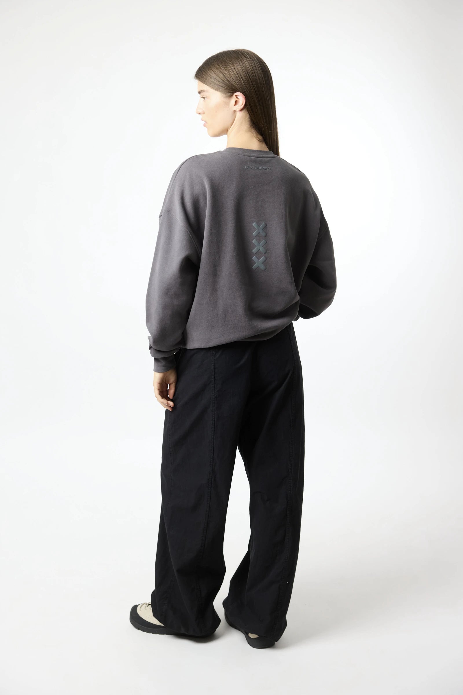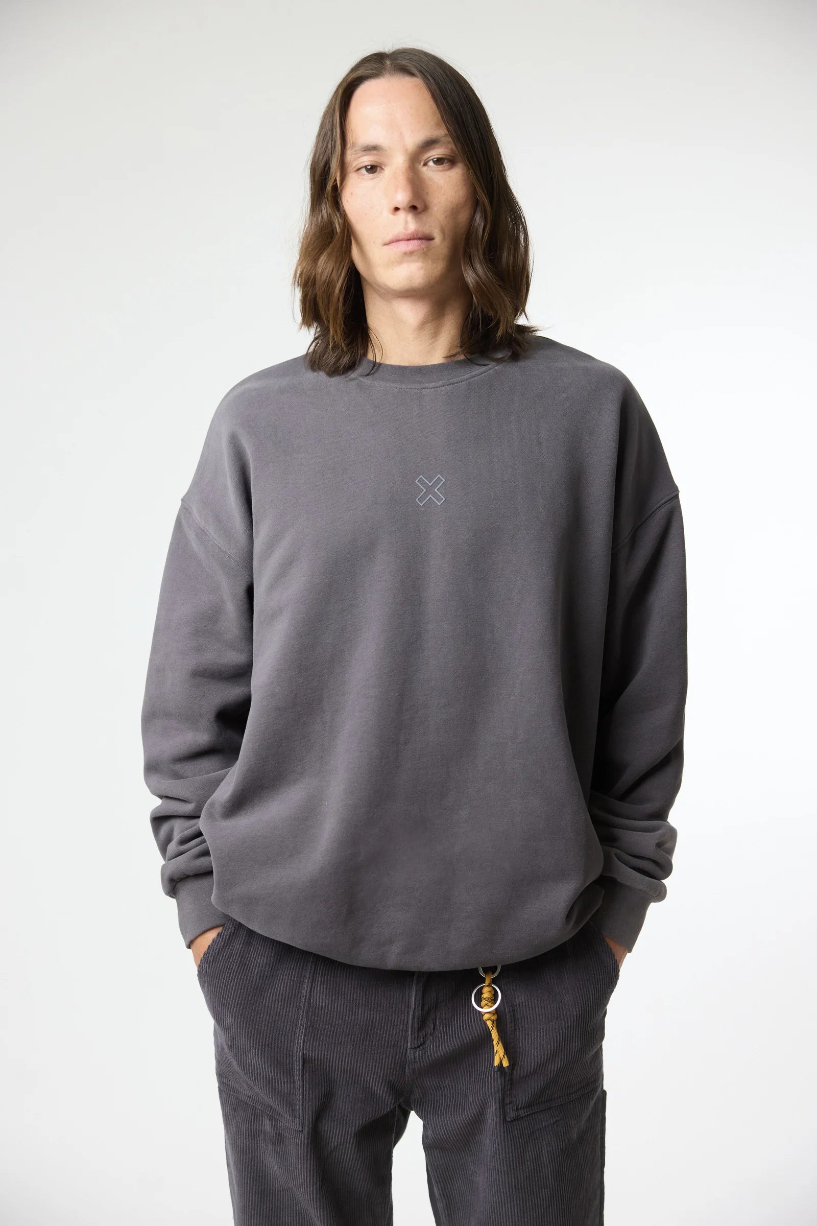 Sweatshirt com estampado frontal e traseiro. Confeccionada em 100% algodão orgânico e corte oversize.