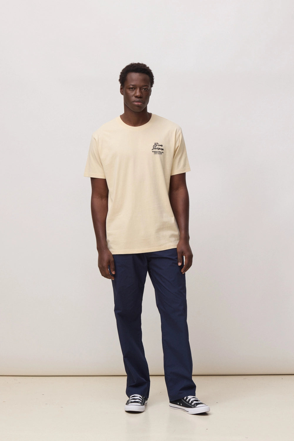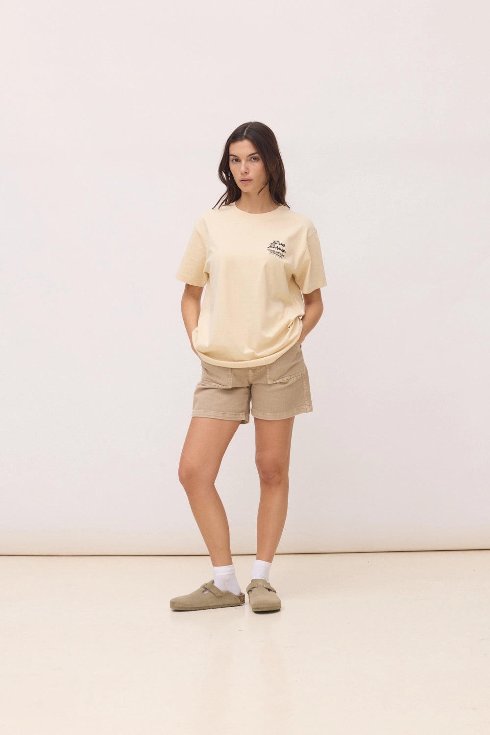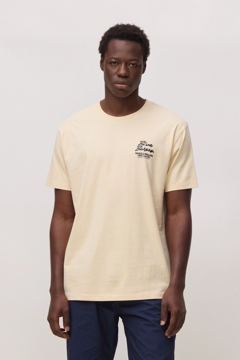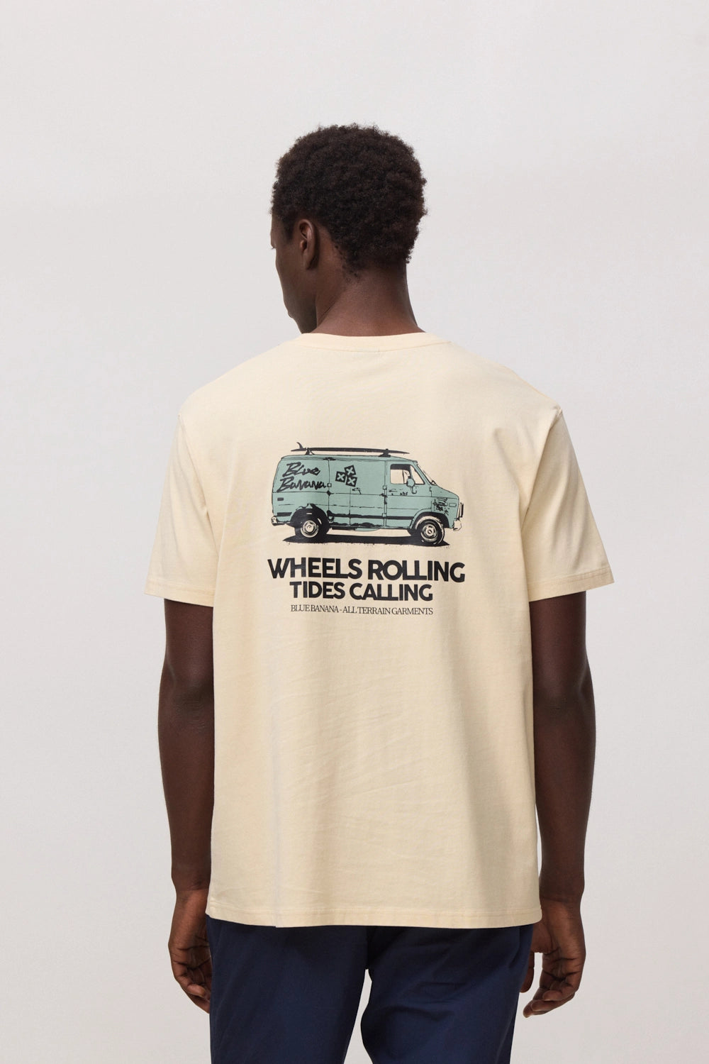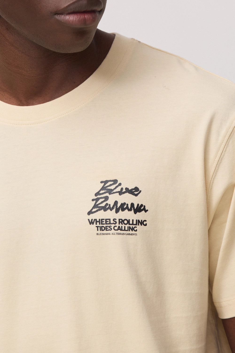 T-shirt com print frontal no lateral superior esquerdo e print traseiro central. Confecionada com 100% algodão orgânico e corte regular fit.