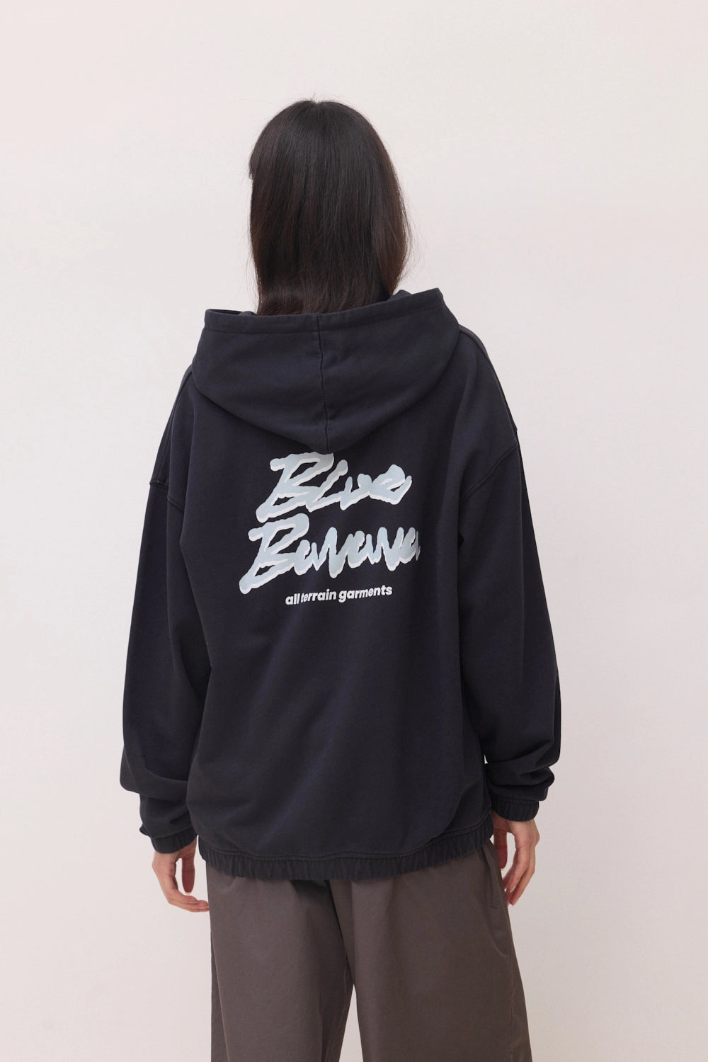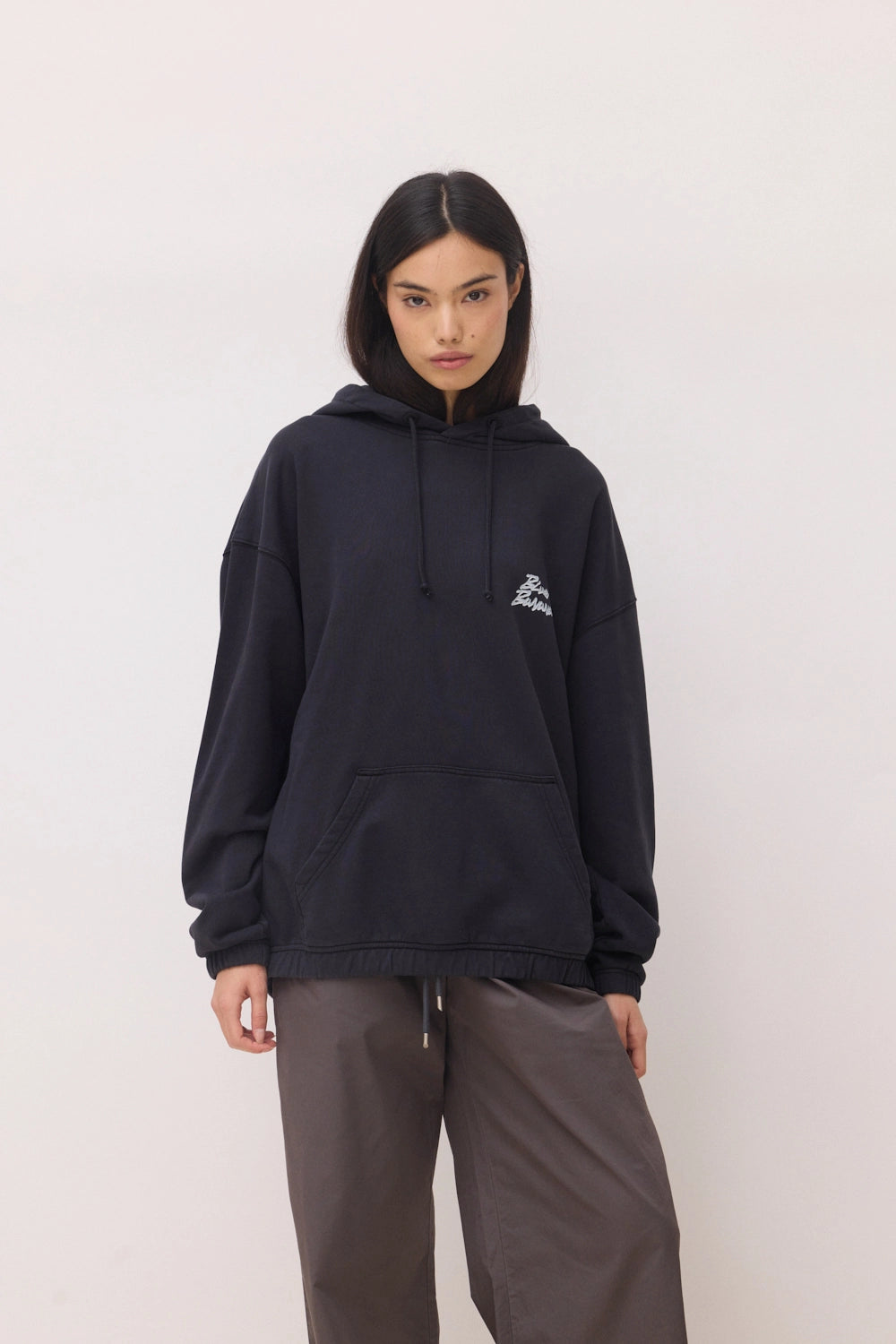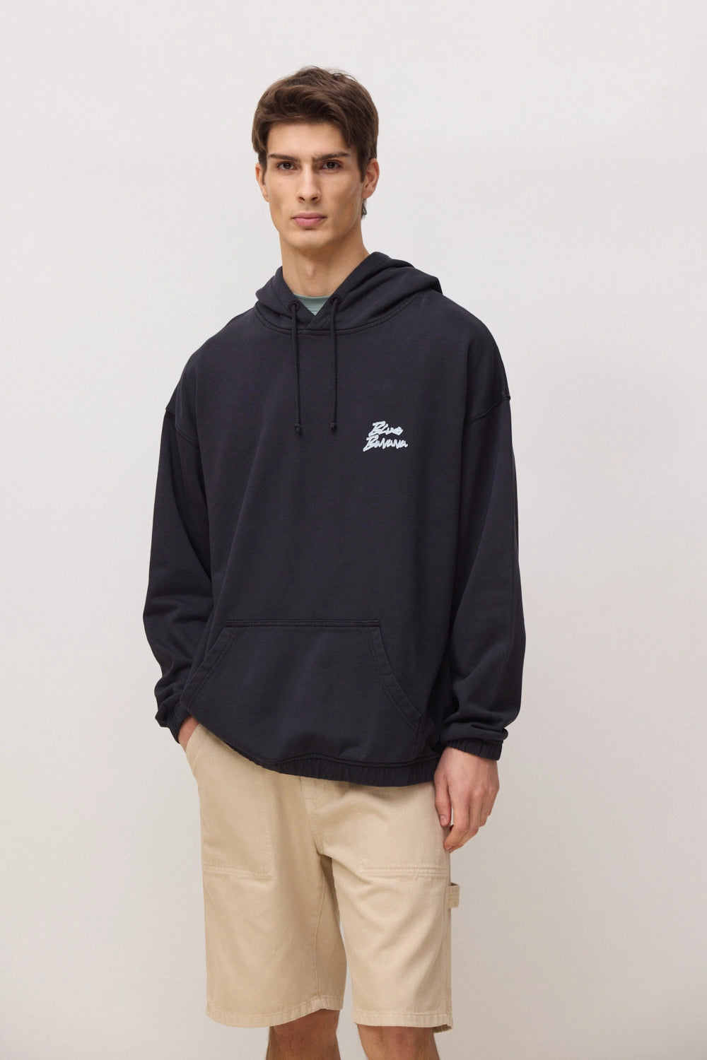 Sweatshirt com capuz com print frontal no lateral superior esquerdo e print traseiro central e corte oversize. Confecionada com 100% algodão orgânico.