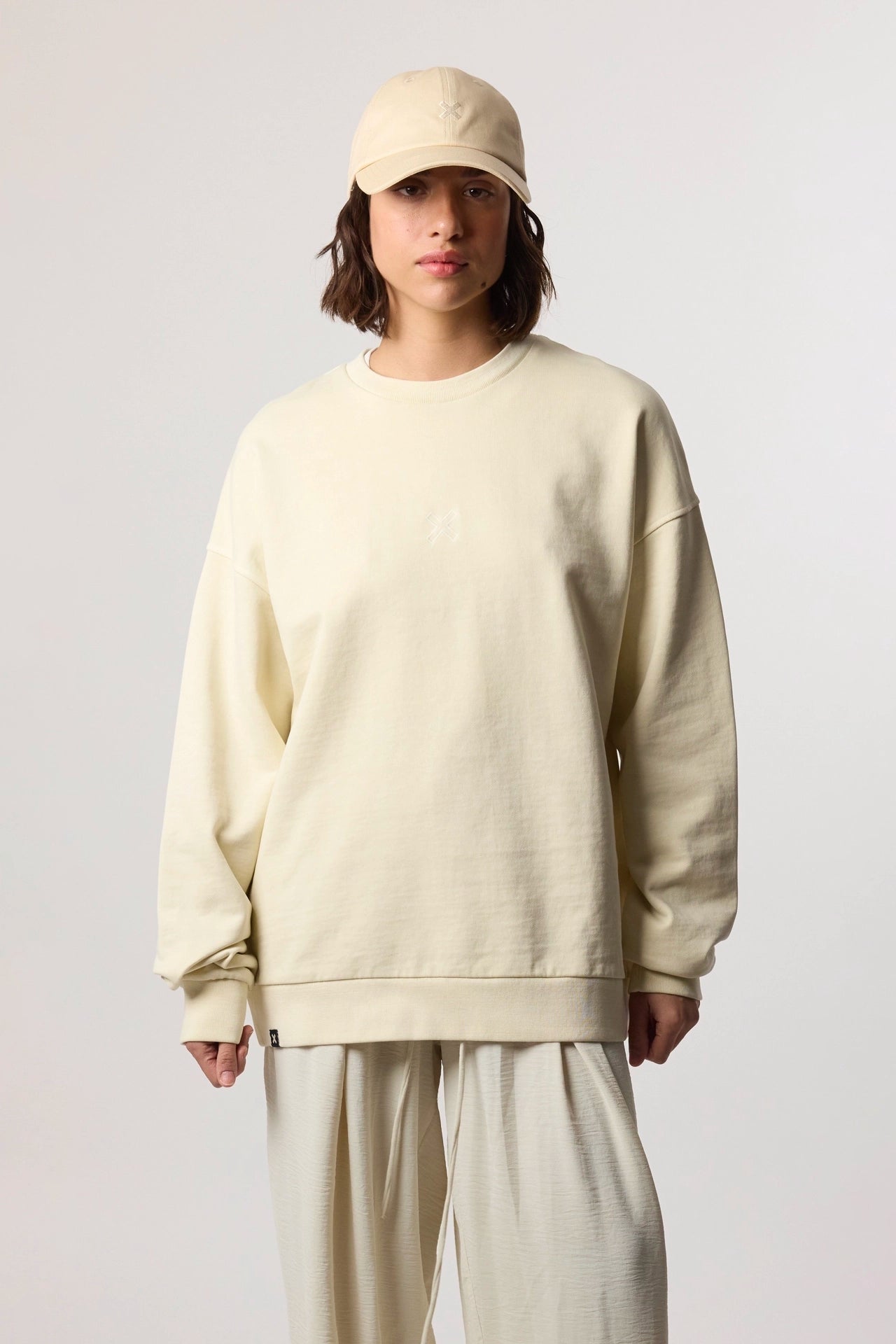Moletom oversize 100% algodão orgânico com estampa frontal e traseira.