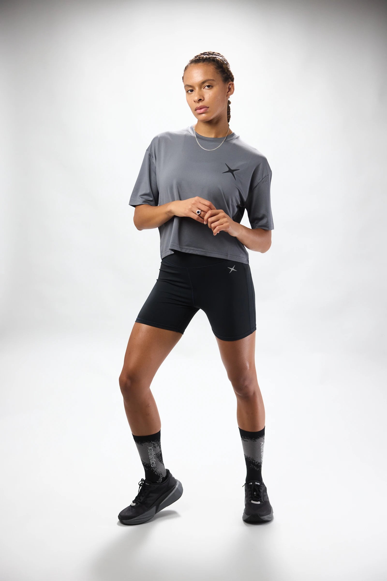Camisola desportiva fabricada em poliéster reciclado, de secagem rápida, UV50 e repelente à água. Logótipo refletor na parte frontal central e traseira central.