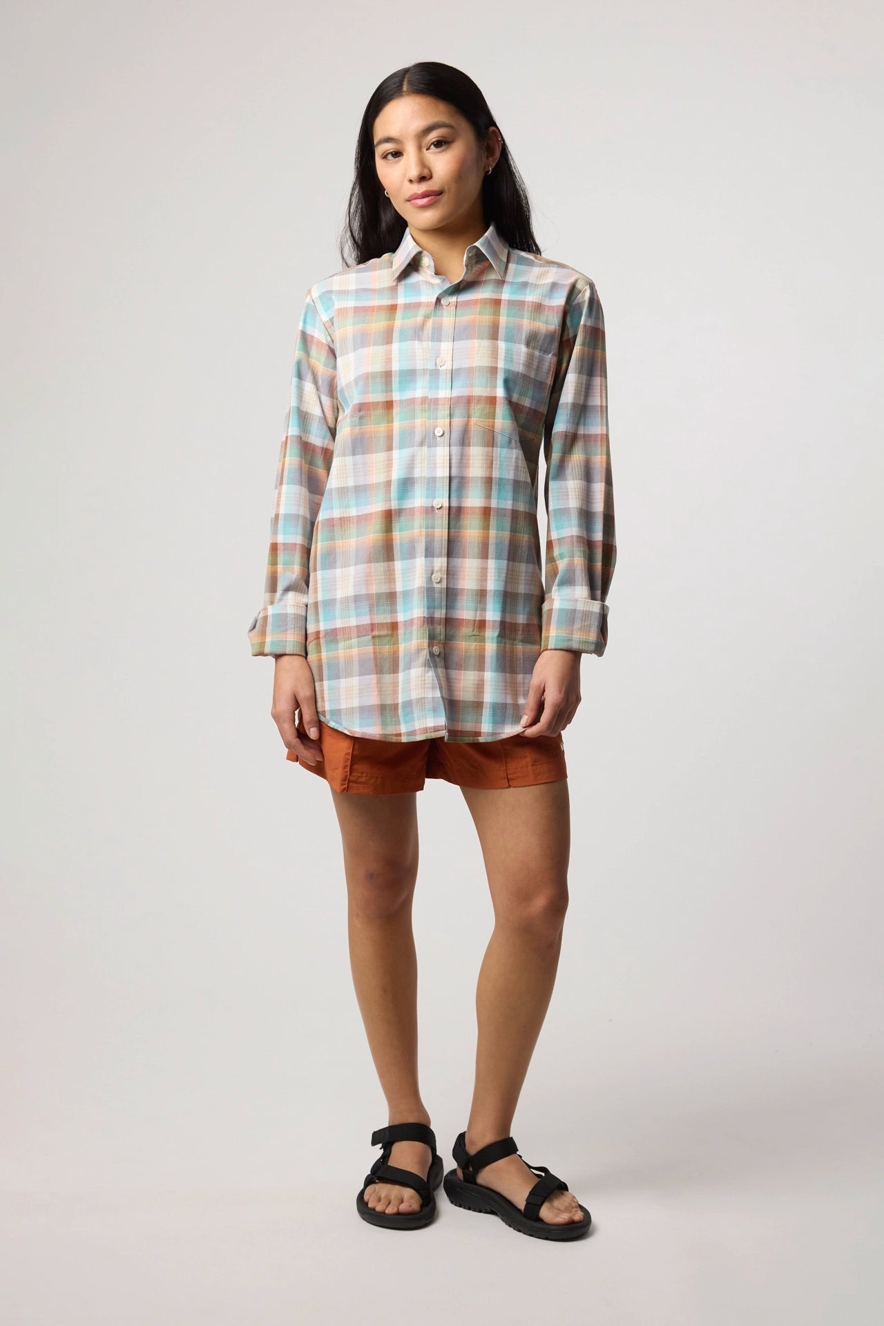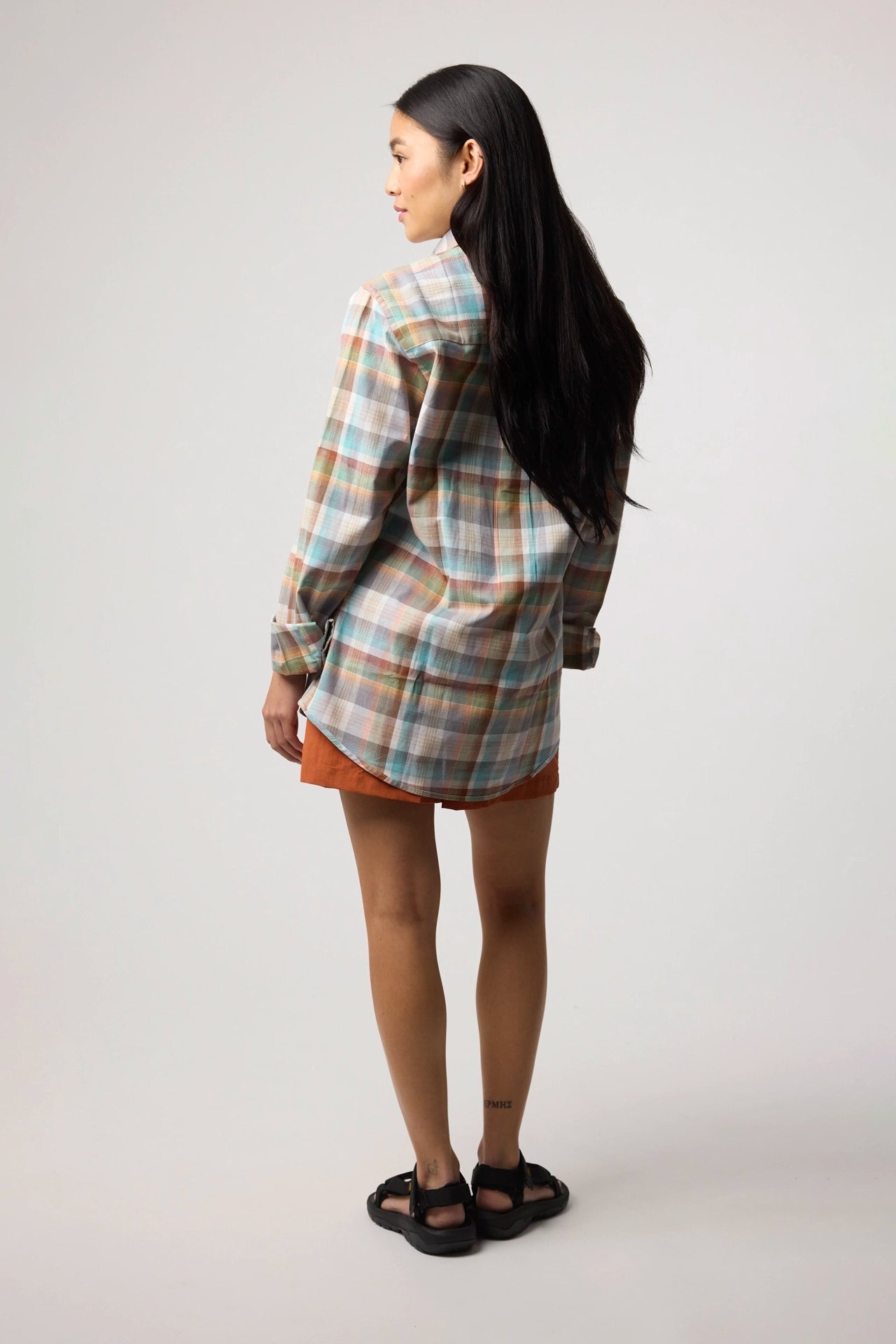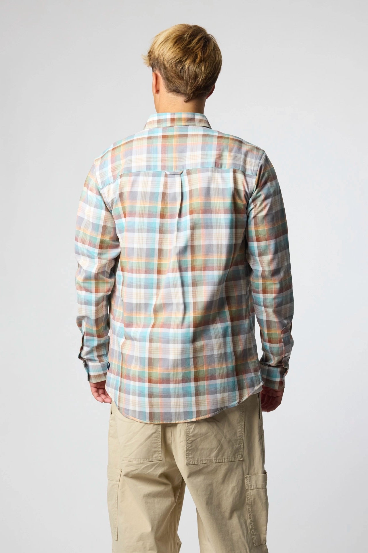 Camisa estampada de 100% algodão, com um bolso à frente do lado esquerdo. Etiqueta bordada na parte inferior esquerda. Botões personalizados.