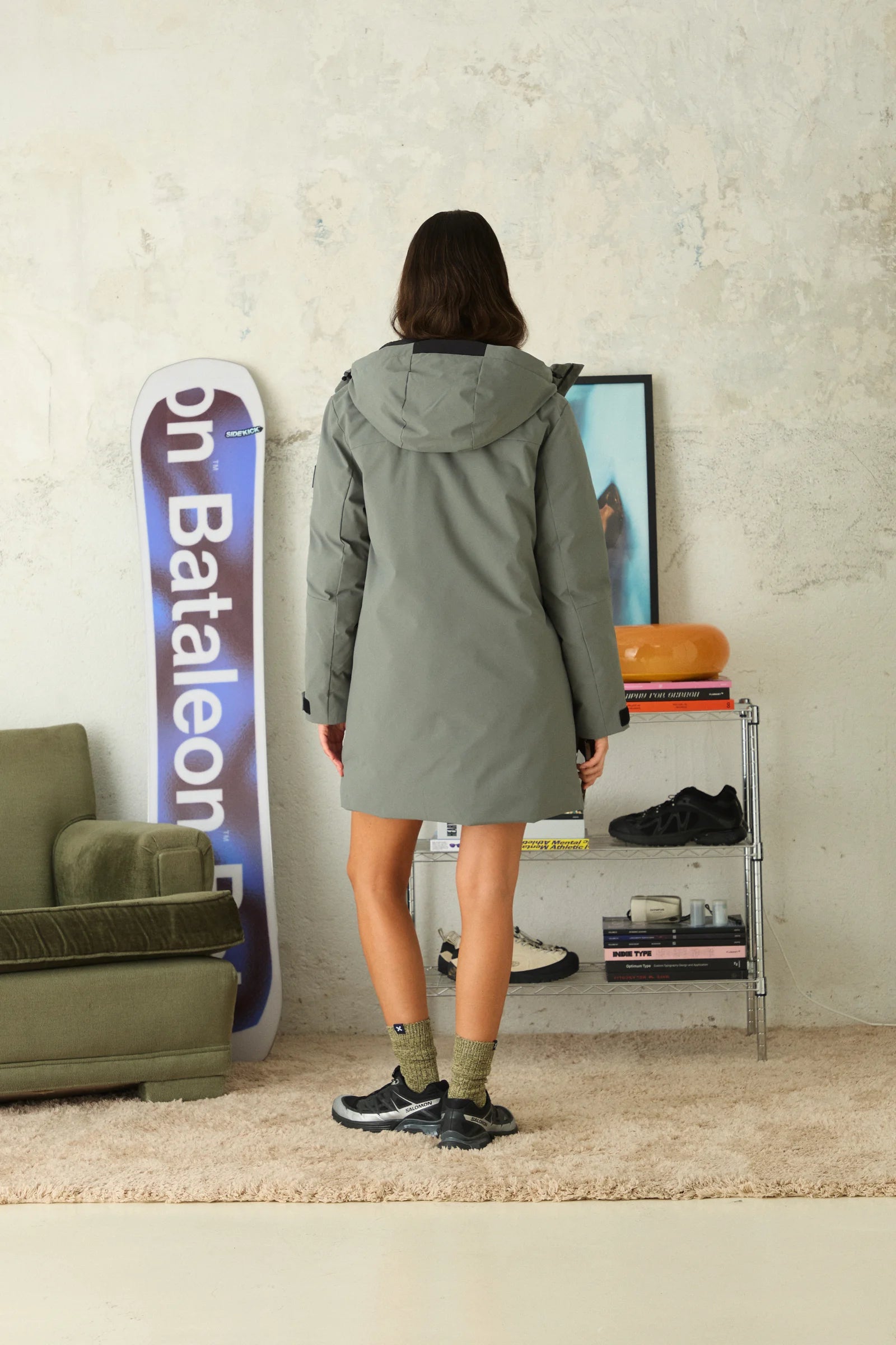 Parka com exterior resistente à água e ao vento, isolamento térmico sustentável e bolsos funcionais.