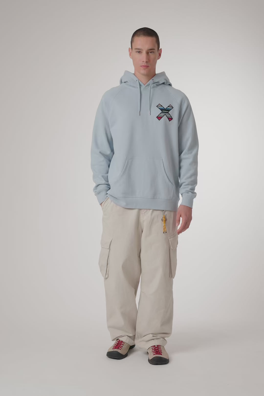 Hoodie com o nosso clássico X bordado: à frente no peito e atrás nas costas. Bolso frontal central inferior com abertura nos dois lados. Fabricada com algodão 100% orgânico e com um corte regular.
