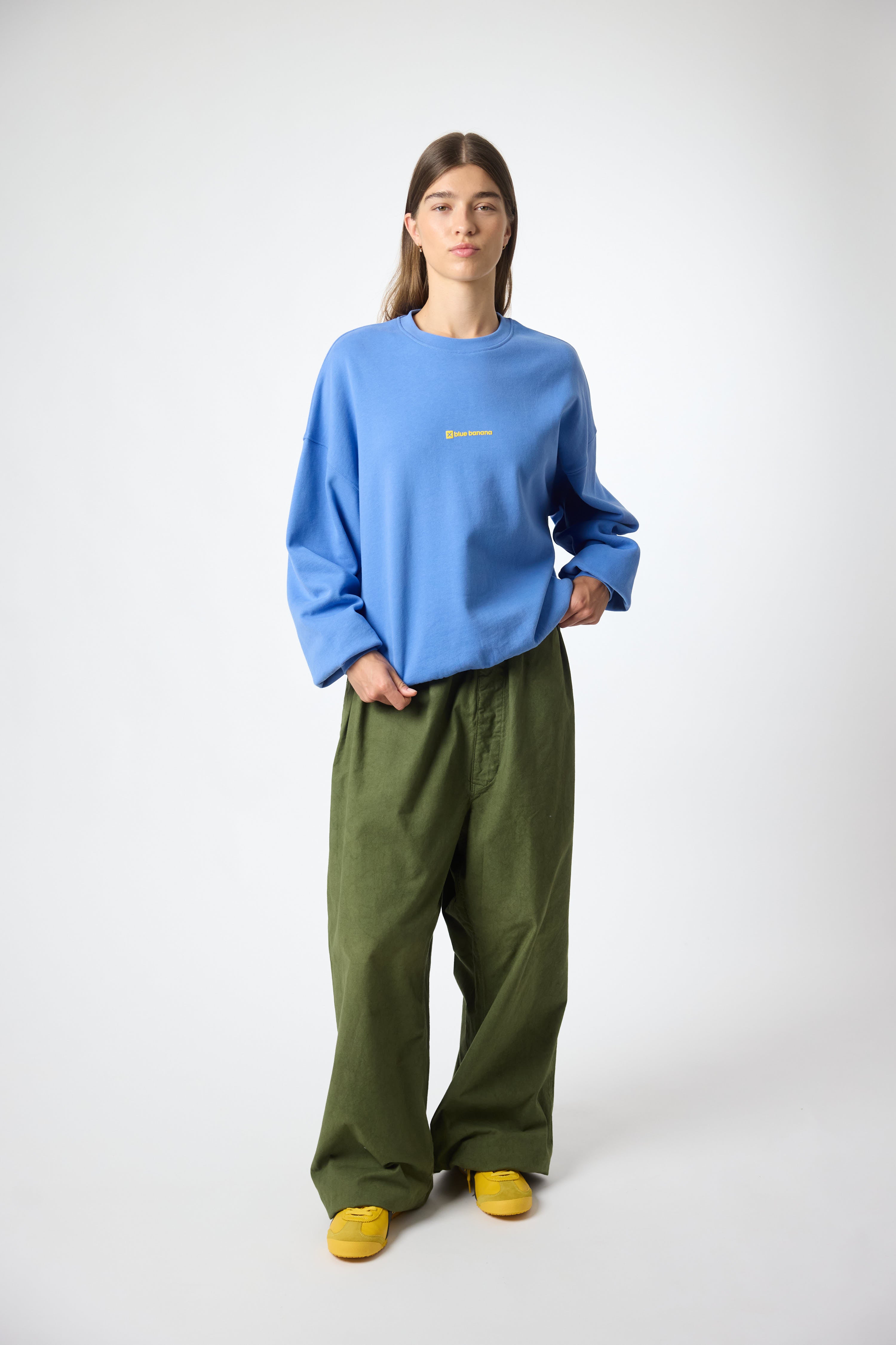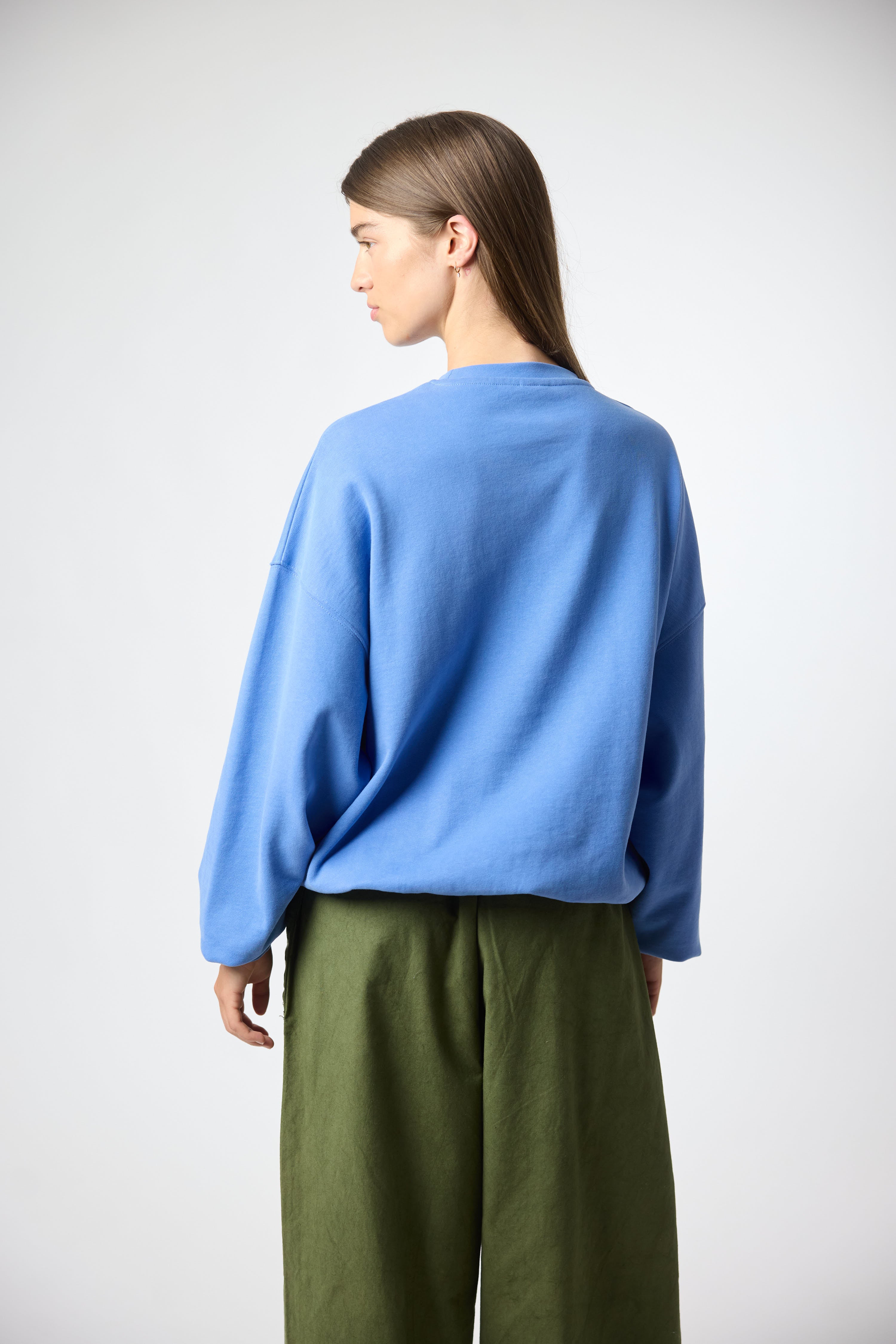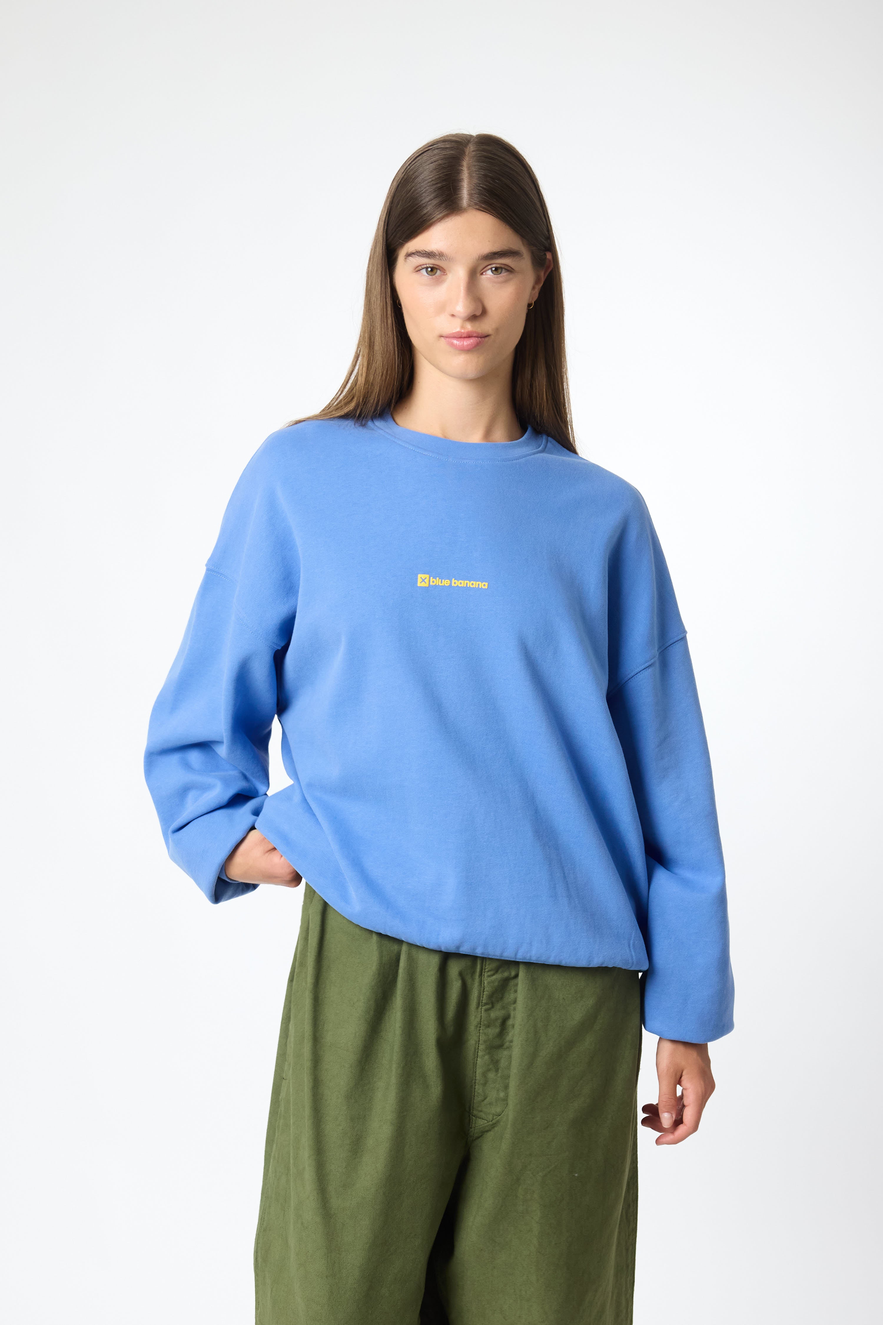 Sweatshirt com estampado frontal. Confeccionada em 100% algodão orgânico. Corte boxy.