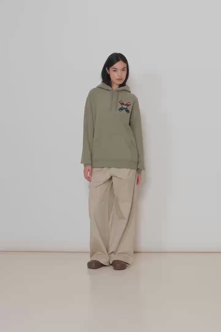 Sweatshirt com capuz com o nosso clássico X bordado: frente no peito e traseira nas costas. Confecionada com 100% algodão orgânico e corte regular fit.