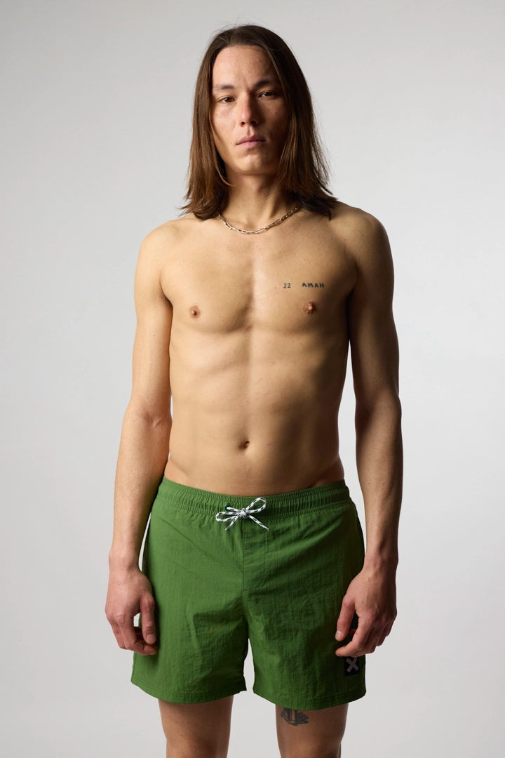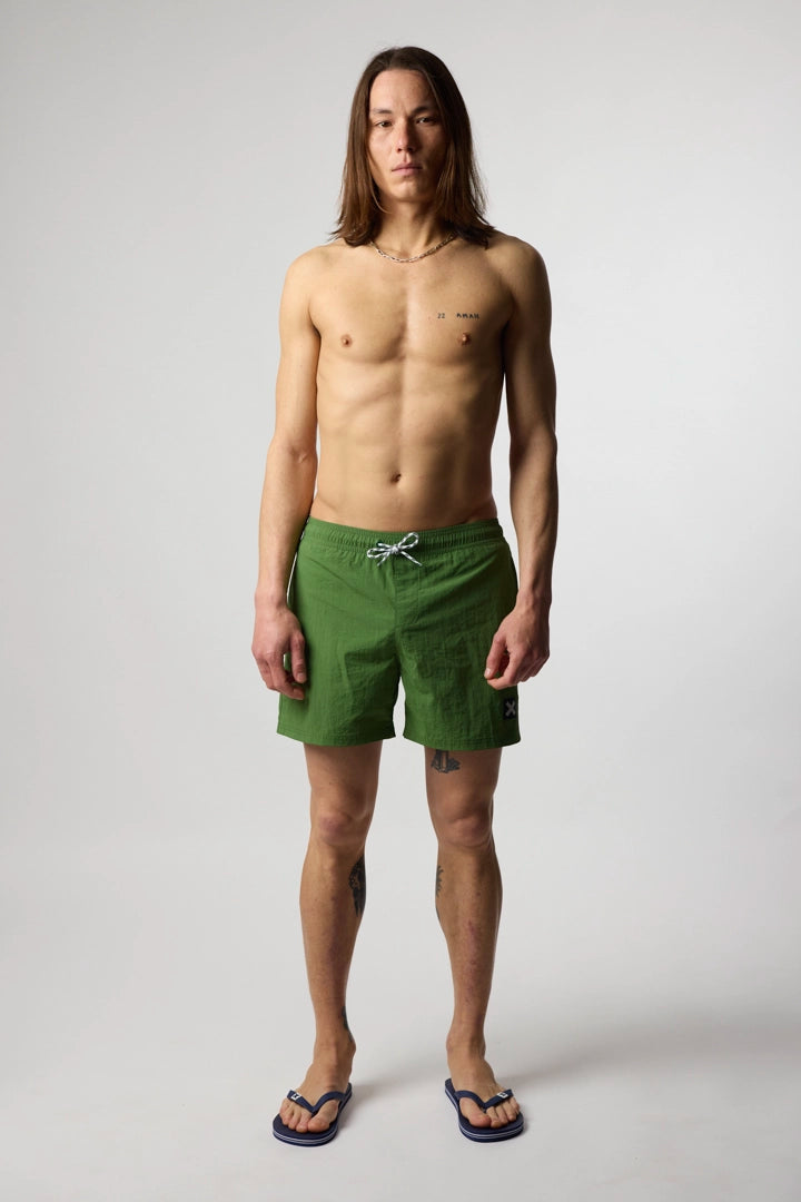 Maiô de perna reta com cós elástico e cordão ajustável.