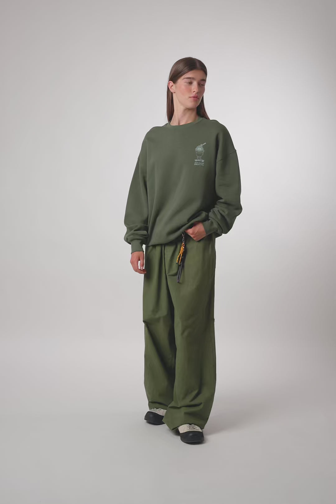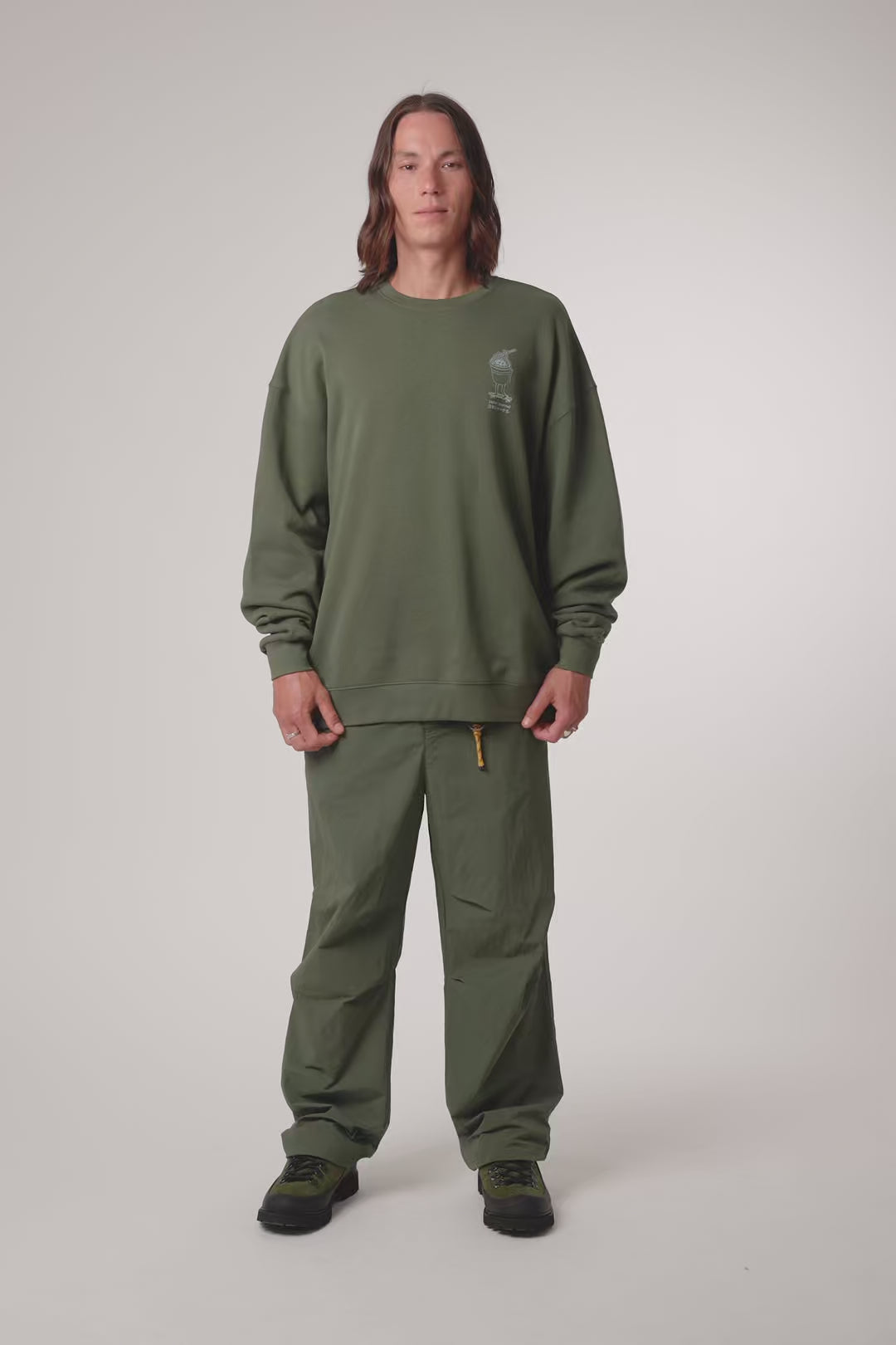 Sweatshirt com estampado frontal no lado superior esquerdo e estampado traseiro central. Confeccionada em 100% algodão orgânico e corte oversize.