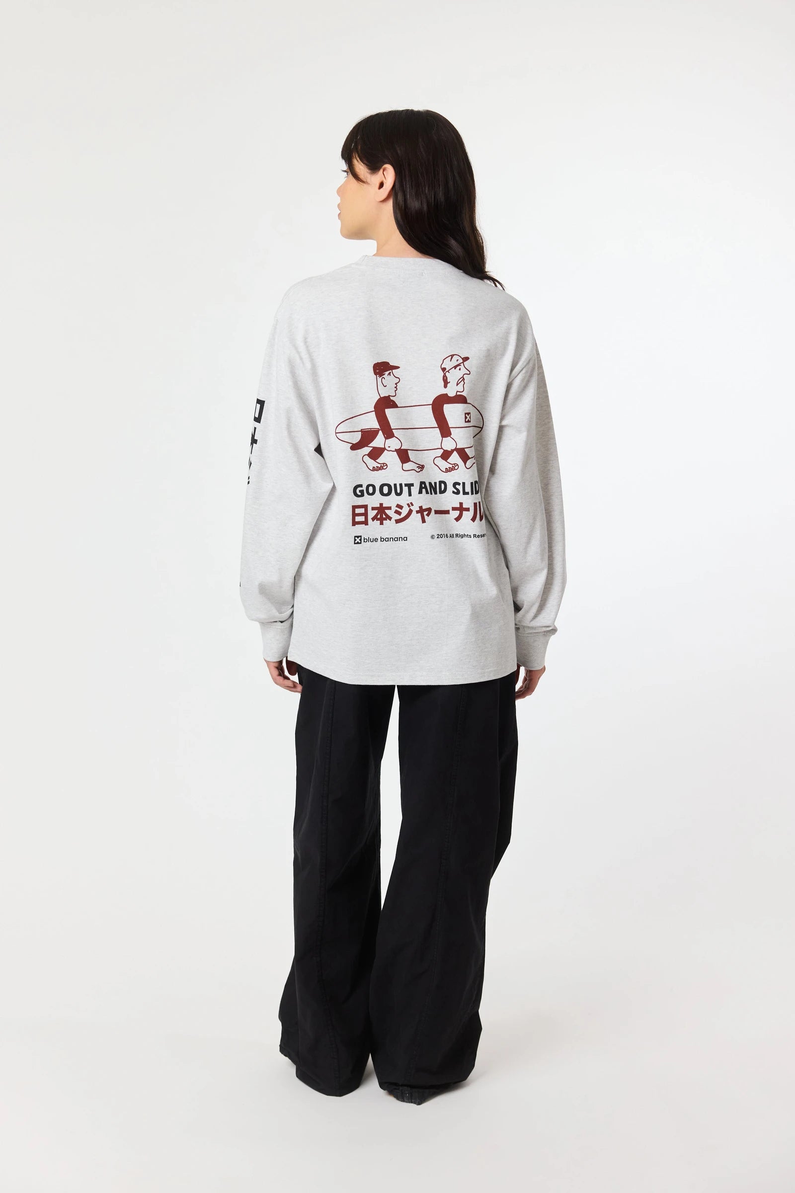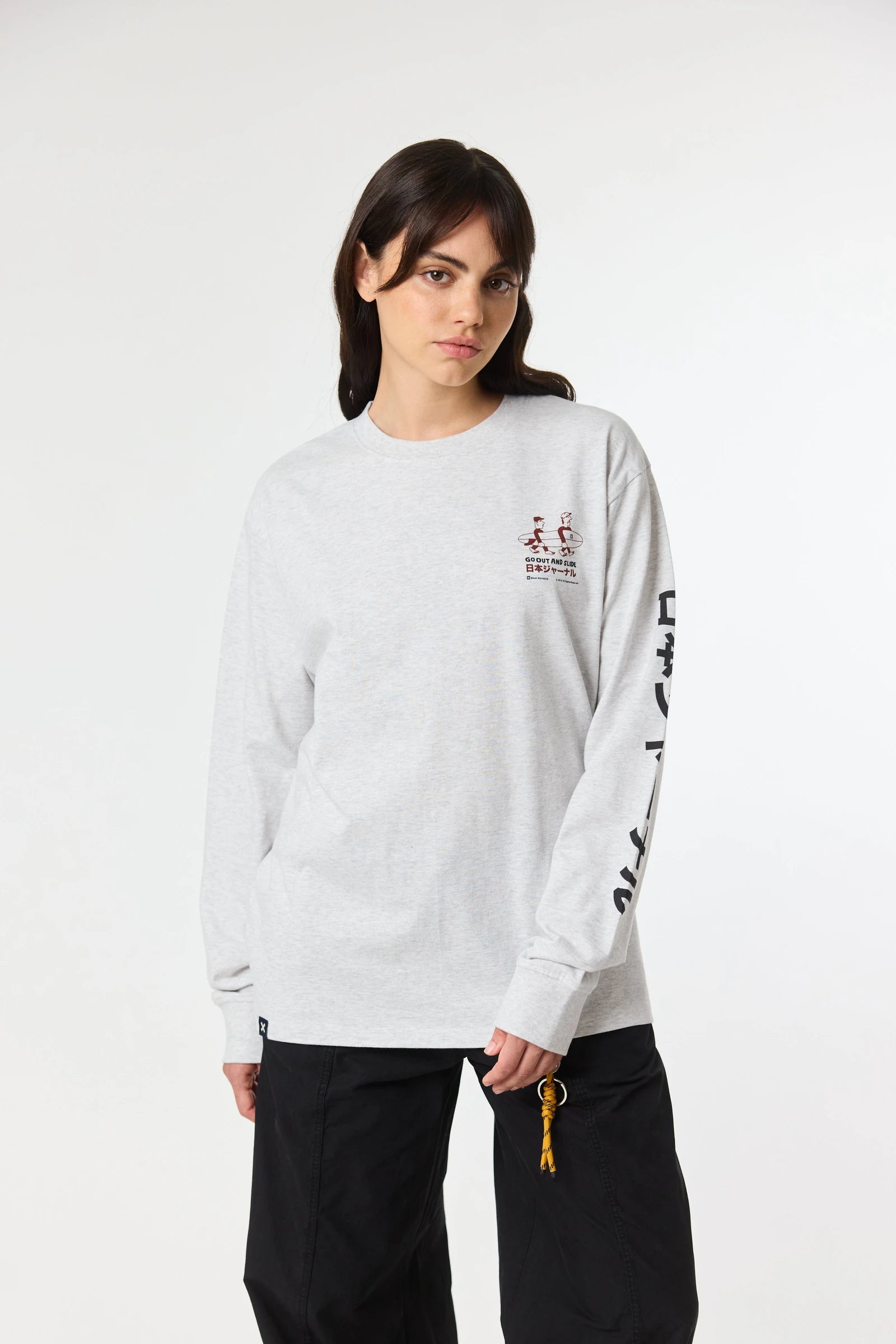 T-shirt de manga comprida com estampado frontal no peito e nas costas. Confeccionada em 100% algodão orgânico e corte regular fit.