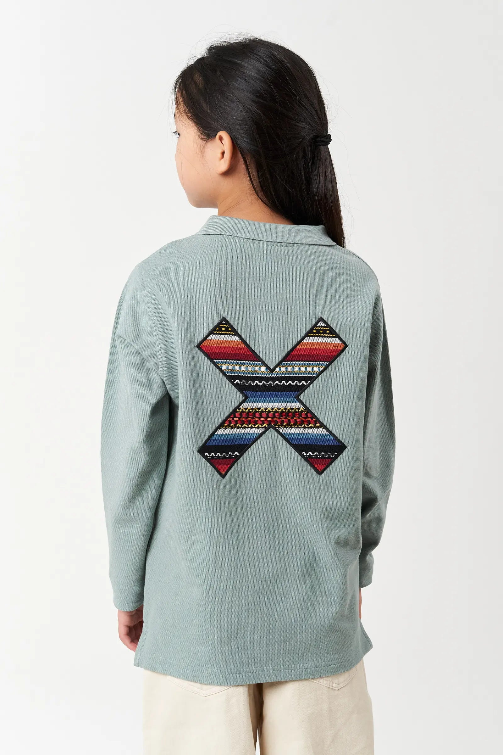 Polo de manga comprida com o nosso clássico X bordado: frontal no peito e traseiro nas costas. Confeccionado em 100% algodão orgânico e corte regular fit.