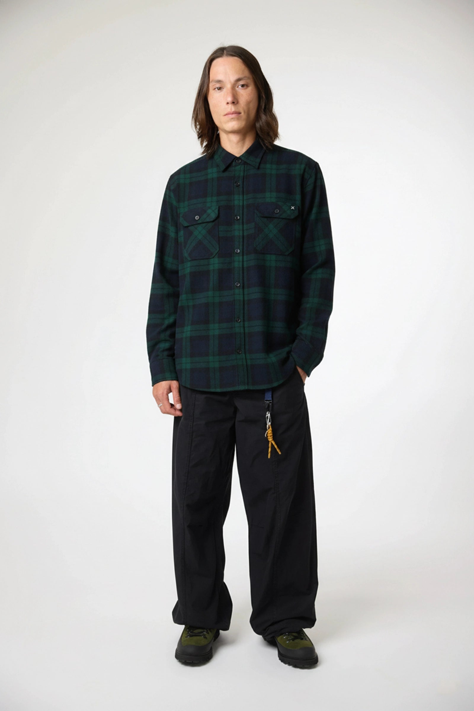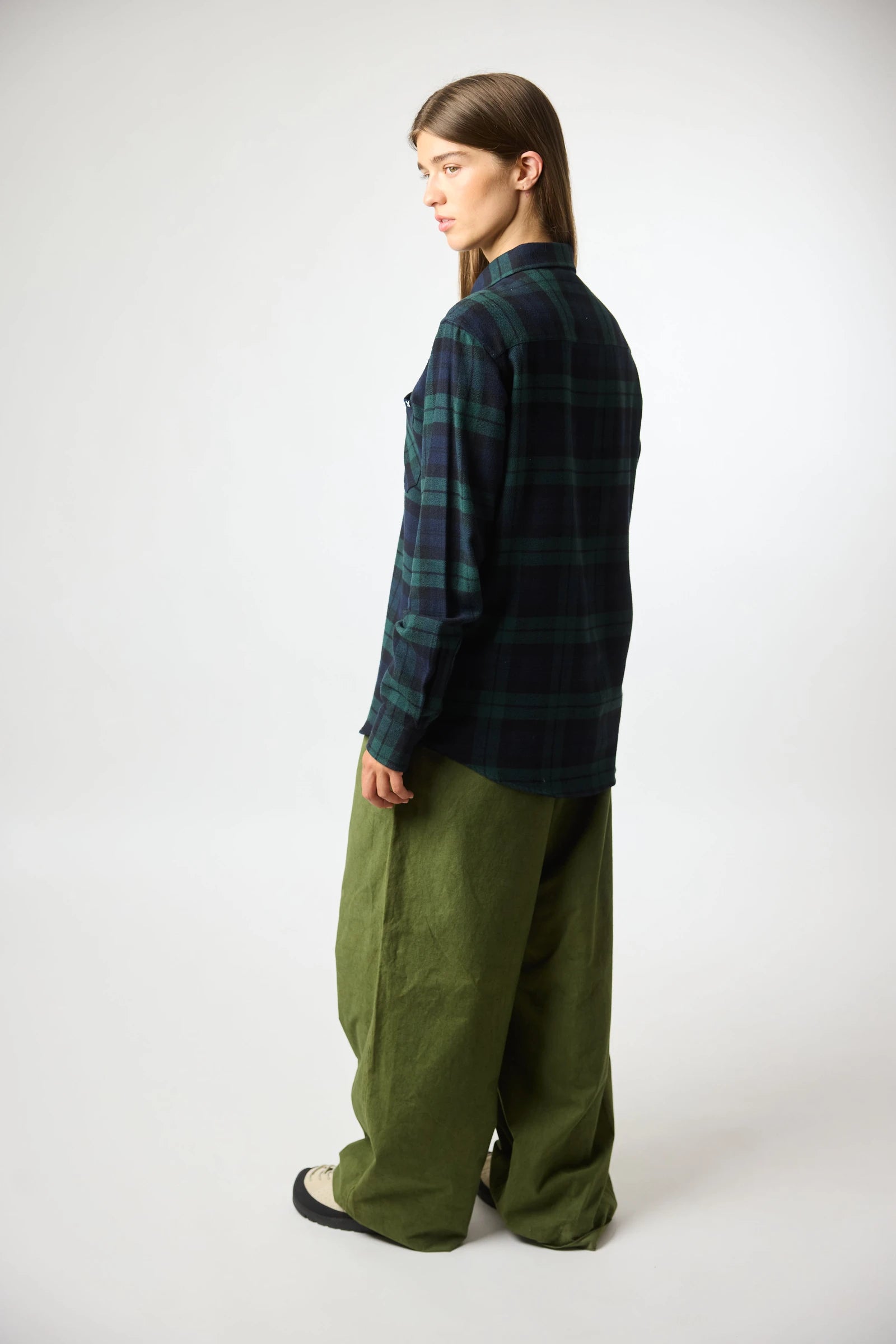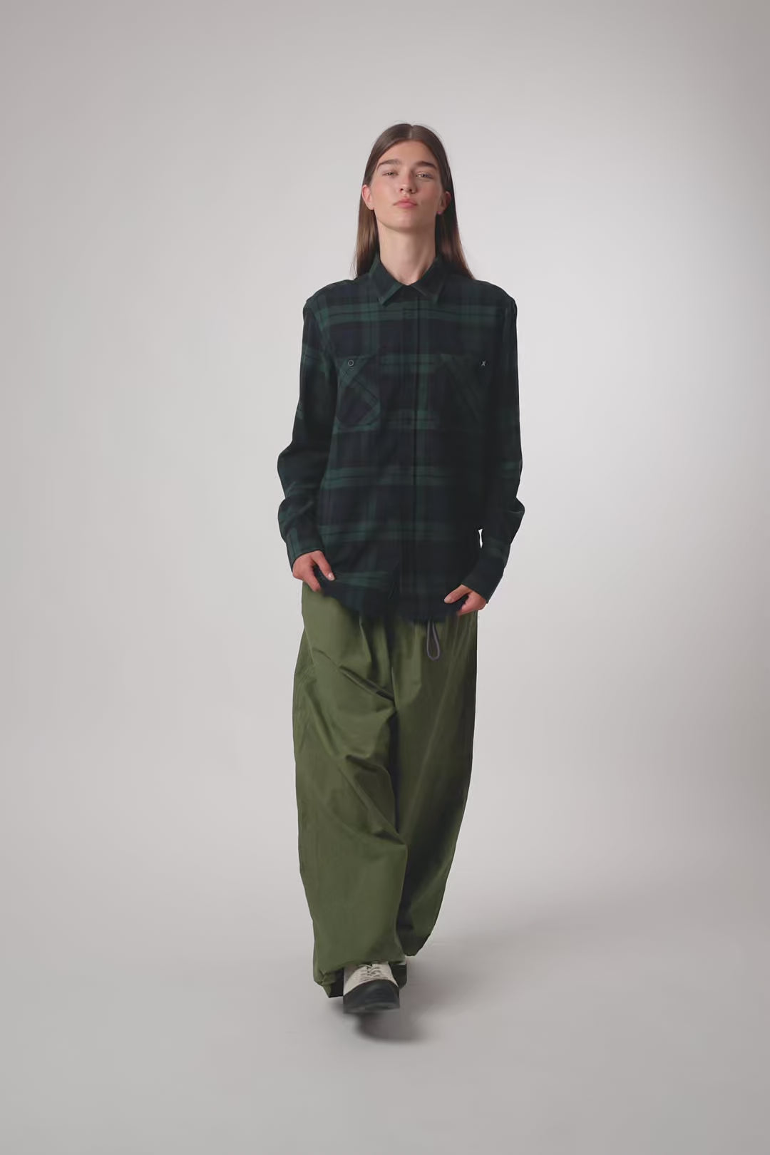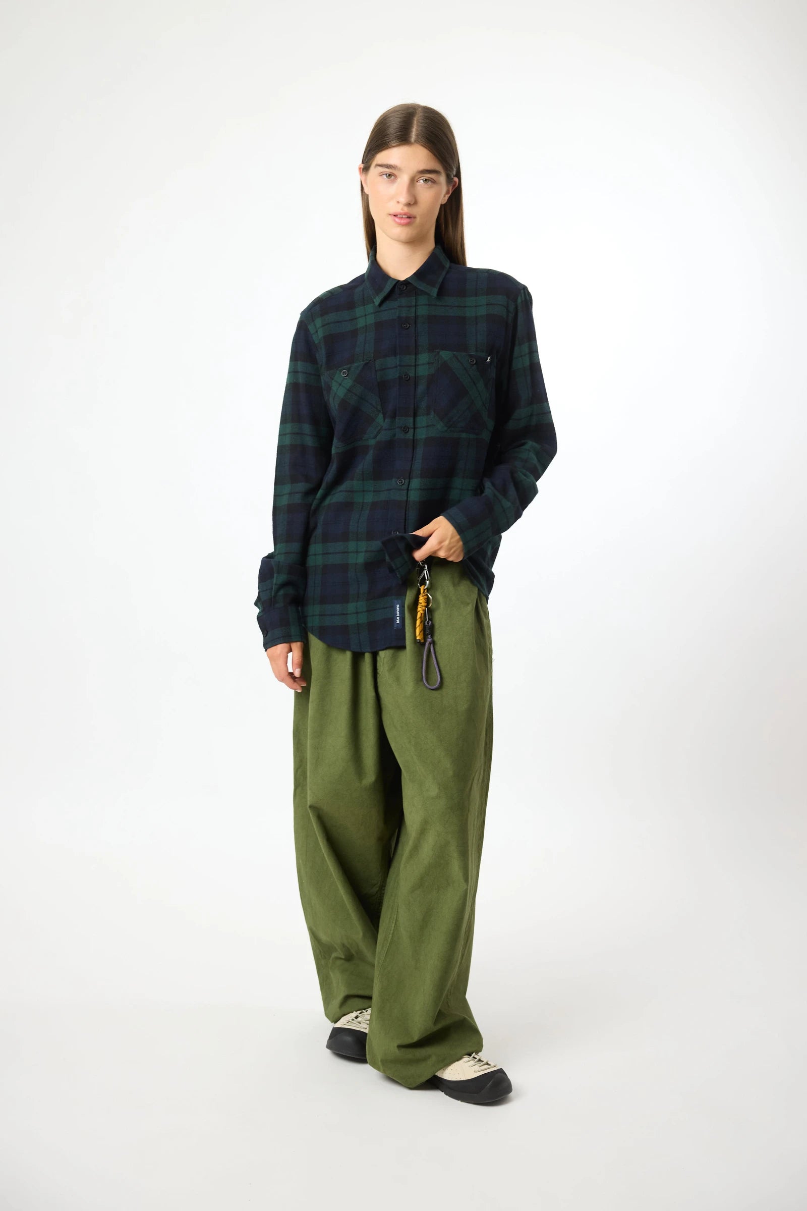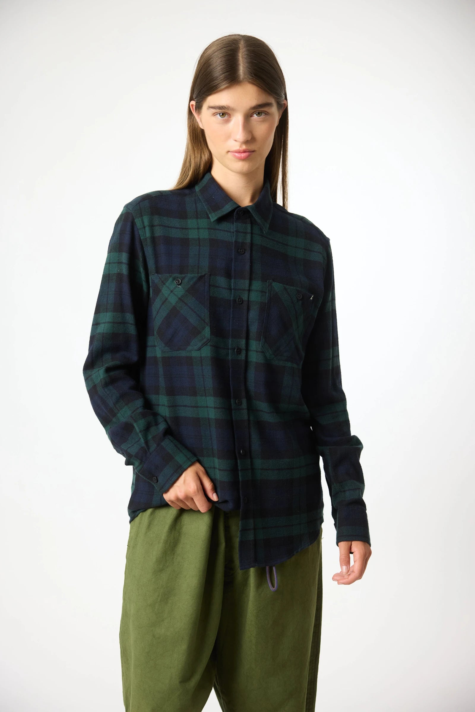 Camisa aos quadrados, de manga comprida, 100% algodão. Punho ajustável com dois botões. Dois bolsos de chapa no peito. Botões personalizados. Etiquetas de branding no bolso frontal e na parte inferior do interior da carcela.