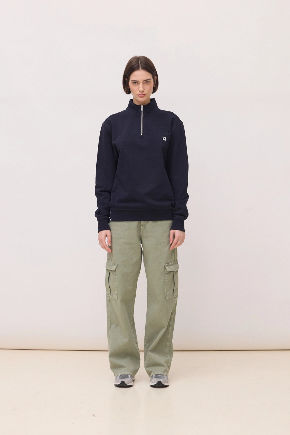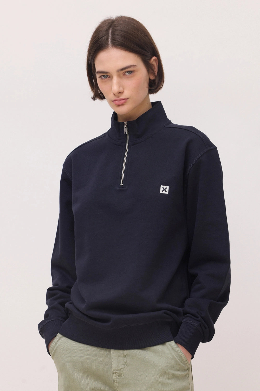 Sweatshirt com logótipo bordado no peito. Confecionada com 100% algodão orgânico. Corte regular fit e gola com fecho de correr.