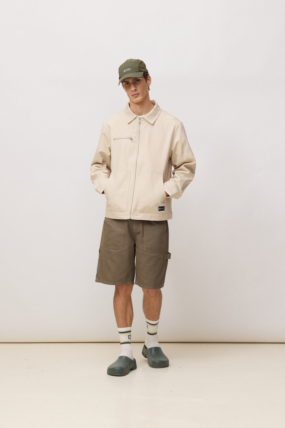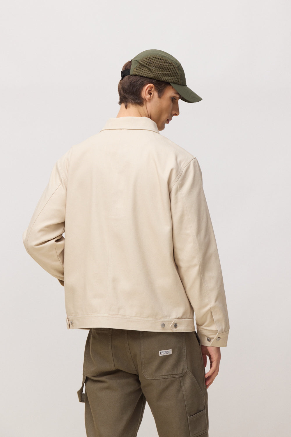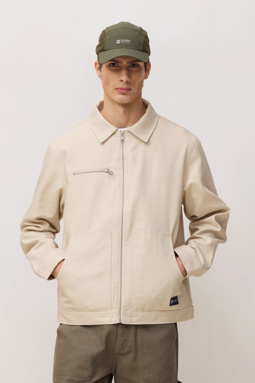 Casaco estilo "worker" confecionado em tecido de canvas, 100% algodão.