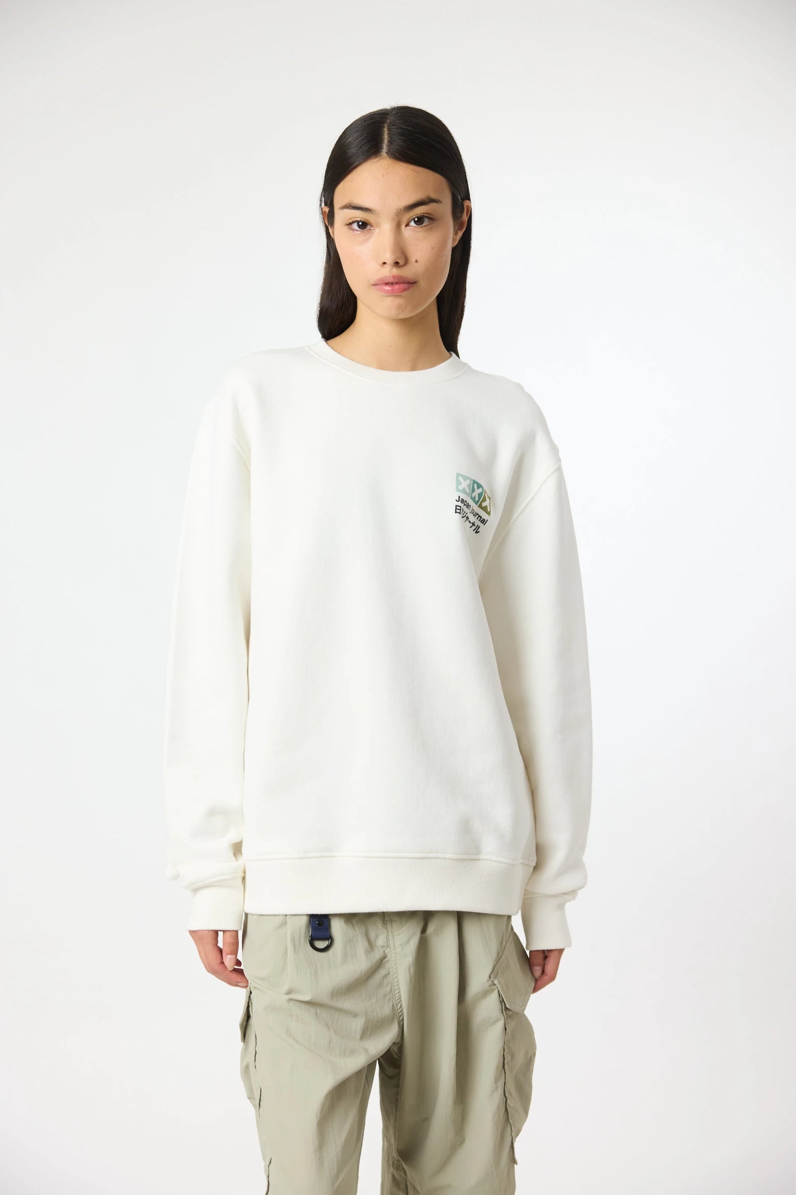 Sweatshirt com estampado frontal no lado superior esquerdo e estampado traseiro central. Confeccionada em 100% algodão orgânico e corte regular fit.