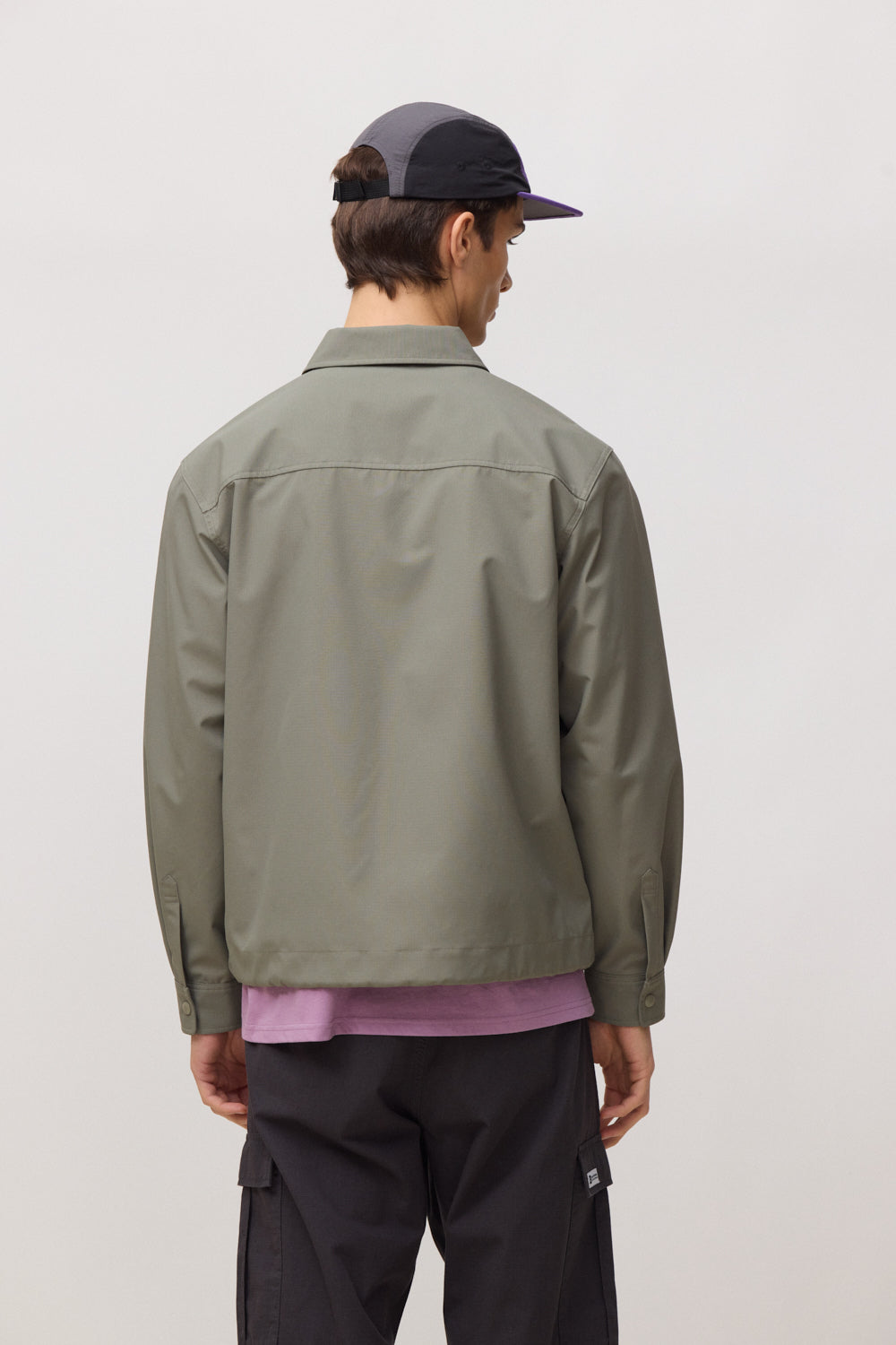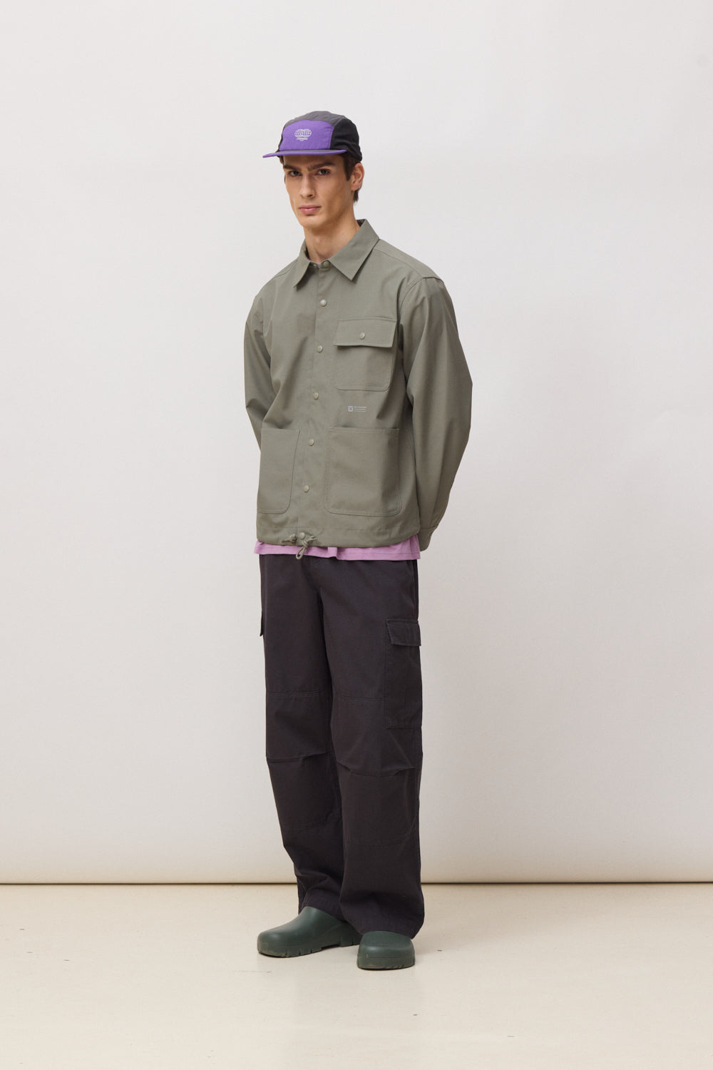 - Bolso no peito com aba e botão de pressão.