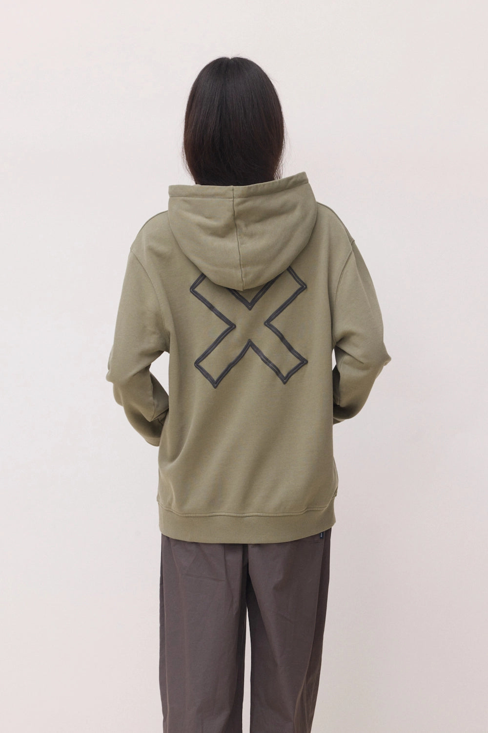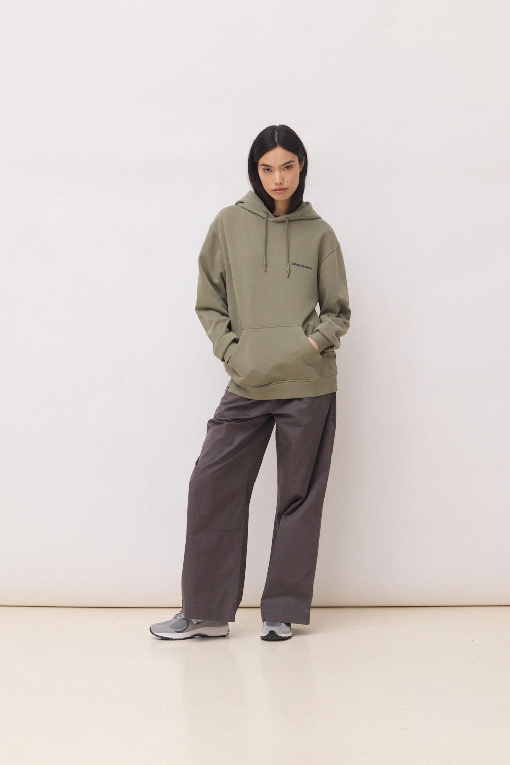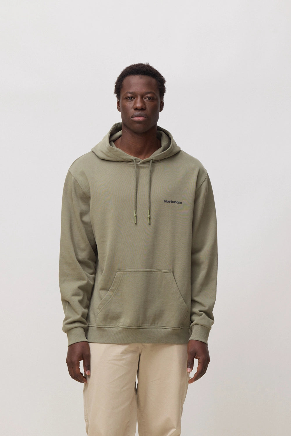 Sudadera con capucha con print delantero y trasero. Confeccionada con 100% algodón orgánico. Corte regular fit y gramaje: 400 GSM.