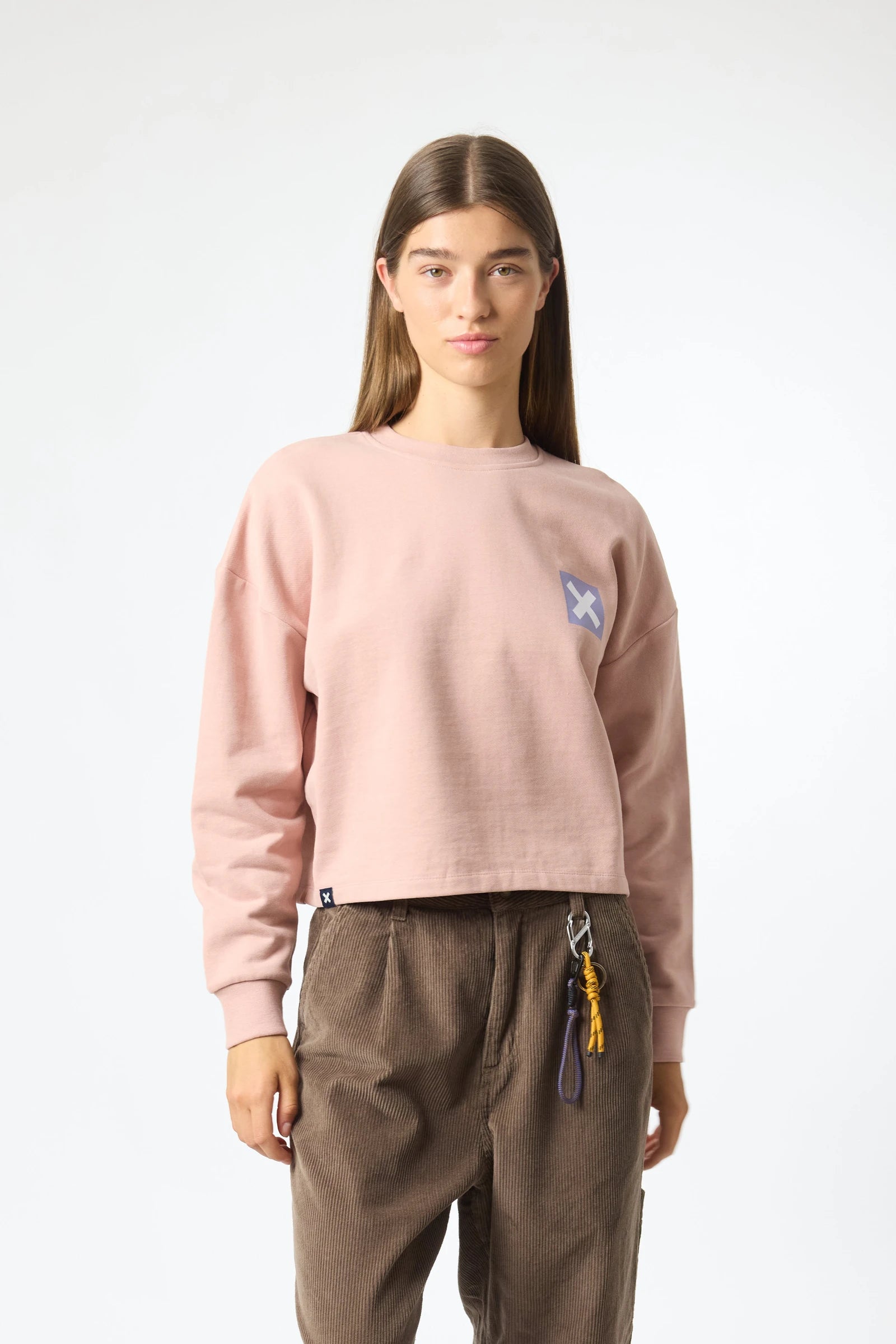 Sweatshirt com estampado frontal e traseiro. Confeccionada em 100% algodão orgânico e corte crop.
