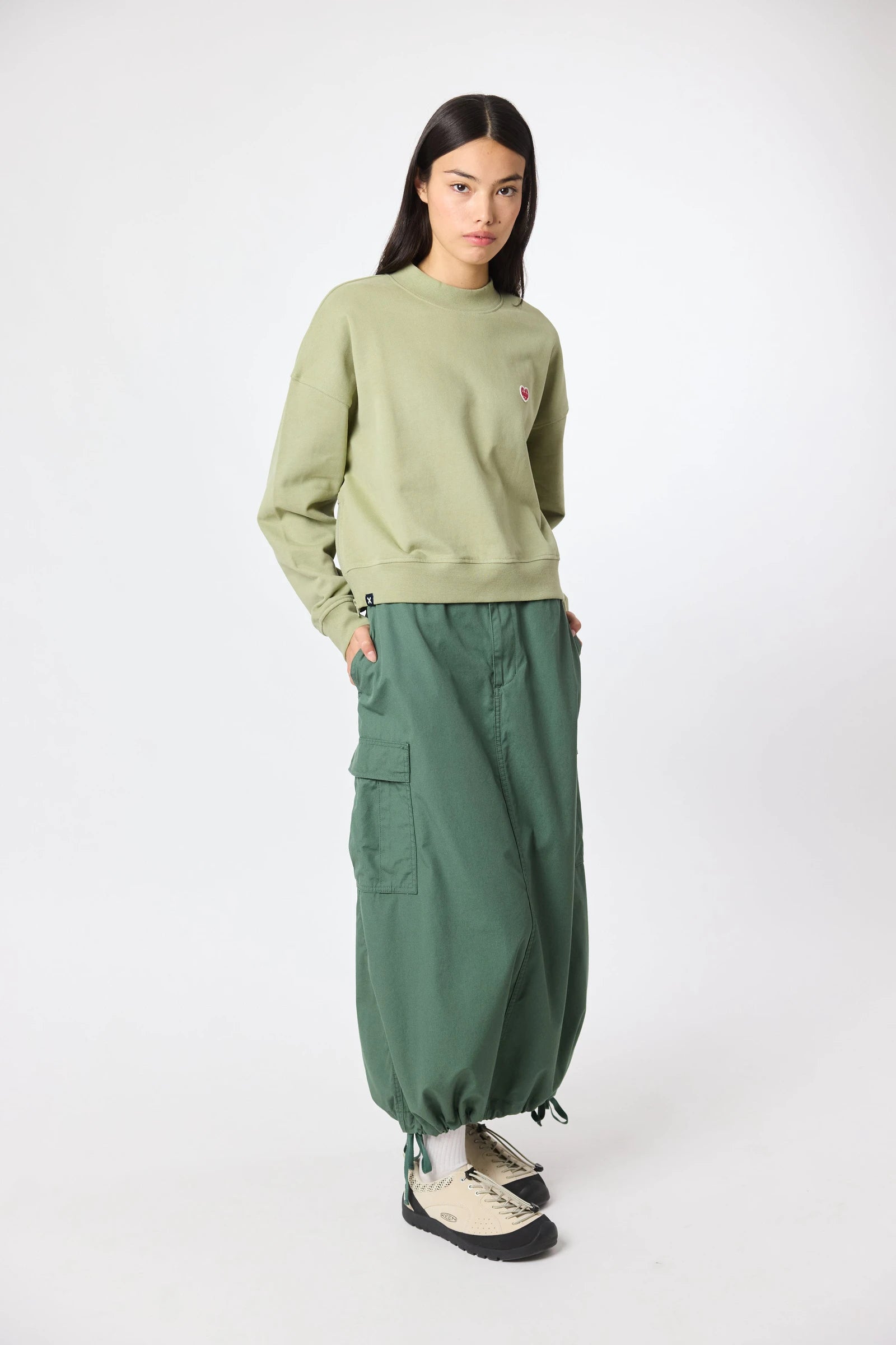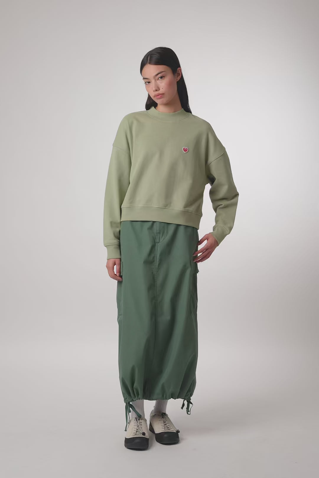 Sweatshirt com patch decorativo no peito. Confeccionada em 100% algodão orgânico e corte crop.