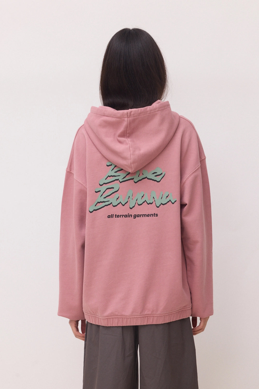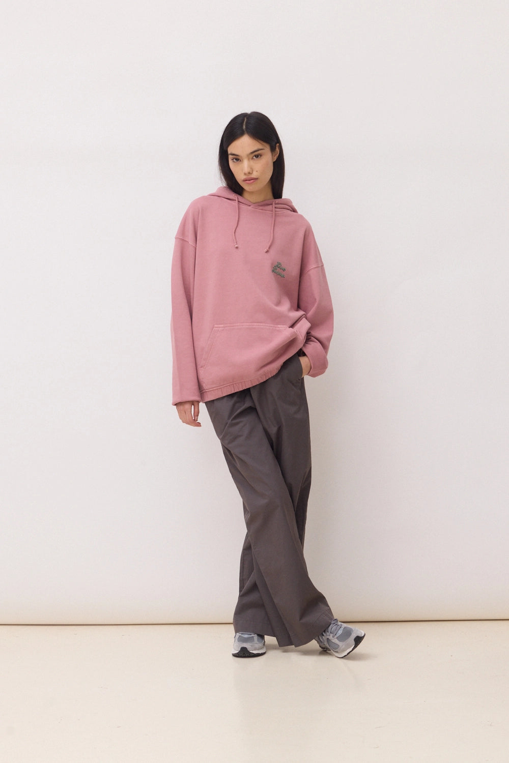 Sweatshirt com capuz com print frontal no lateral superior esquerdo e print traseiro central e corte oversize. Confecionada com 100% algodão orgânico.