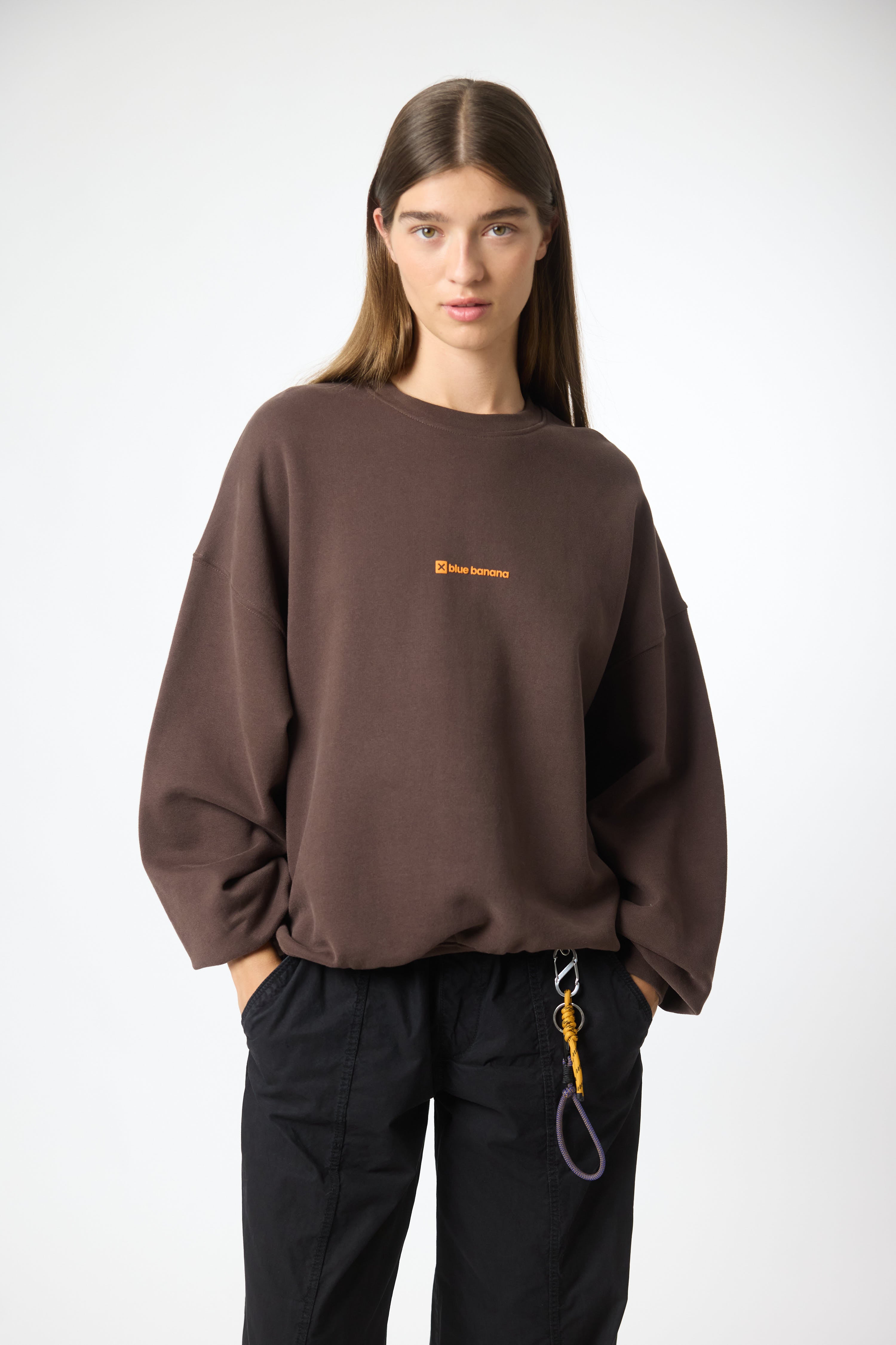 Sweatshirt com estampado frontal. Confeccionada em 100% algodão orgânico. Corte boxy.