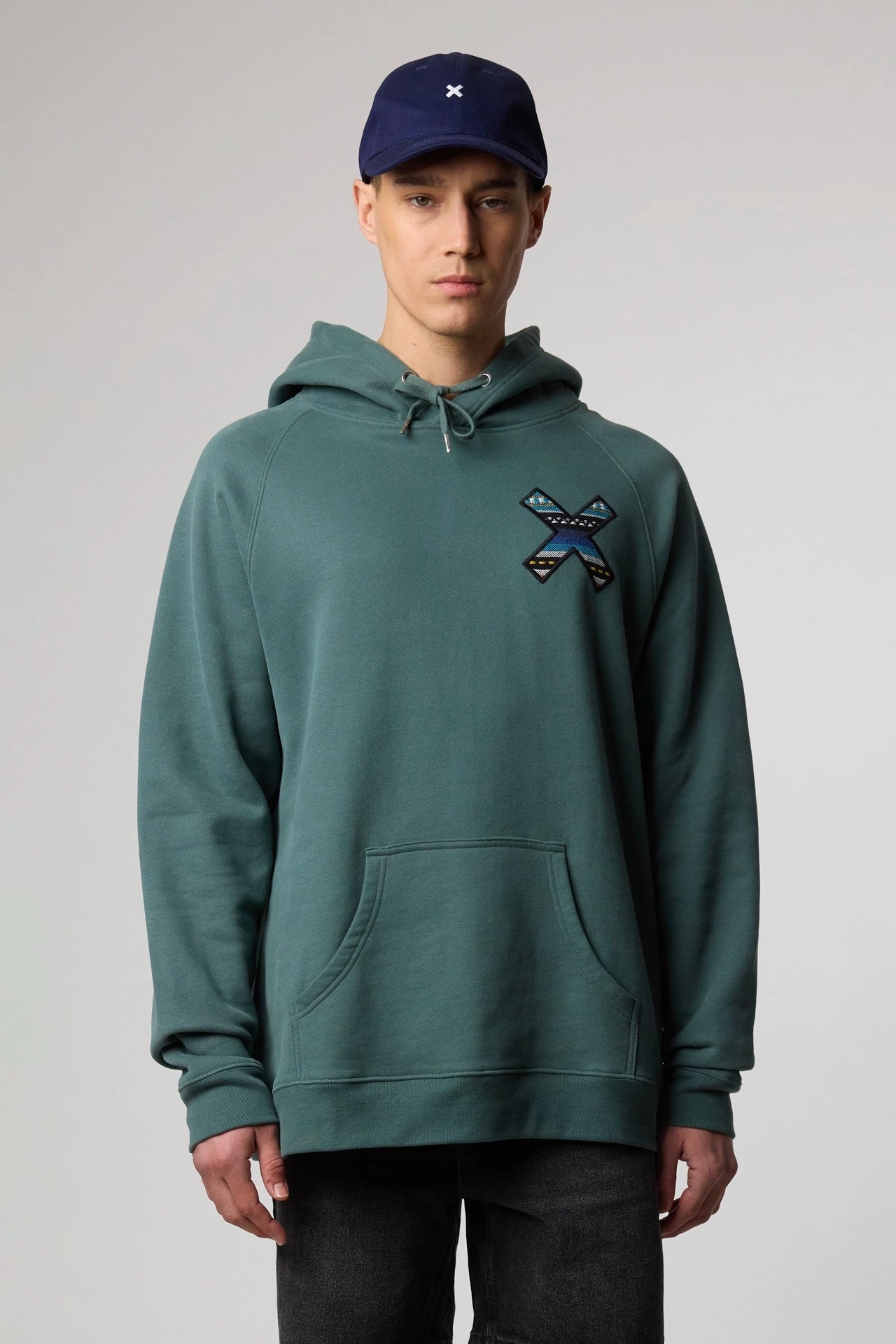 Moletom com capuz 100% algodão orgânico com nosso clássico X bordado.