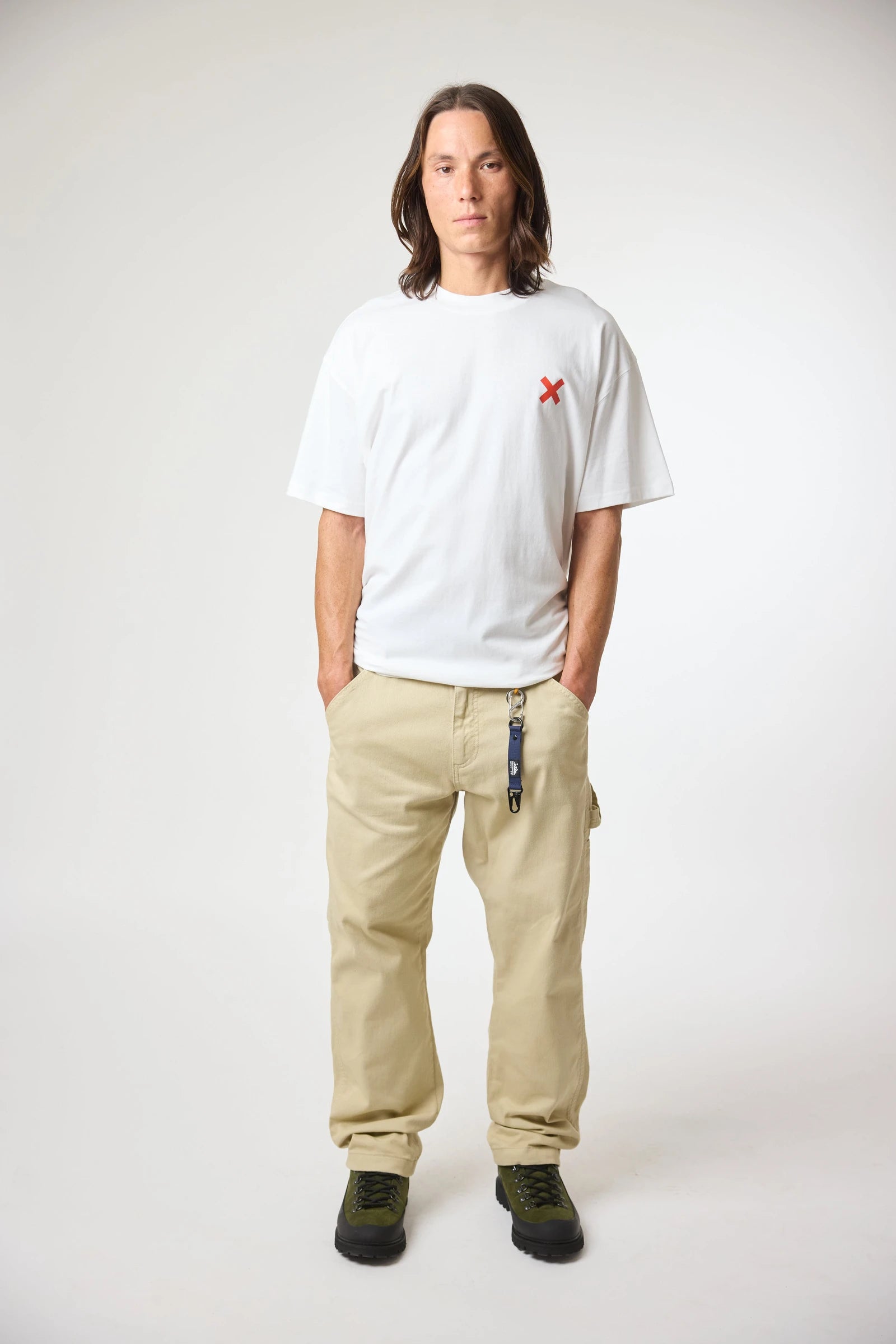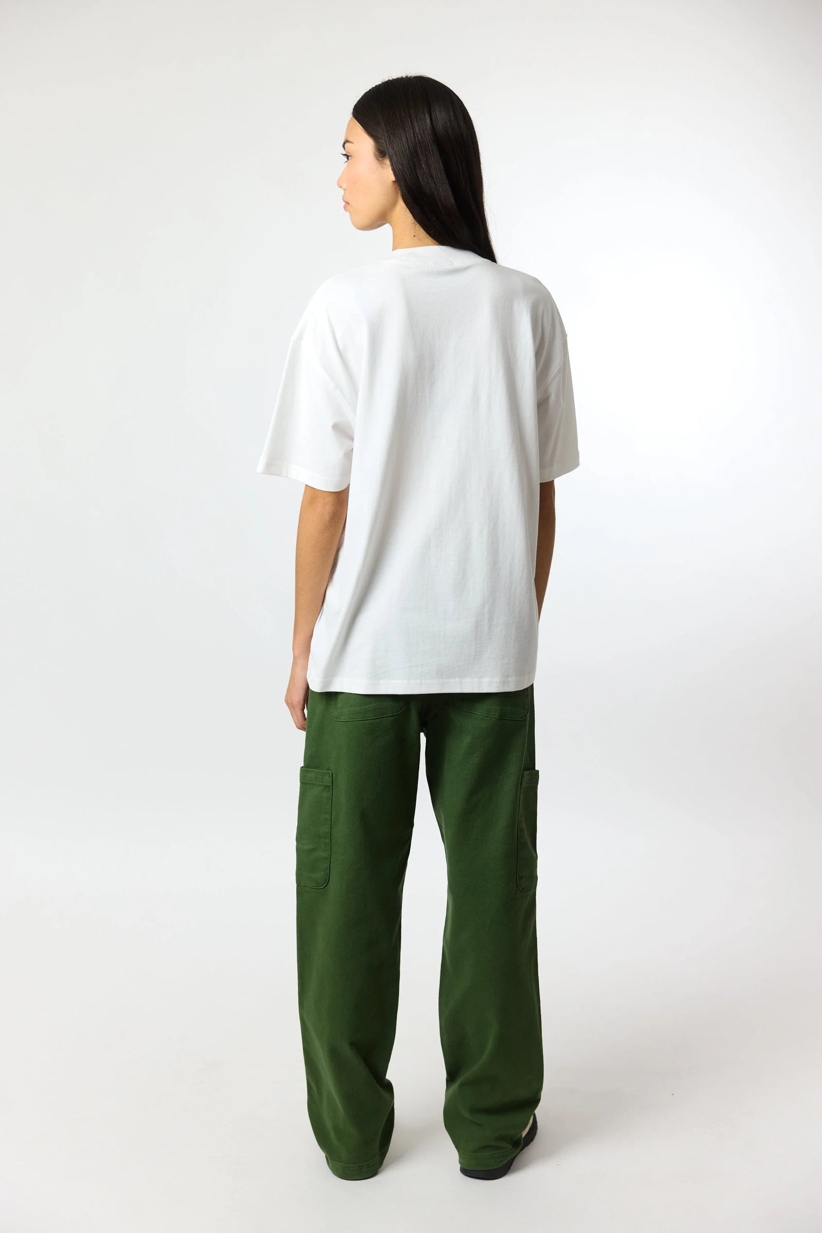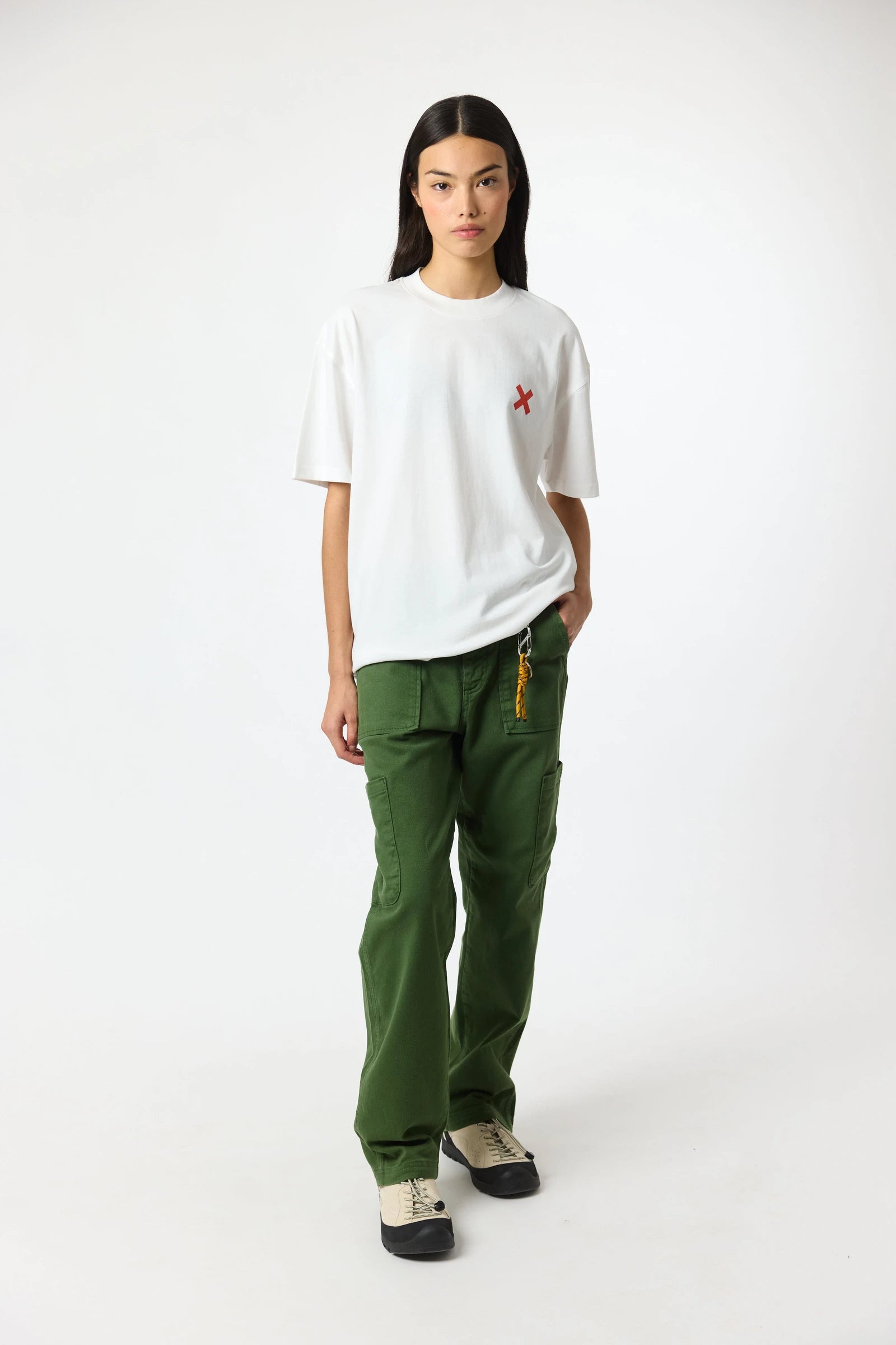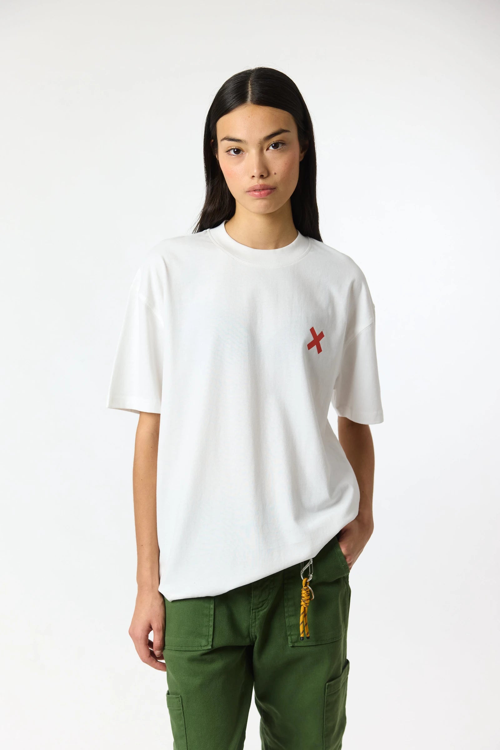 T-shirt com estampado frontal. Confeccionada em 100% algodão orgânico e corte oversize.
