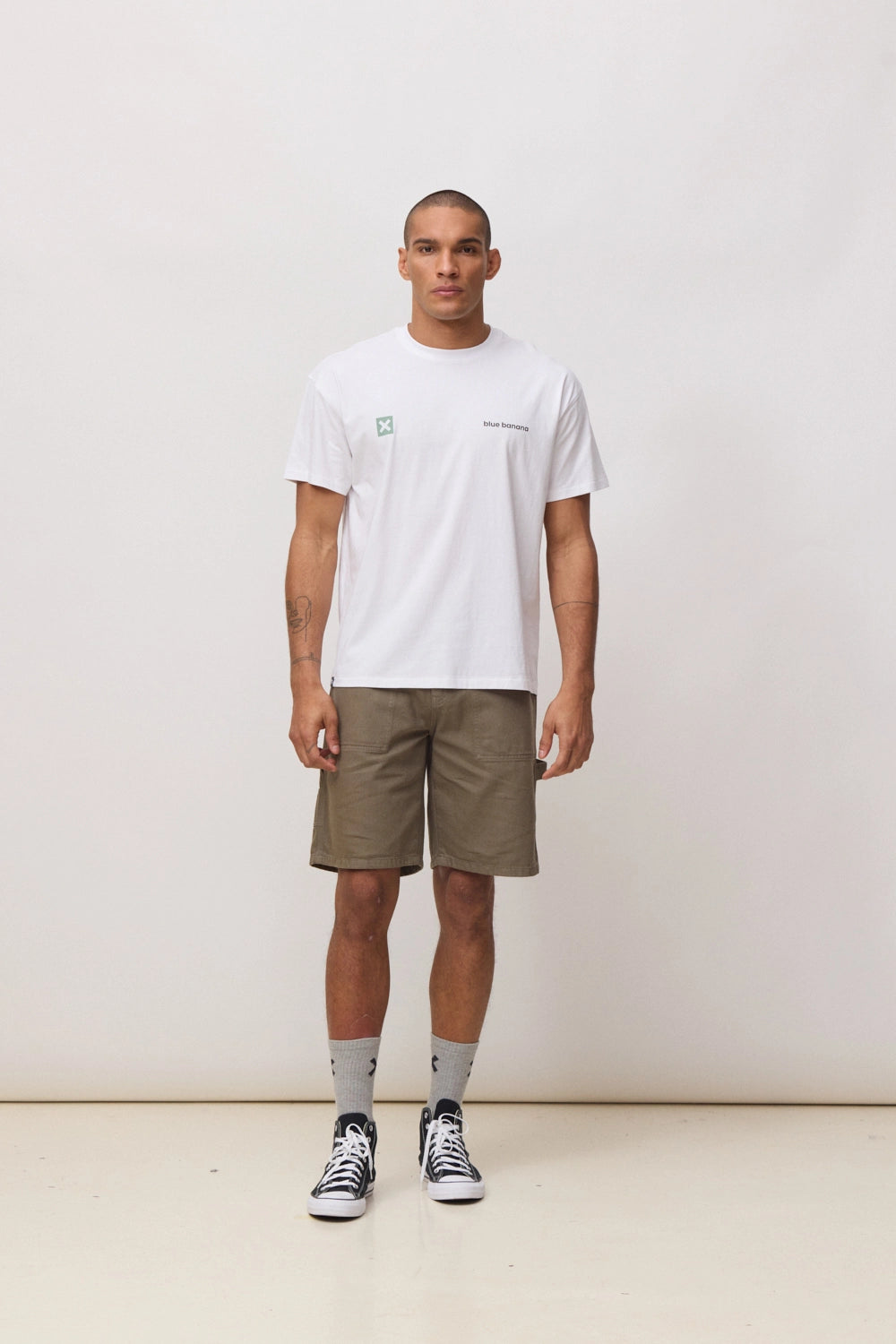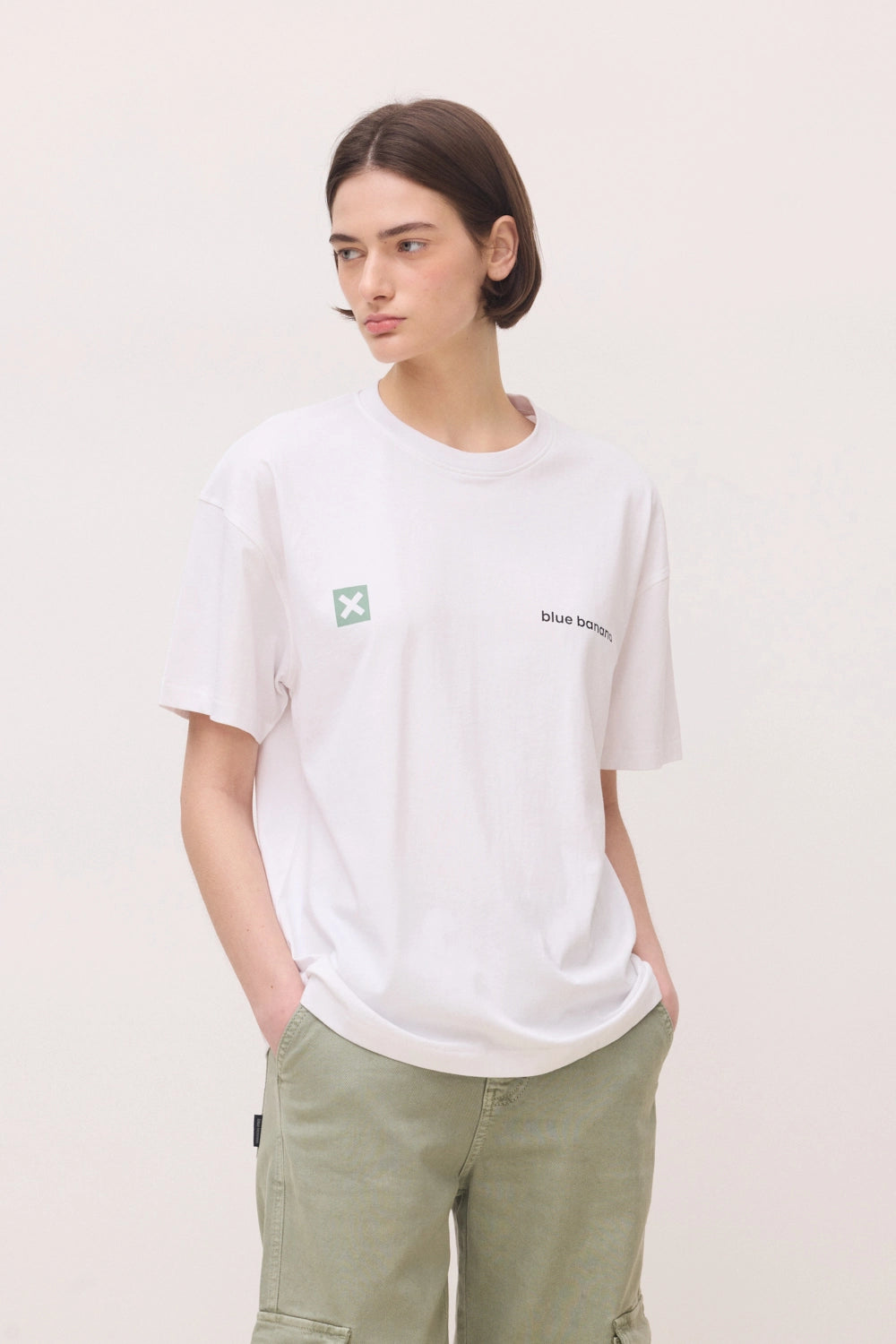 T-shirt com print frontal na zona do peito e traseiro. Confecionada com 100% algodão orgânico e corte oversize.