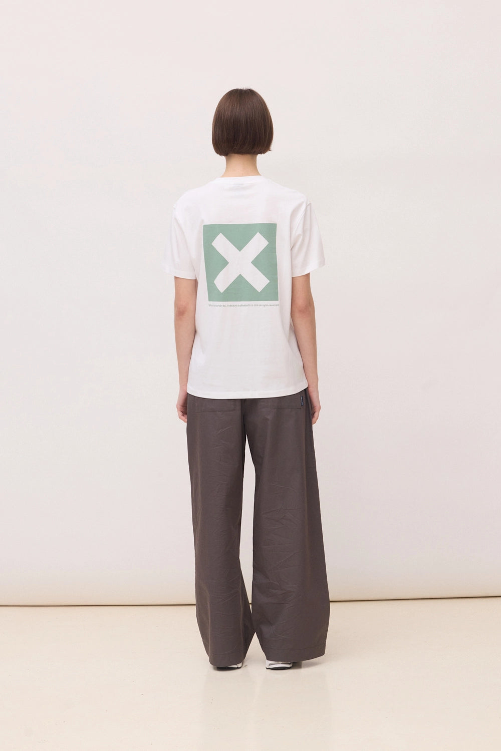 T-shirt com print frontal e traseiro, 100% algodão orgânico.