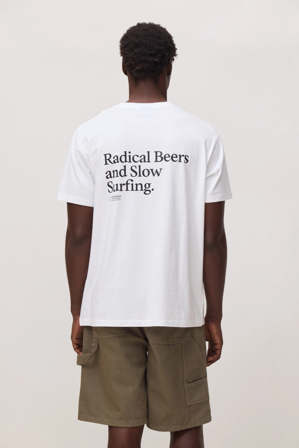 T-shirt com estampado frontal e traseiro. Confeccionada em 100% algodão orgânico. Corte regular fit e gramagem: 200 GSM.