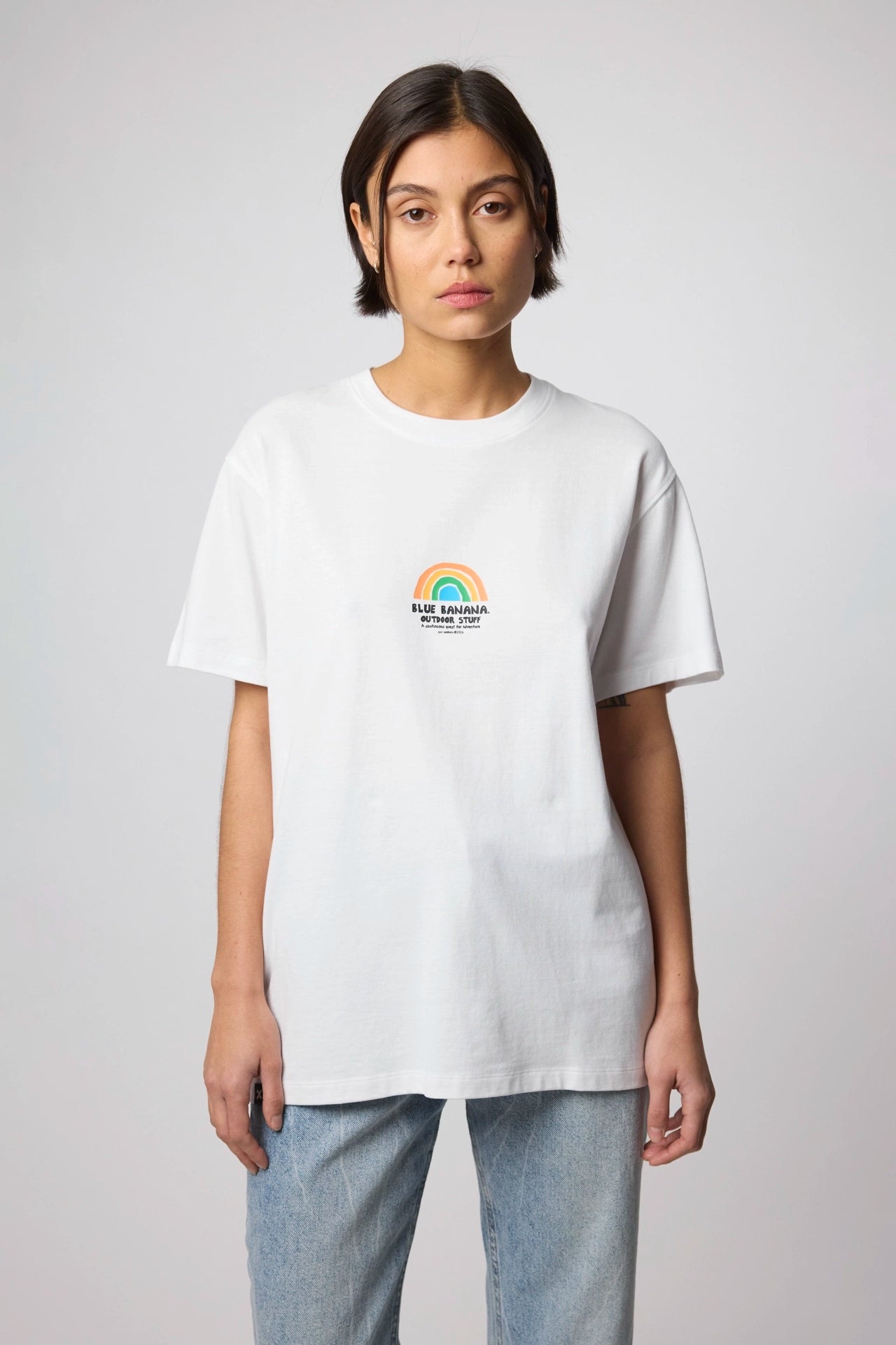 T-shirt com estampado na zona central do peito e nas costas. Confeccionada em algodão 100% orgânico e corte oversize.