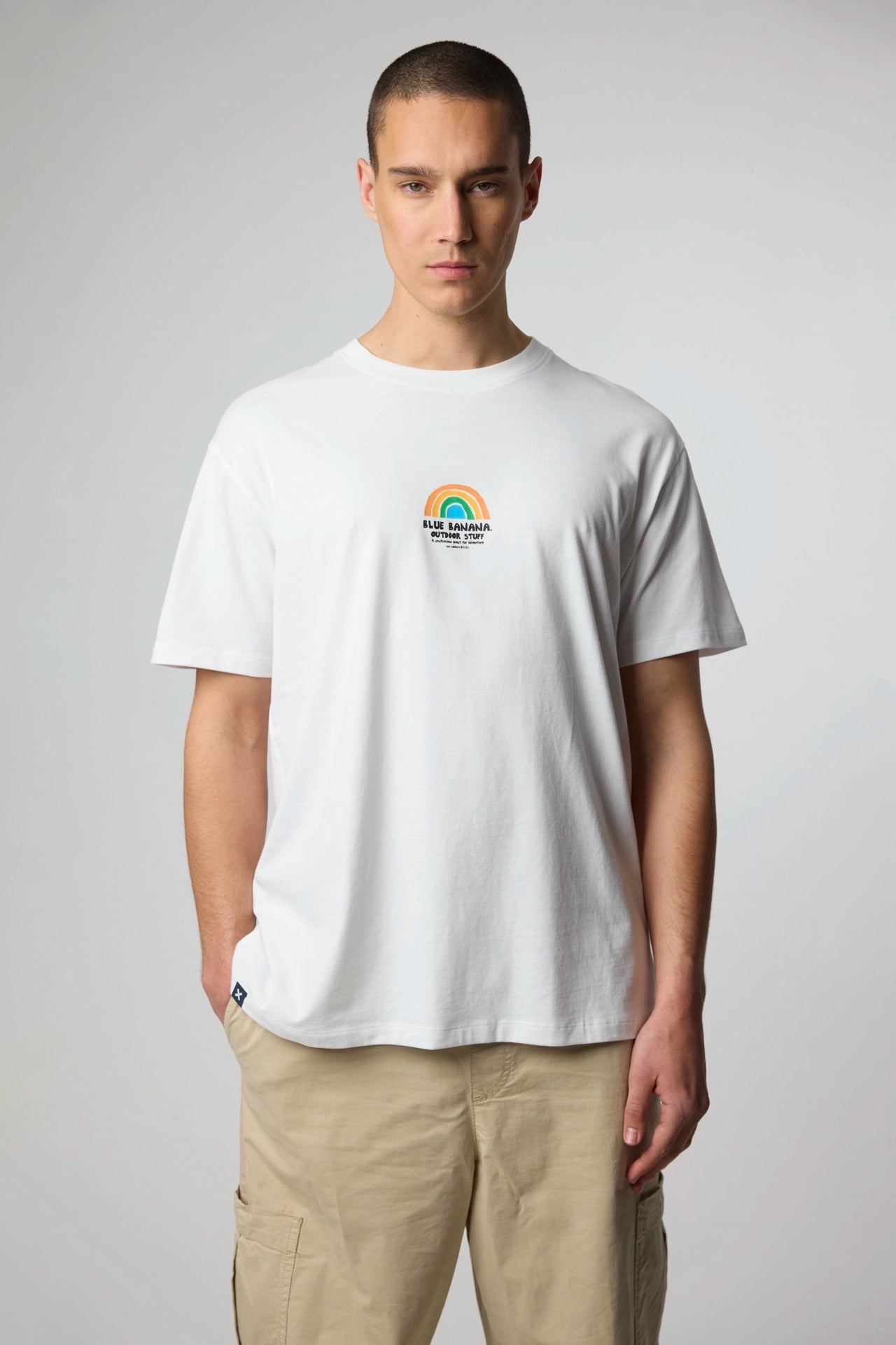 Camiseta de modelagem regular com estampa no peito e nas costas, feita de 100% algodão orgânico.